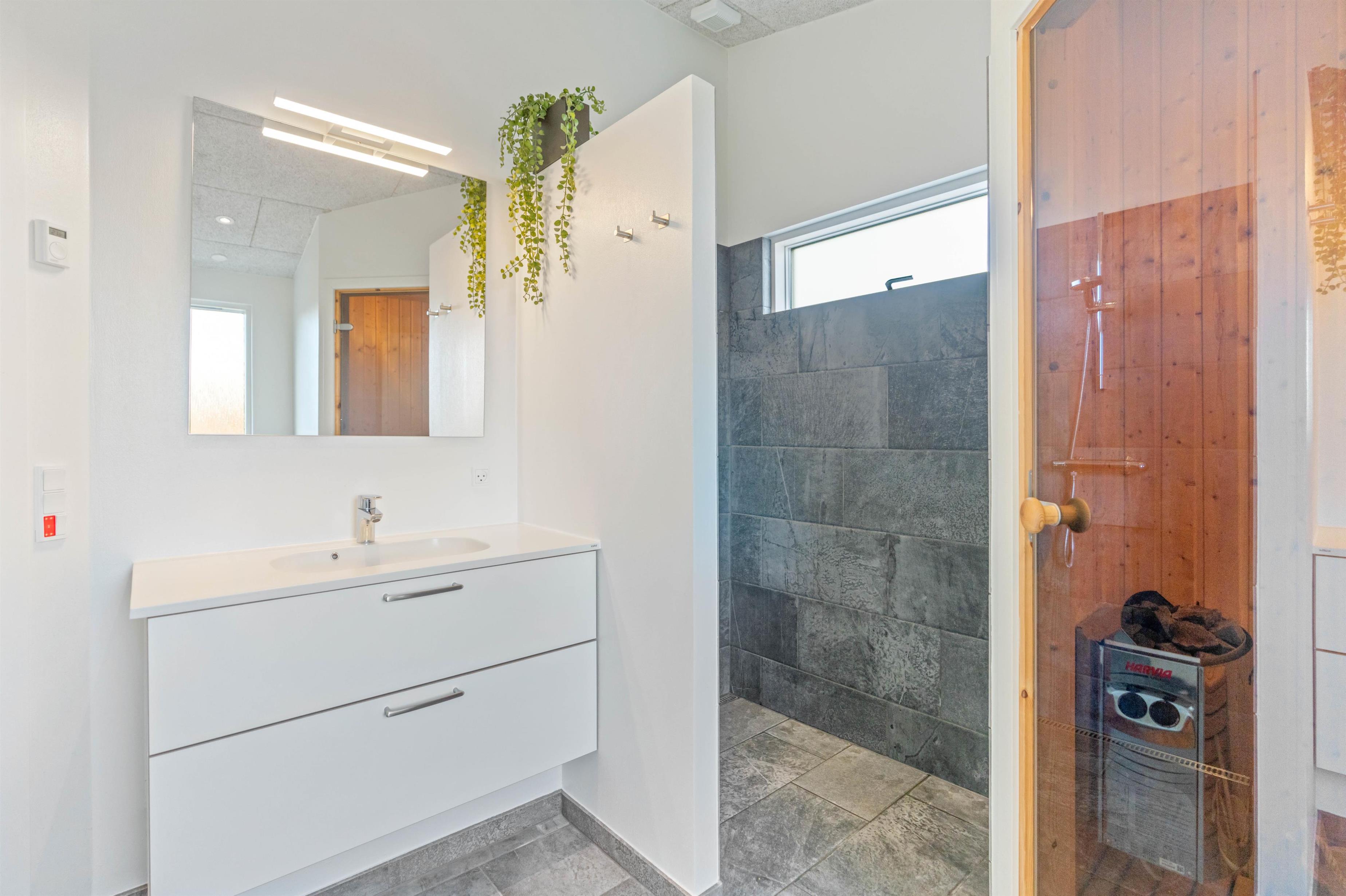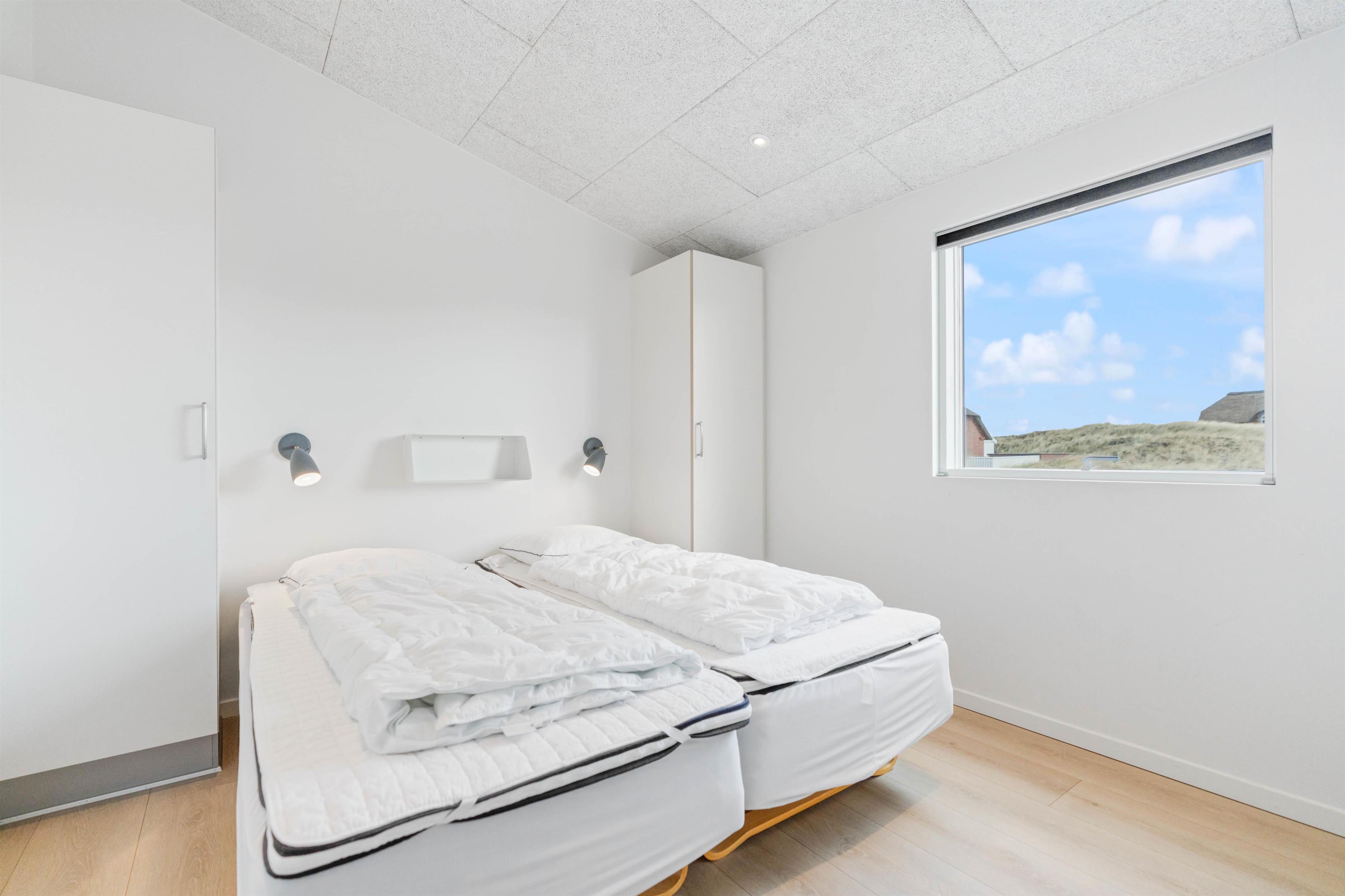 Sommerhuset er indrettet med 4 dejlige soveværelser, der alle har dobbeltsenge. Derudover er der to lyse badeværelser med gulvvarme. På det største af badeværelserne er der en både spabad og sauna, hvor I er garanteret masser af afslapning, lige når I har brug for det.