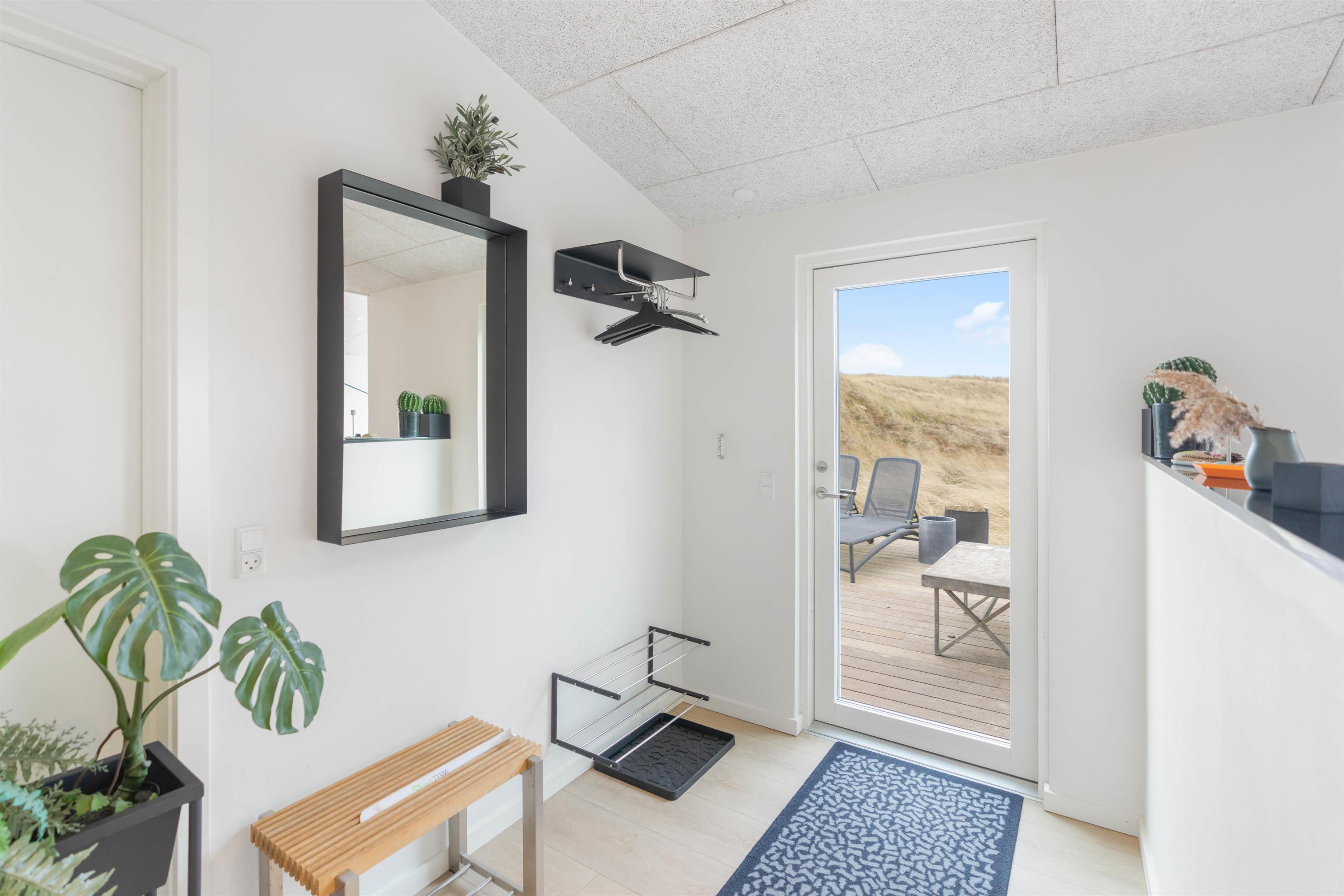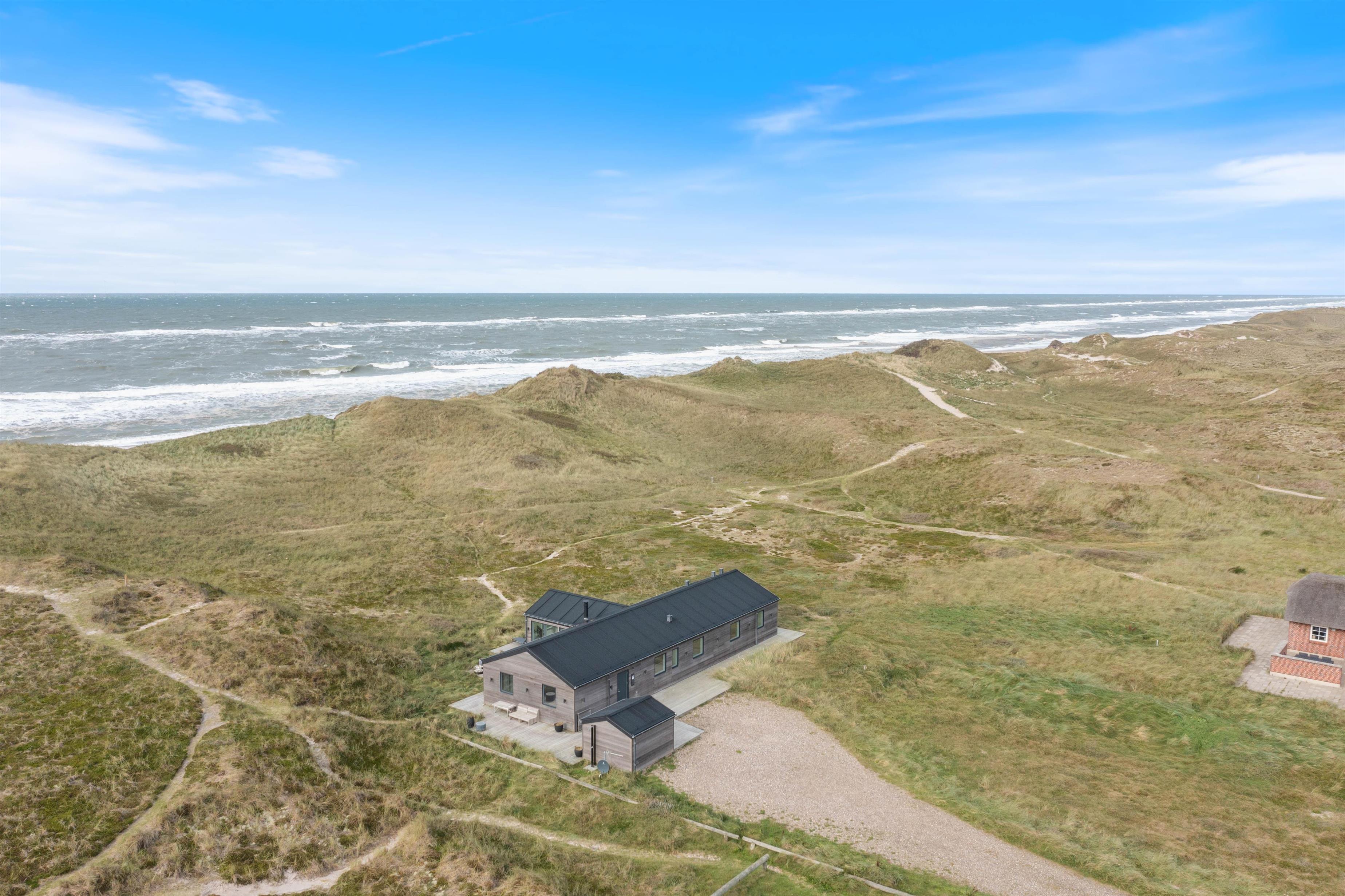 Sommerhuset ligger i første klitrække kun 100 meter fra stranden og det altid skønne Vesterhav. I kan hurtigt nå hertil, når I trænger til en dukkert i de friske bølger, eller til en dejlig gåtur langs de smukke sandstrande, der fortsætter, så langt øjet rækker. Efter en tur ved havet kan I skylle sandet af kroppen i udebruseren, som er tilgængelig fra april til november.
