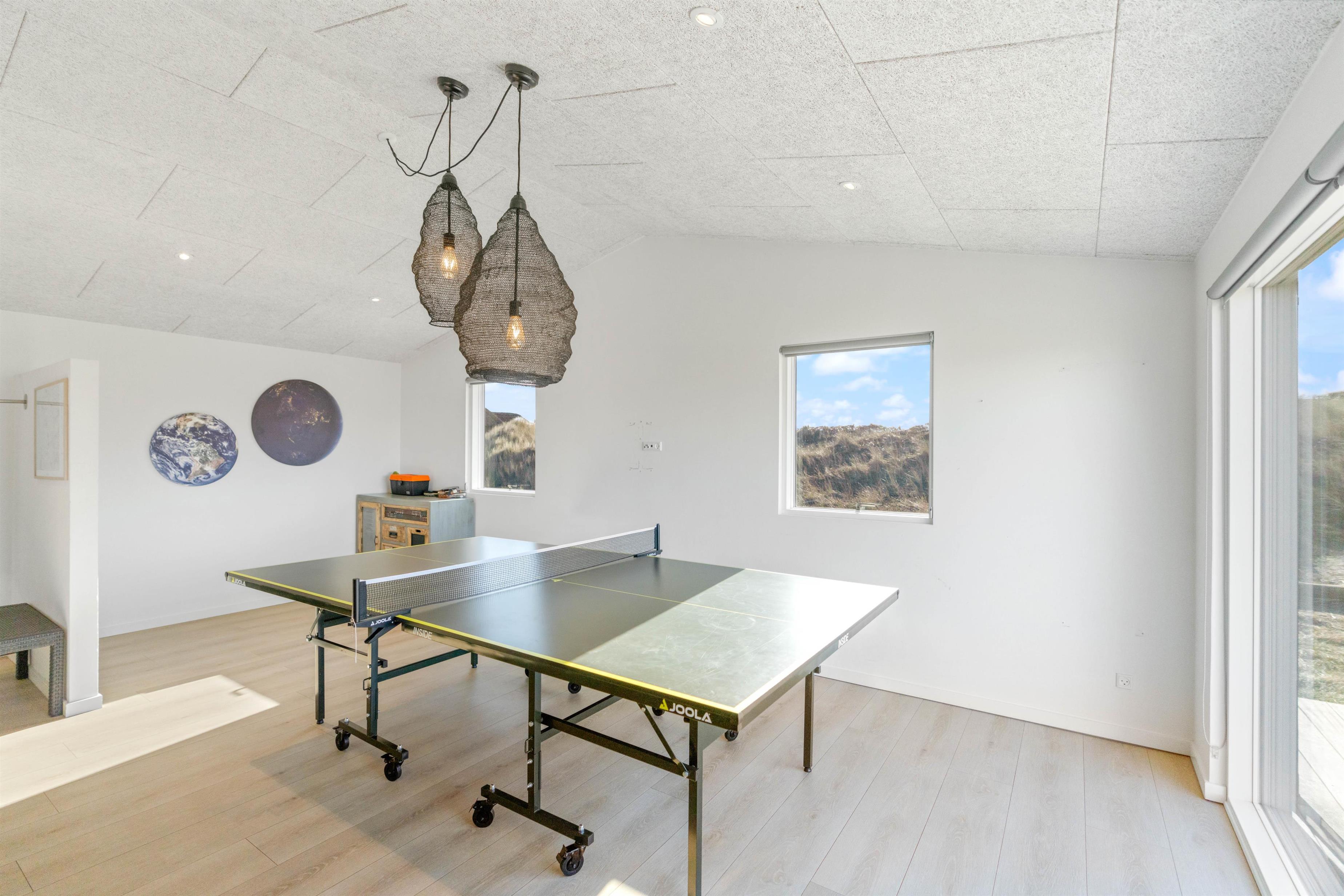 Også i sommerhusets bordtennisrum er der lagt op til mange sjove timer sammen for hele feriebesætningen. Bordtennisbordet står klar til jer, og det kan aldrig vare særligt længe, før I kommer i gang med en turnering for at finde feriens helt store mester.