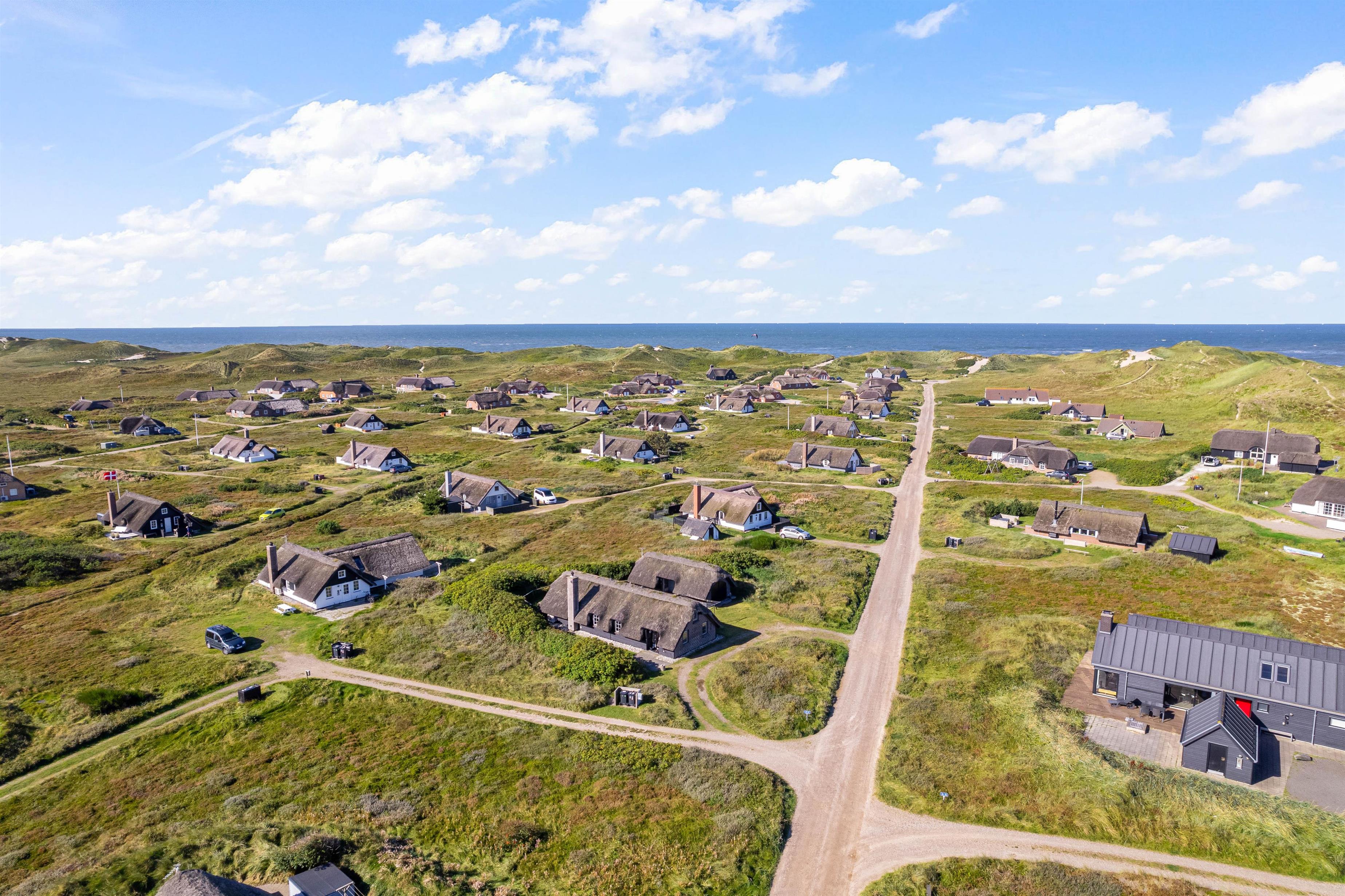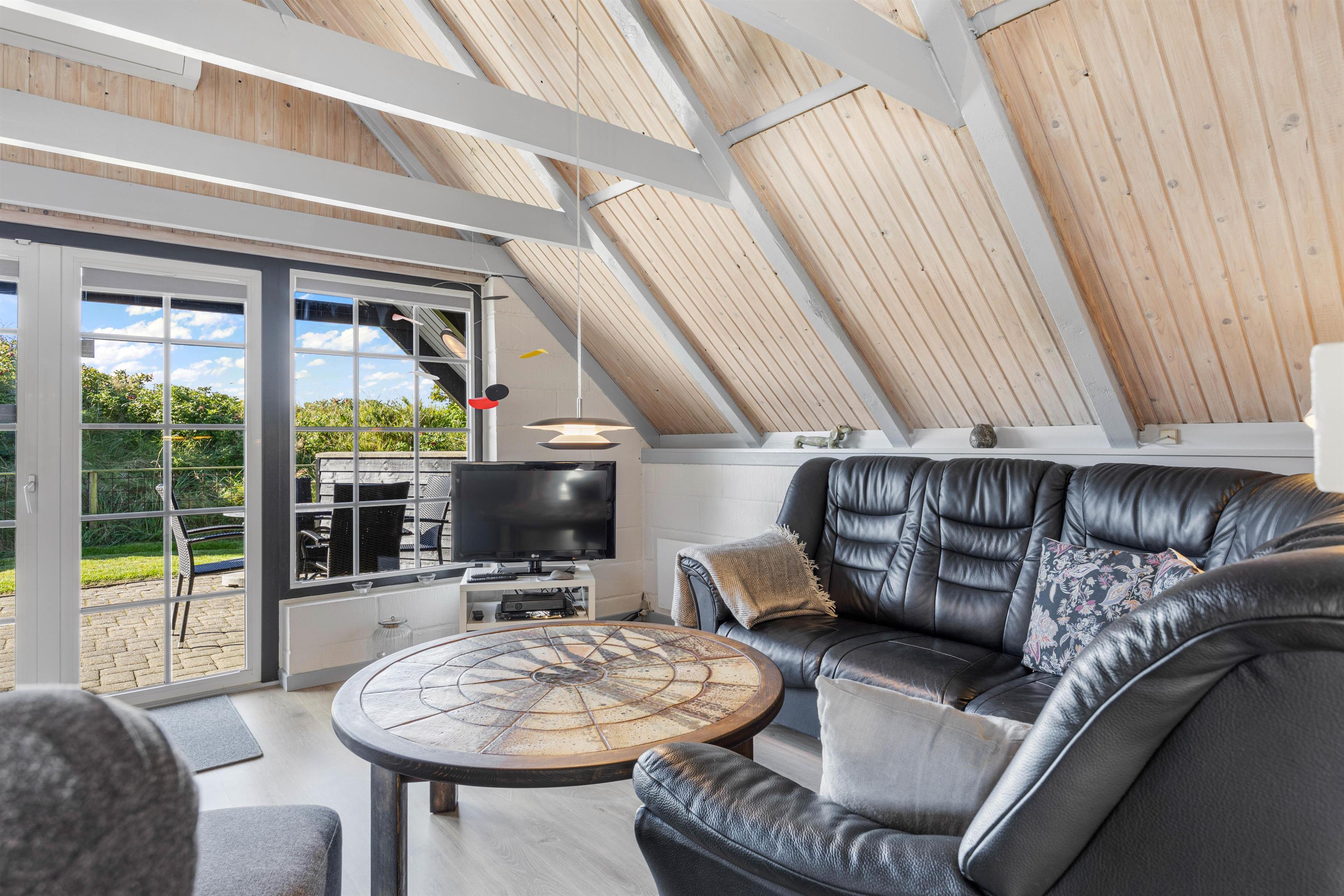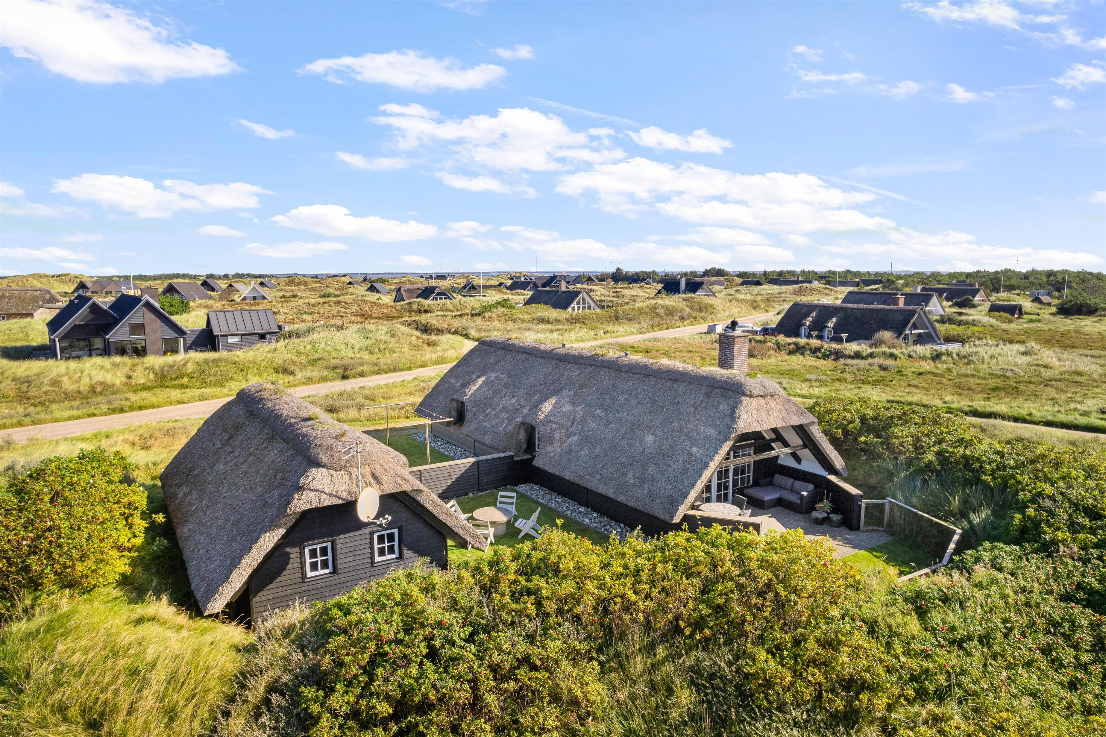 Til sommerhuset hører desuden en dejlig, delvist overdækket terrasse, som inviterer til afslapning og hygge i solen. Til terrassen hører naturligvis gode havemøbler, liggestole og grill - perfekt til hyggelige grillaftener med gode venner og familie. Den overdækkede terrasse sørger samtidig for at I kan holde på varmen, så I kan sidde ude længere på lune sommeraftener og nyde den dejlige vesterhavsluft.