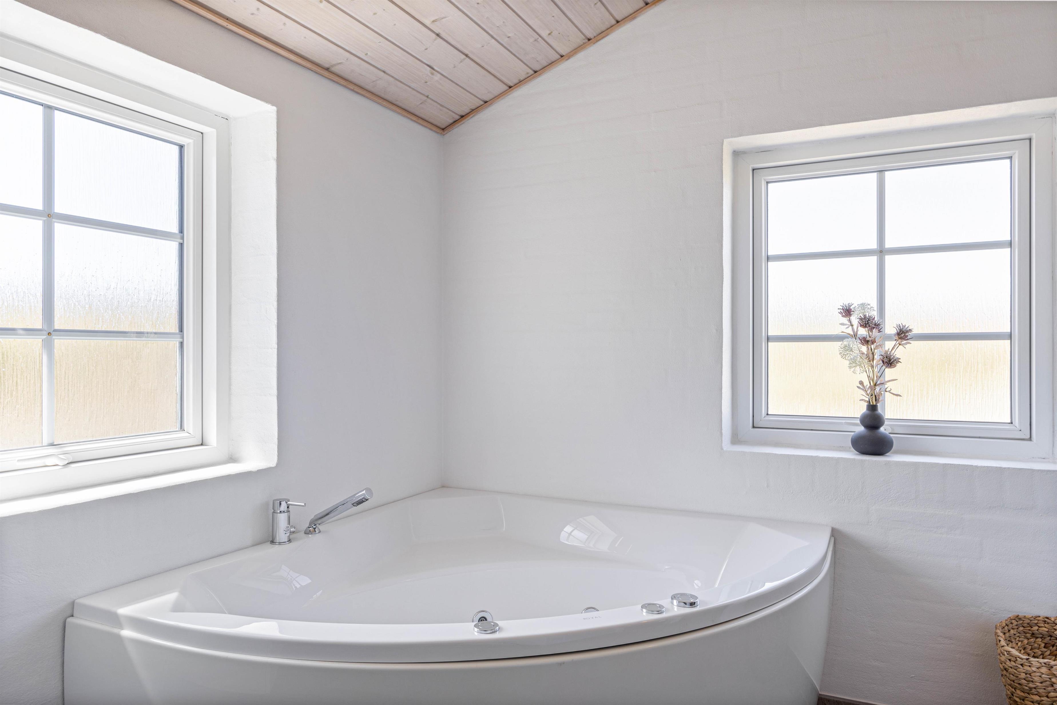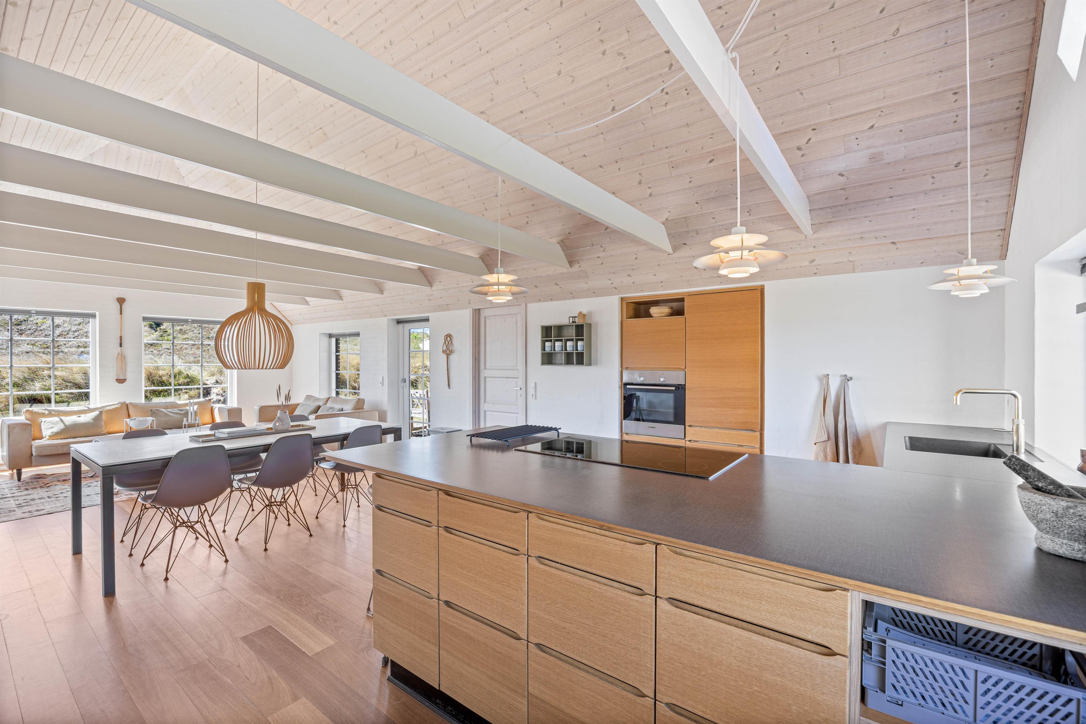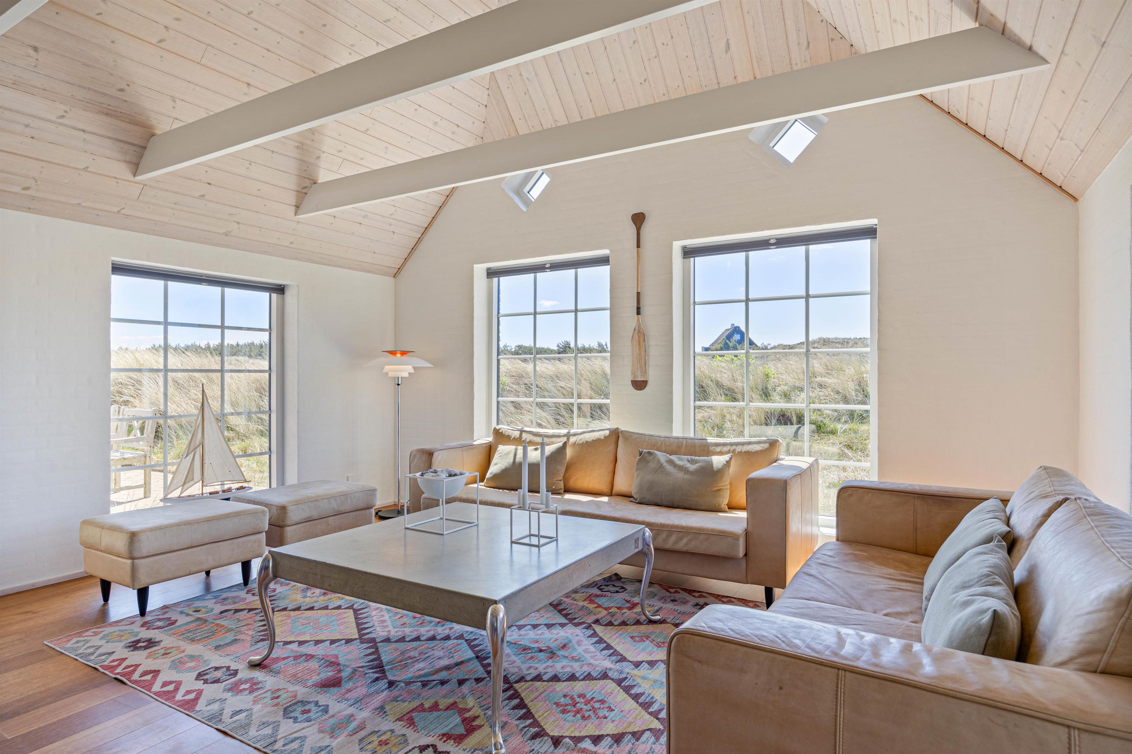Efter en lang dag i naturen, kan du nyde den skønne indretning i dit luksussommerhus. Her er plads til 6 personer i 3 gode soveværelser. Her er 2 værelser med dobbeltsenge og skabsplads, samt 1 værelse med 2 enkeltsenge og skabe. Alle soveværelser har desuden gulvtæpper. 2 lækre badeværelser med gulvvarme og bruser, det største af badeværelserne har et herligt boblebad og en pæn stor sauna. Køkkenet er meget veludstyret og her er naturligvis opvaskemaskine og et køle- fryseskab. Den indmurede brændeovn sørger for hygge og varme i det flotte opholdsrum. Her er lyst og rummeligt, åbnet til kip og masser af lysindfald og smuk udsigt gennem de store vinduespartier. Du kan slappe af i sofaen efter en lang dag, se en film eller høre radio på fladskærms-TV'et eller opretholde forbindelse til vennerne via den gratis trådløse internetforbindelse.