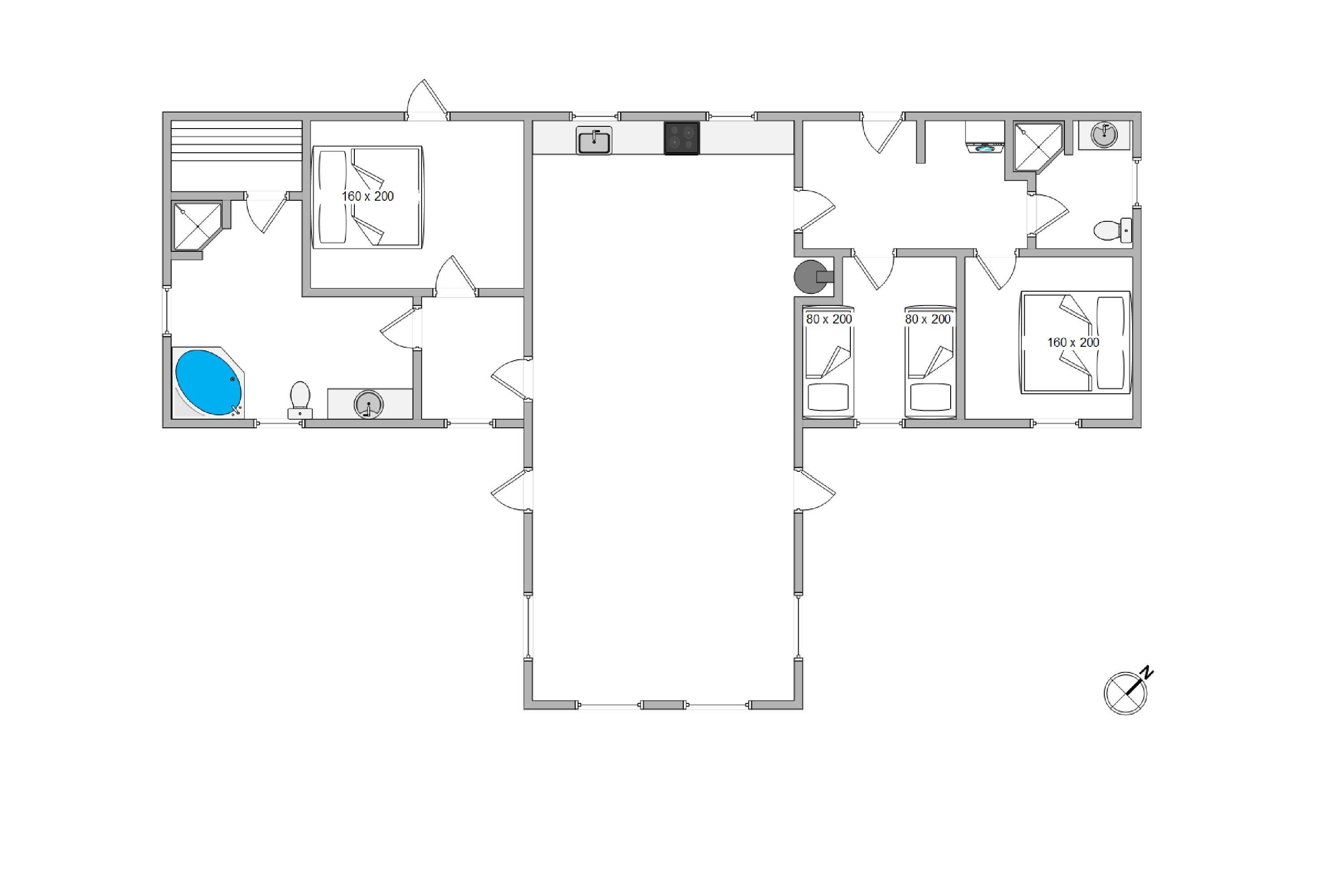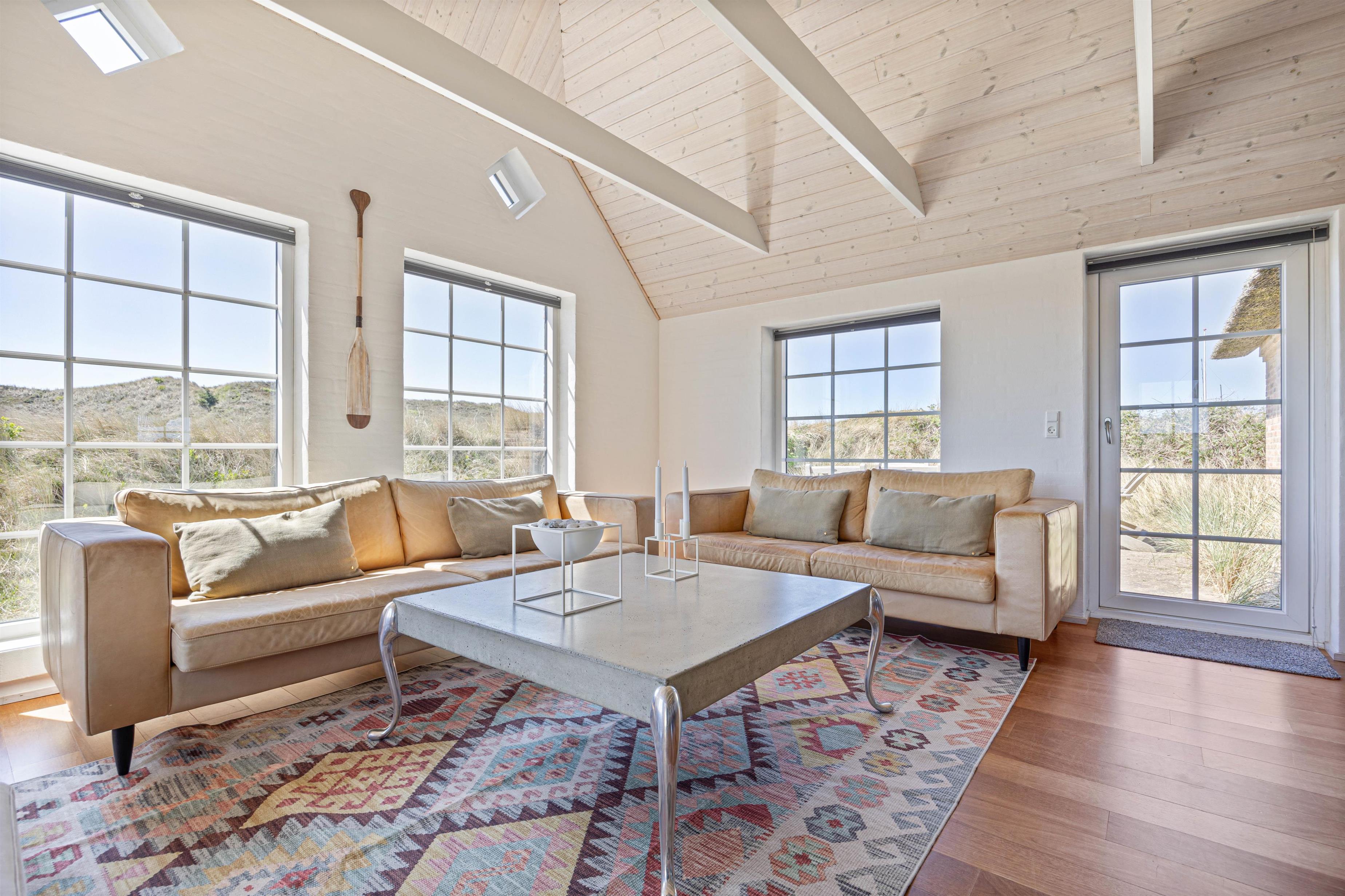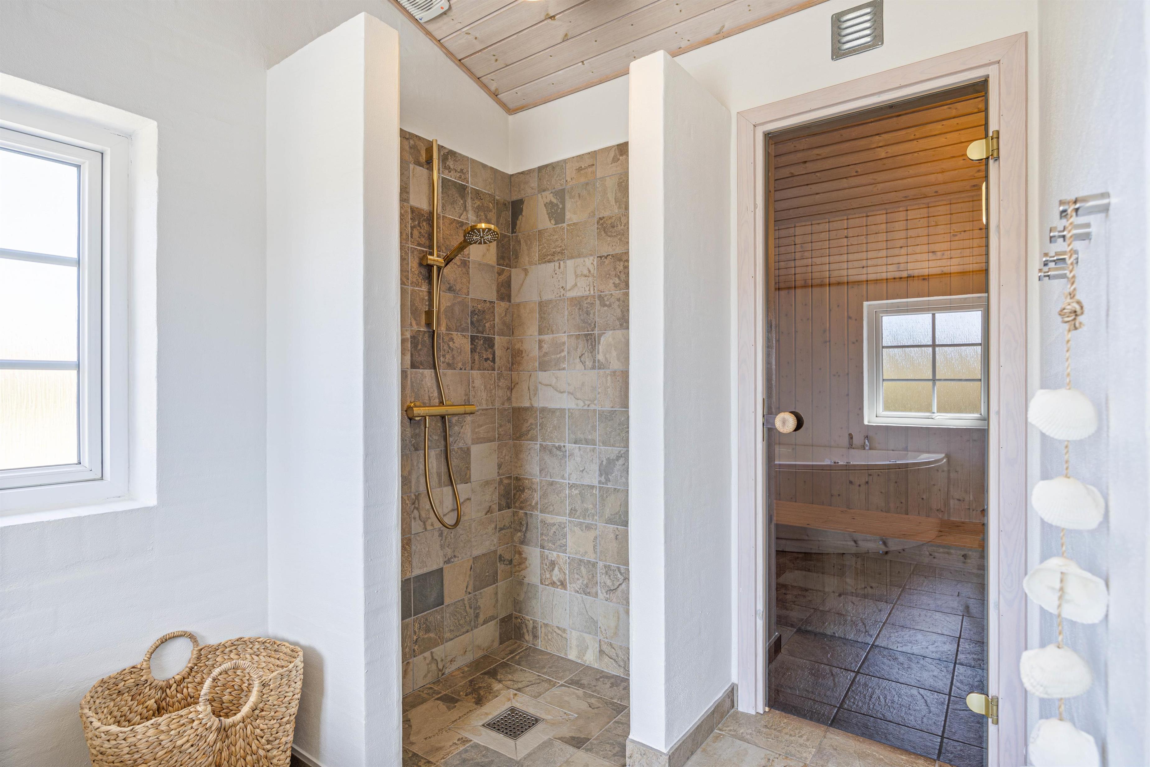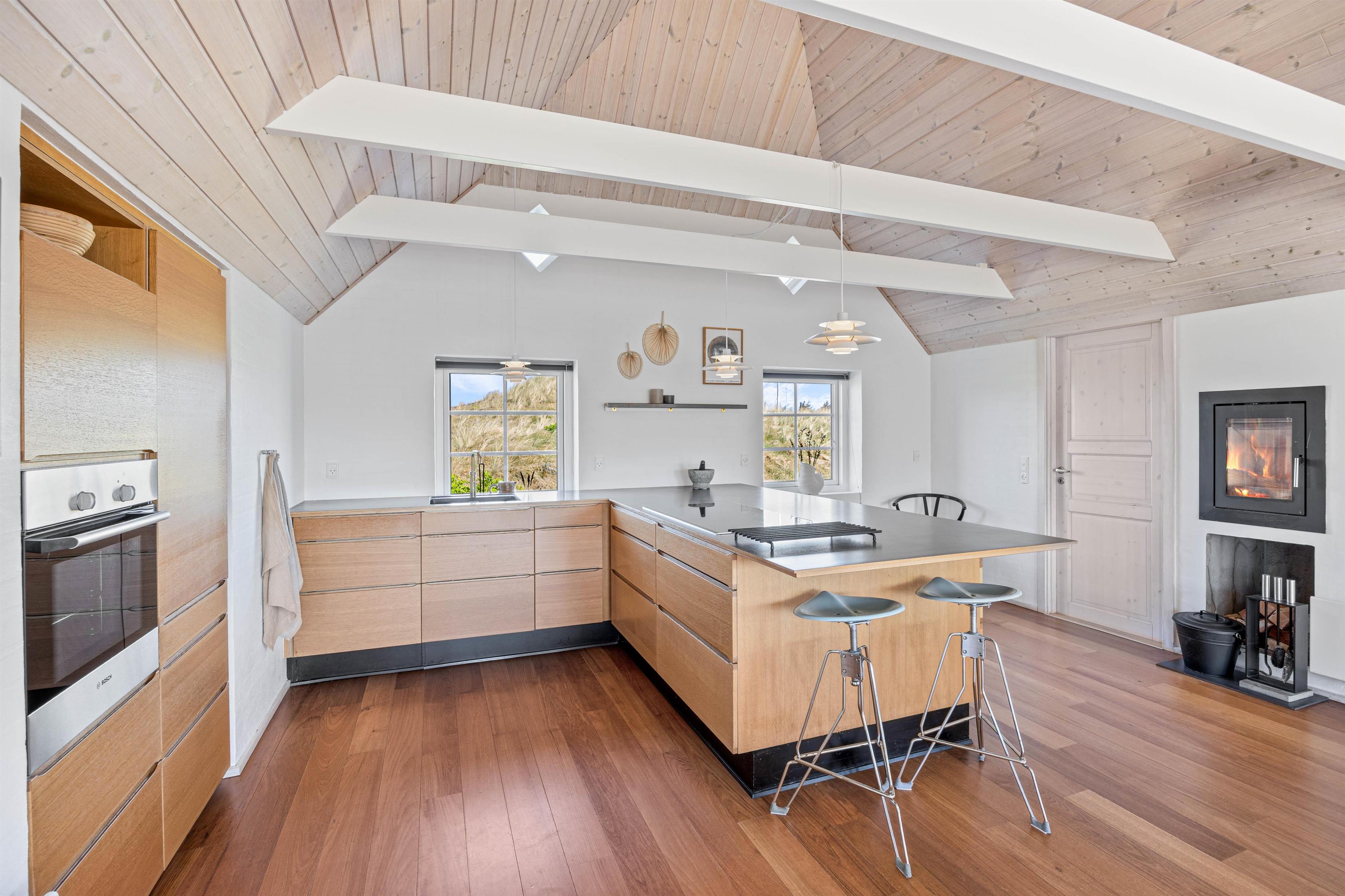 Efter en lang dag i naturen, kan du nyde den skønne indretning i dit luksussommerhus. Her er plads til 6 personer i 3 gode soveværelser. Her er 2 værelser med dobbeltsenge og skabsplads, samt 1 værelse med 2 enkeltsenge og skabe. Alle soveværelser har desuden gulvtæpper. 2 lækre badeværelser med gulvvarme og bruser, det største af badeværelserne har et herligt boblebad og en pæn stor sauna. Køkkenet er meget veludstyret og her er naturligvis opvaskemaskine og et køle- fryseskab. Den indmurede brændeovn sørger for hygge og varme i det flotte opholdsrum. Her er lyst og rummeligt, åbnet til kip og masser af lysindfald og smuk udsigt gennem de store vinduespartier. Du kan slappe af i sofaen efter en lang dag, se en film eller høre radio på fladskærms-TV'et eller opretholde forbindelse til vennerne via den gratis trådløse internetforbindelse.