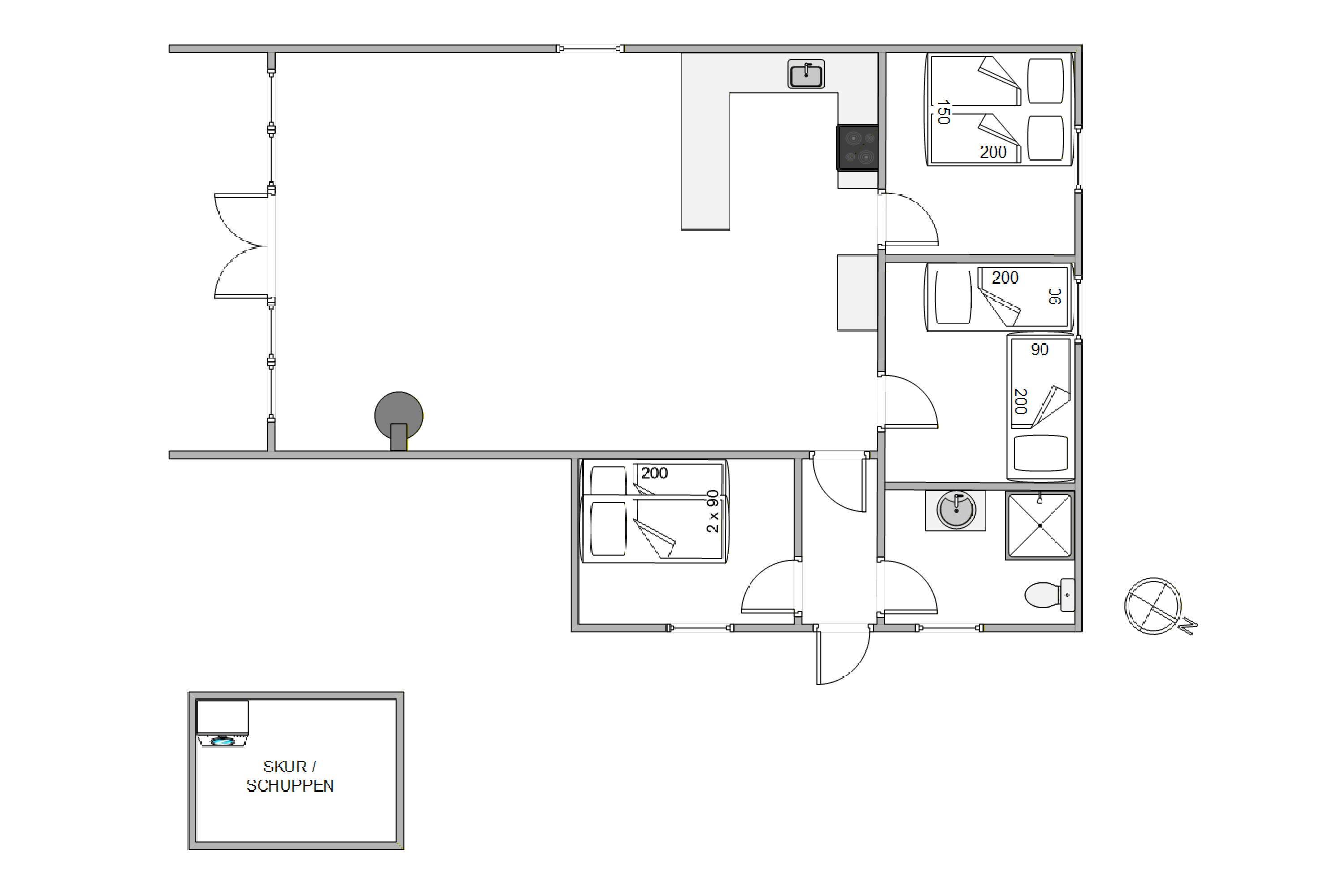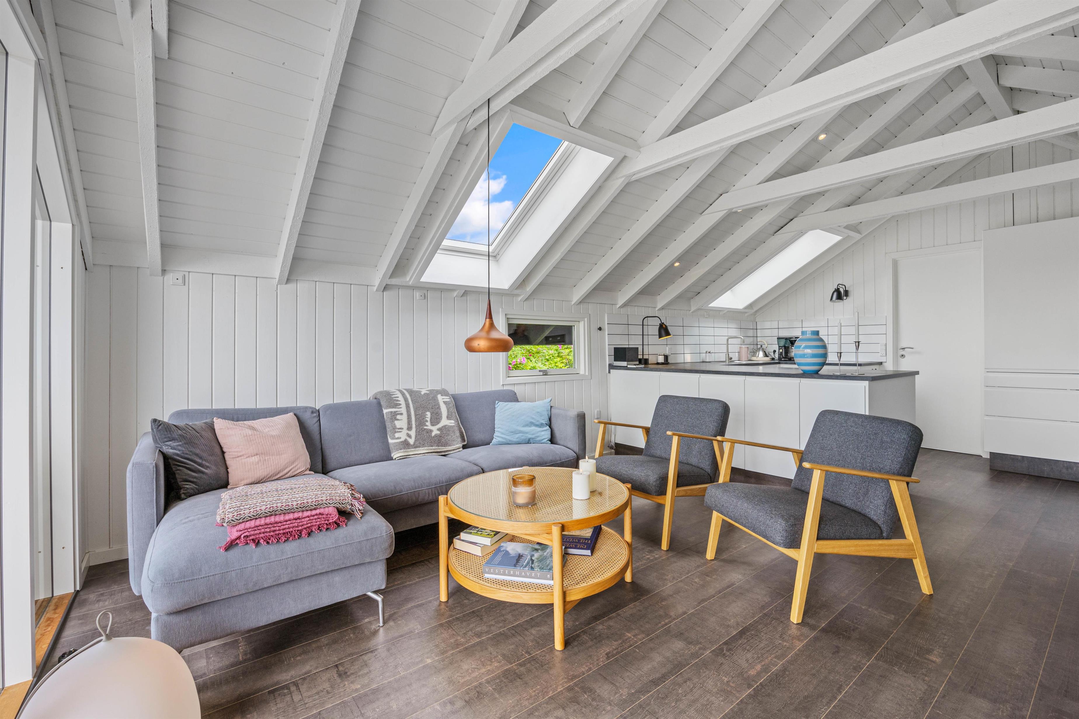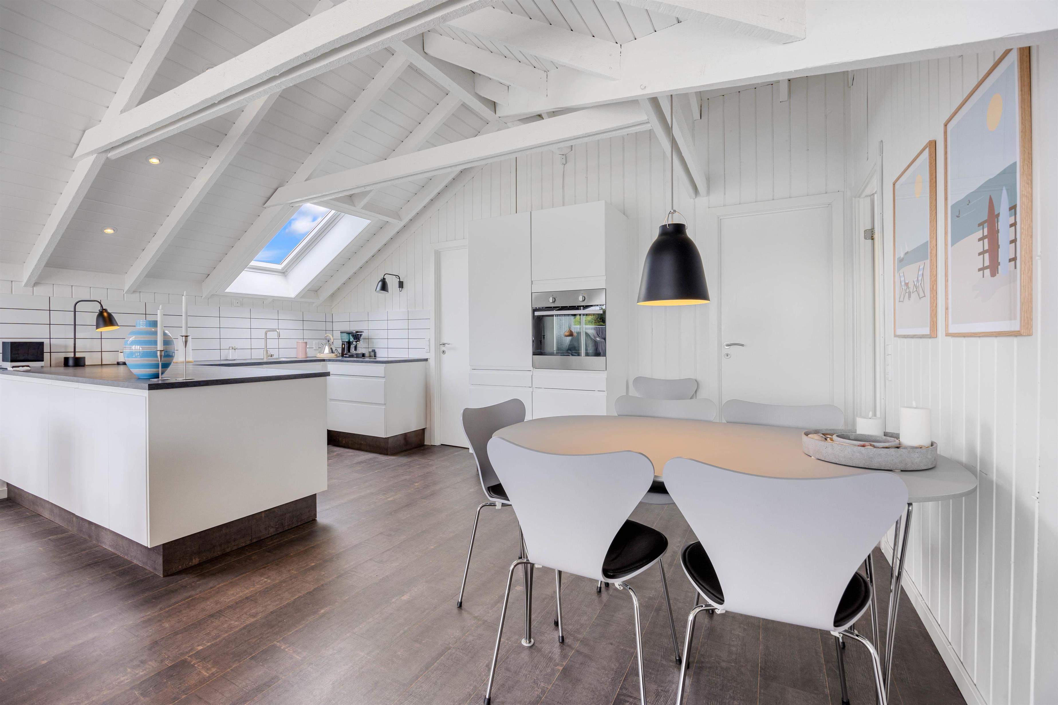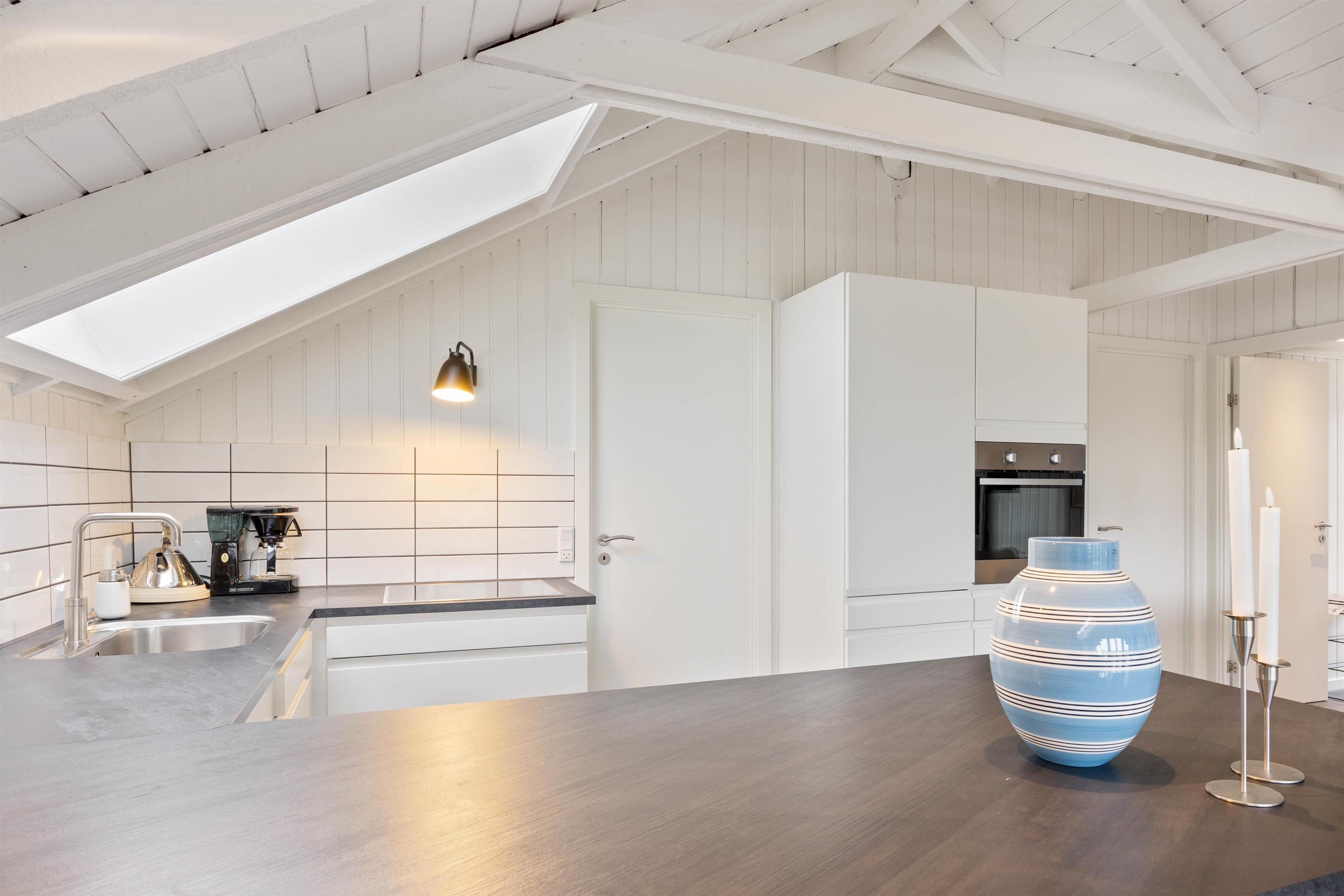 I sommerhusets hjerte, køkken/alrummet, finder I den åbne stue med brændeovn, som spreder varme og skaber en dejlig atmosfære på kølige aftener. Sammen med varmepumpen sikrer det en behagelig temperatur indenfor året rundt. Køkkenet er veludstyret med alt, hvad I behøver – inklusive opvaskemaskine, så I slipper for opvasken i ferien.