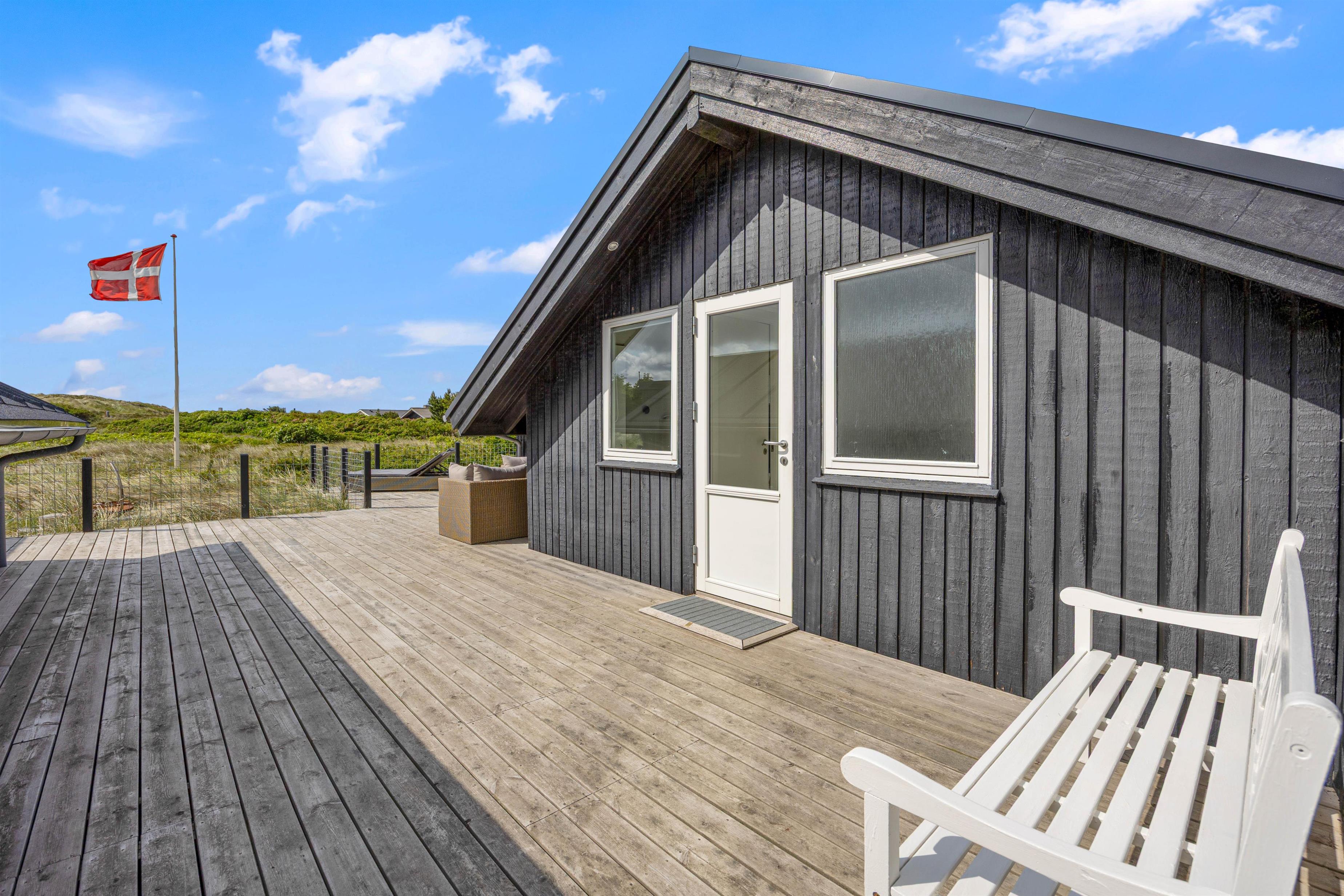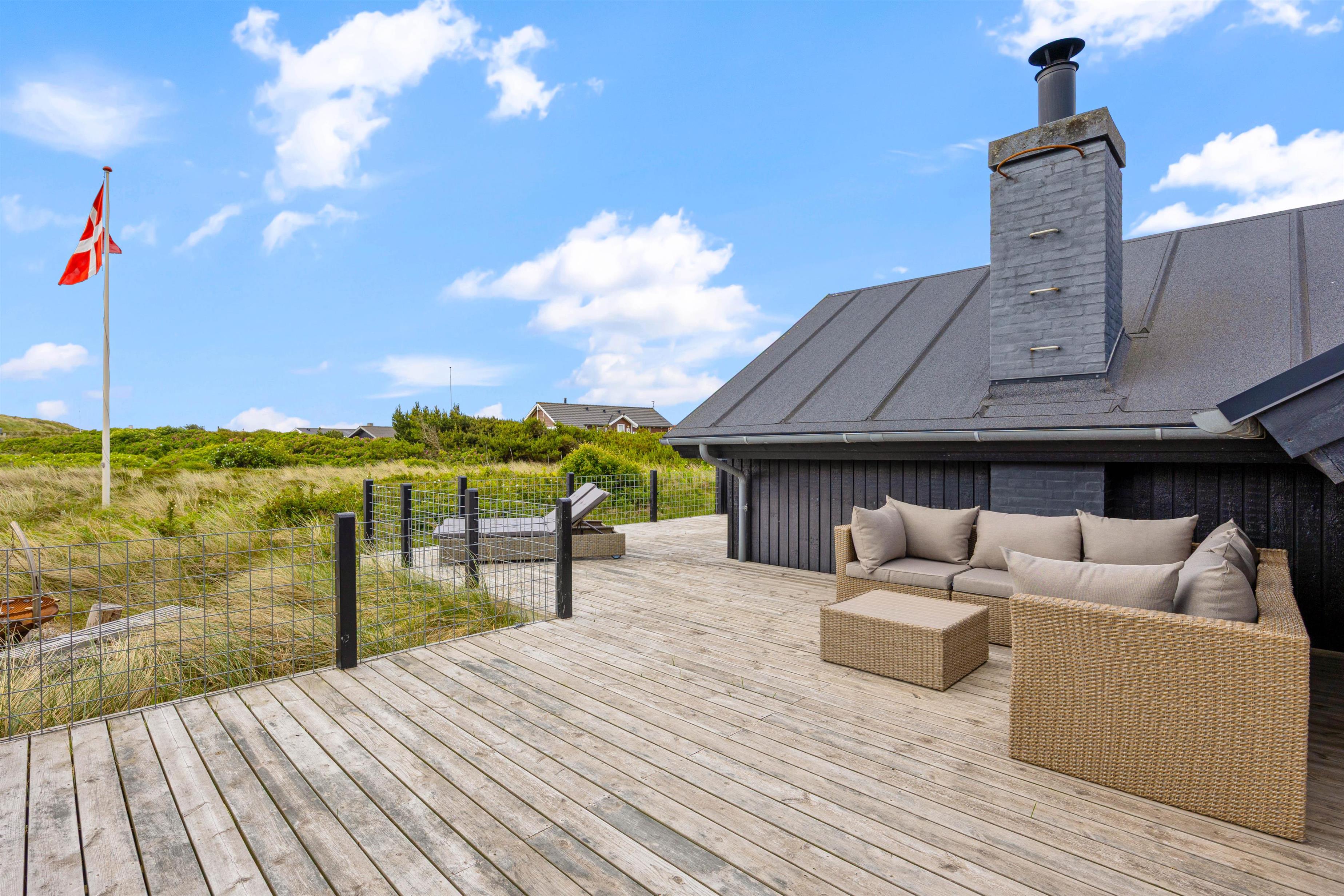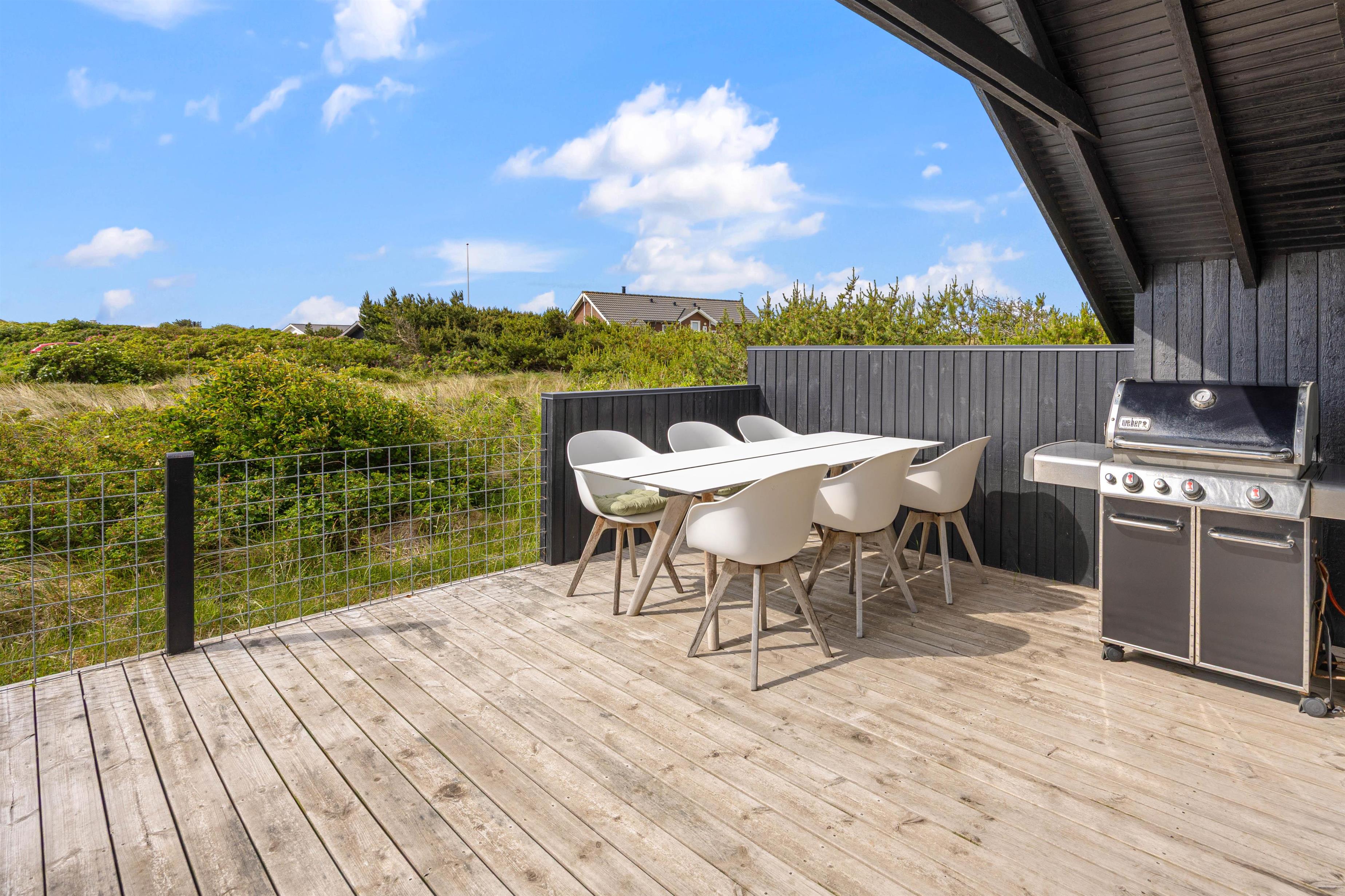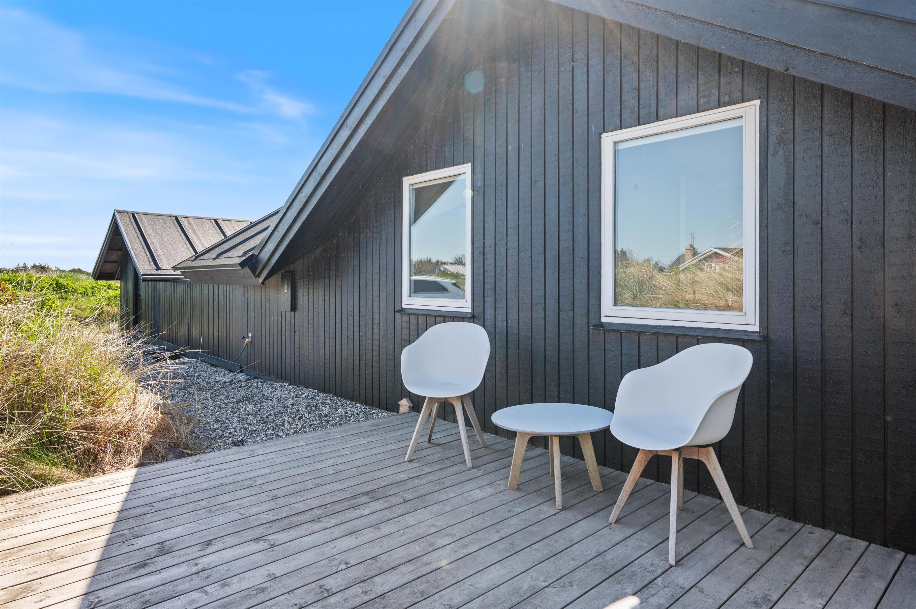 Udendørsområdet ligger op til både afslapning og hygge. Terrassen er et perfekt sted at nyde solen, en god bog eller et lækkert grillmåltid. Havemøblerne indbyder til lange, afslappede sommeraftener, hvor I kan nyde udsigten til den omkringliggende natur- og klitgrund.