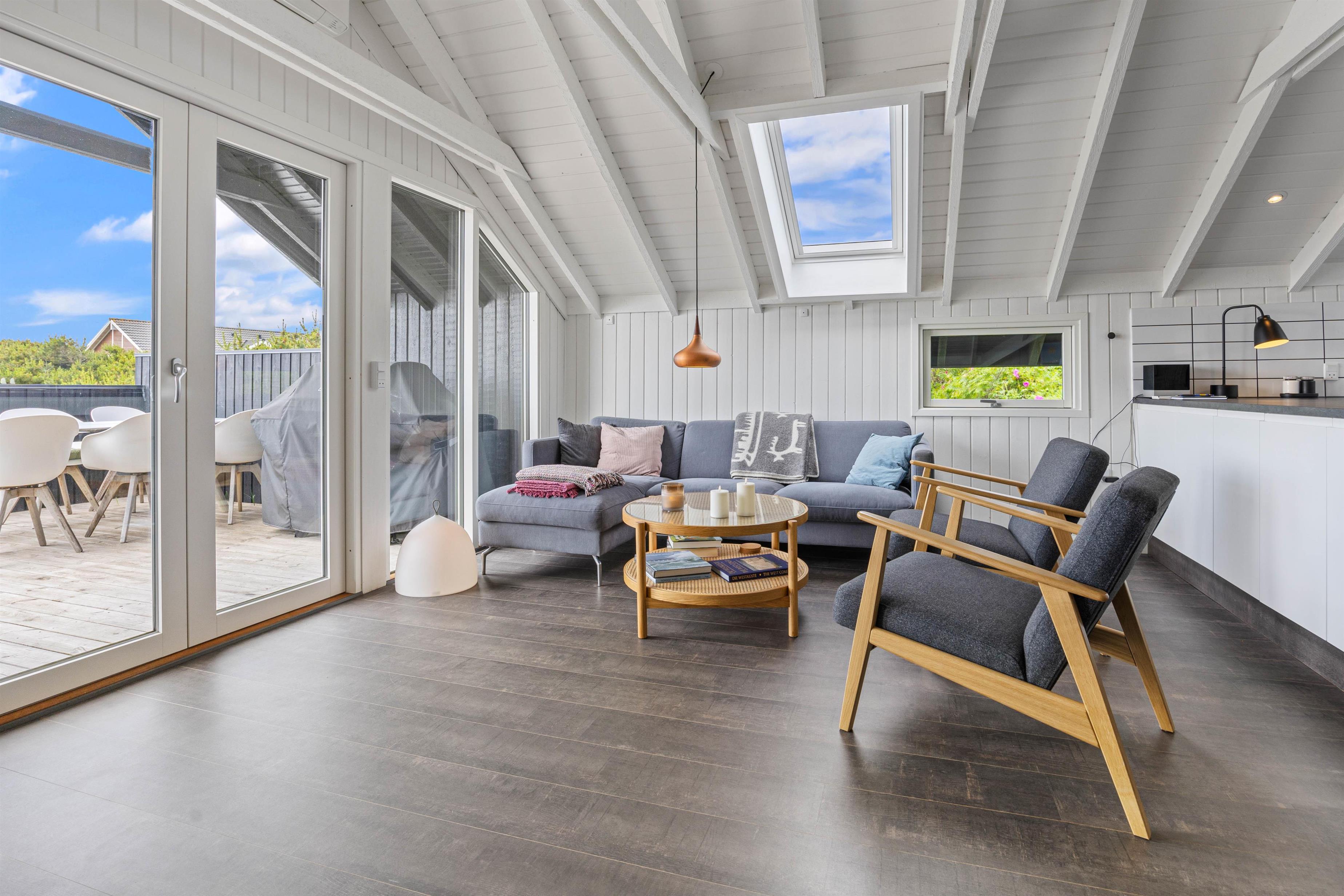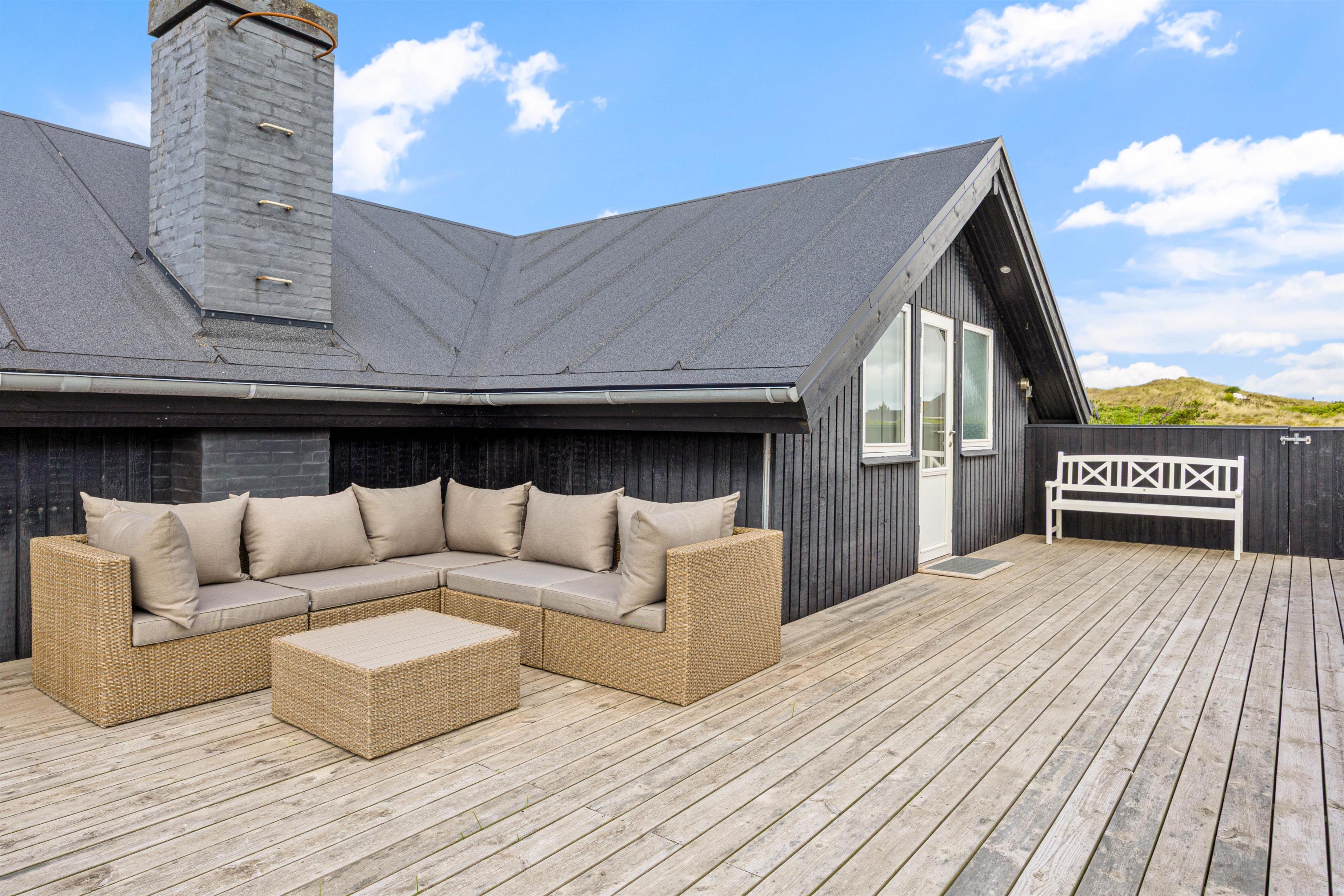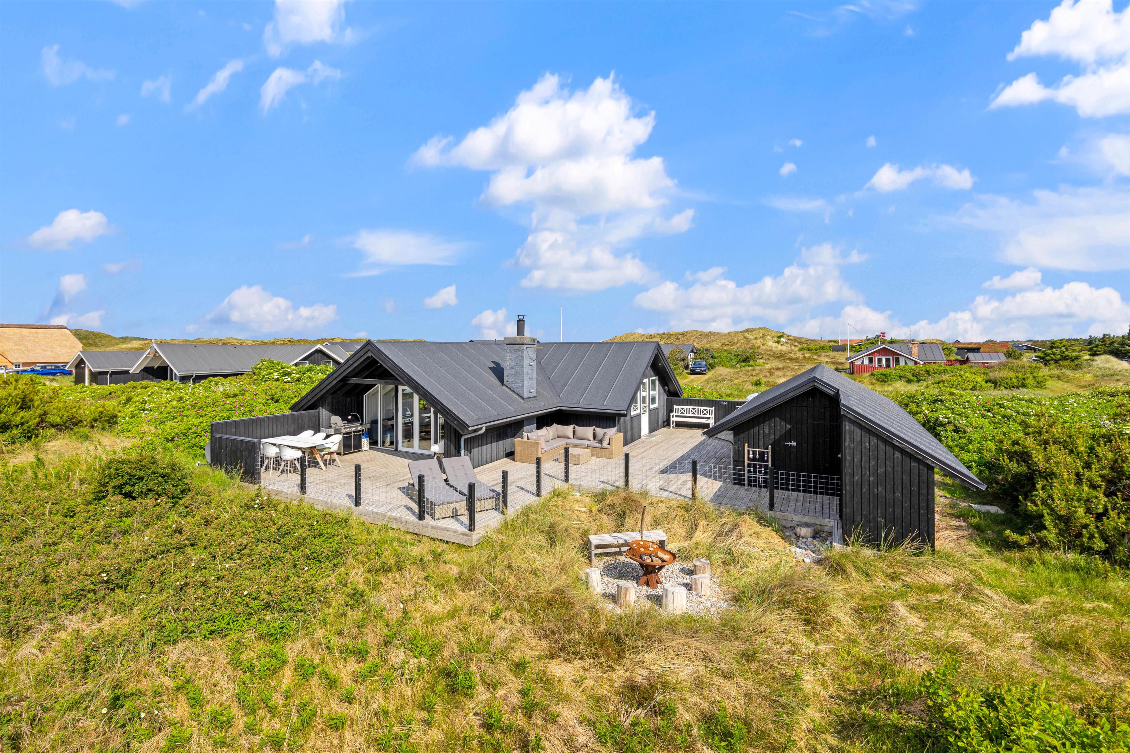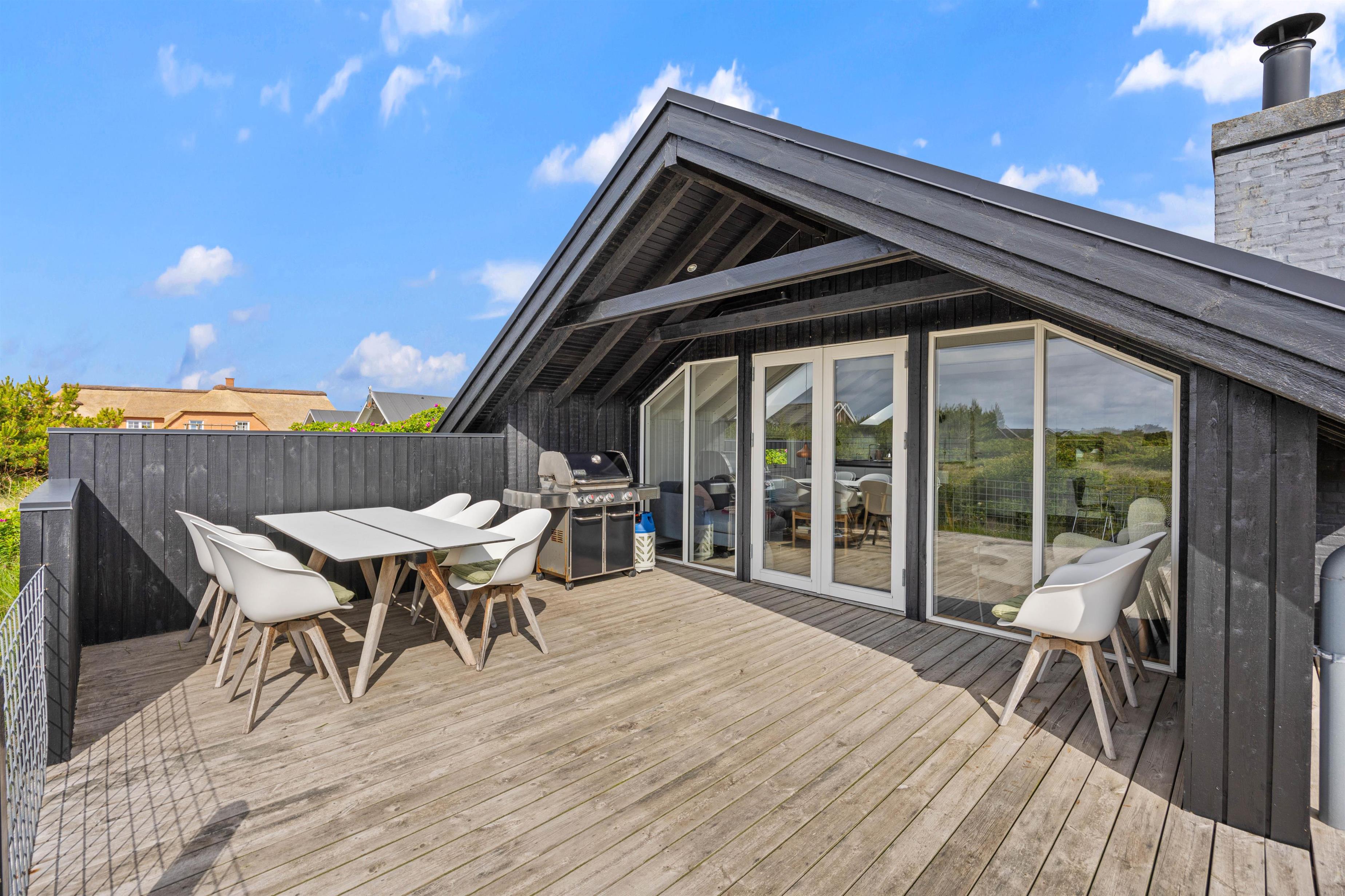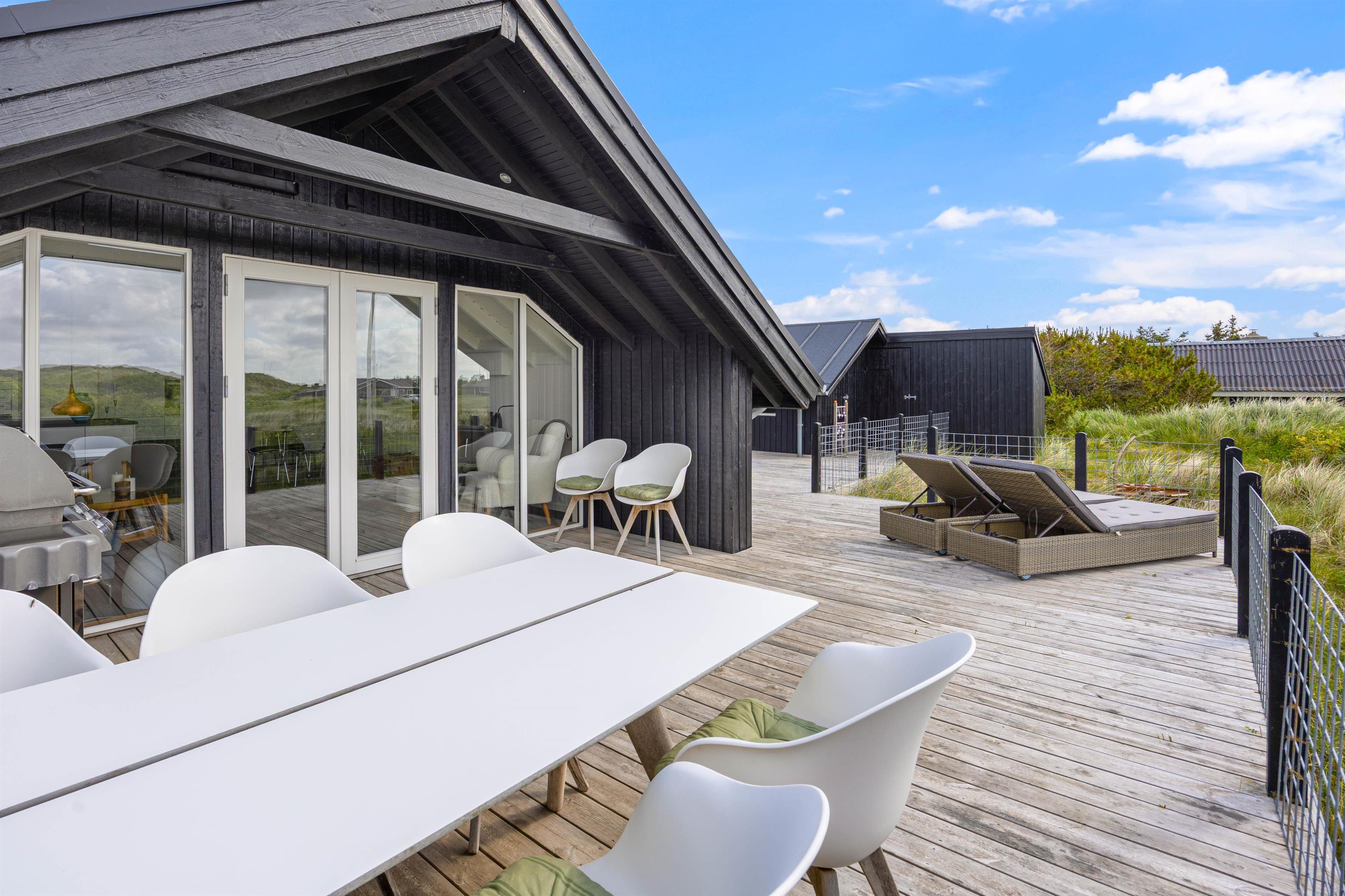 Udendørsområdet ligger op til både afslapning og hygge. Terrassen er et perfekt sted at nyde solen, en god bog eller et lækkert grillmåltid. Havemøblerne indbyder til lange, afslappede sommeraftener, hvor I kan nyde udsigten til den omkringliggende natur- og klitgrund.
