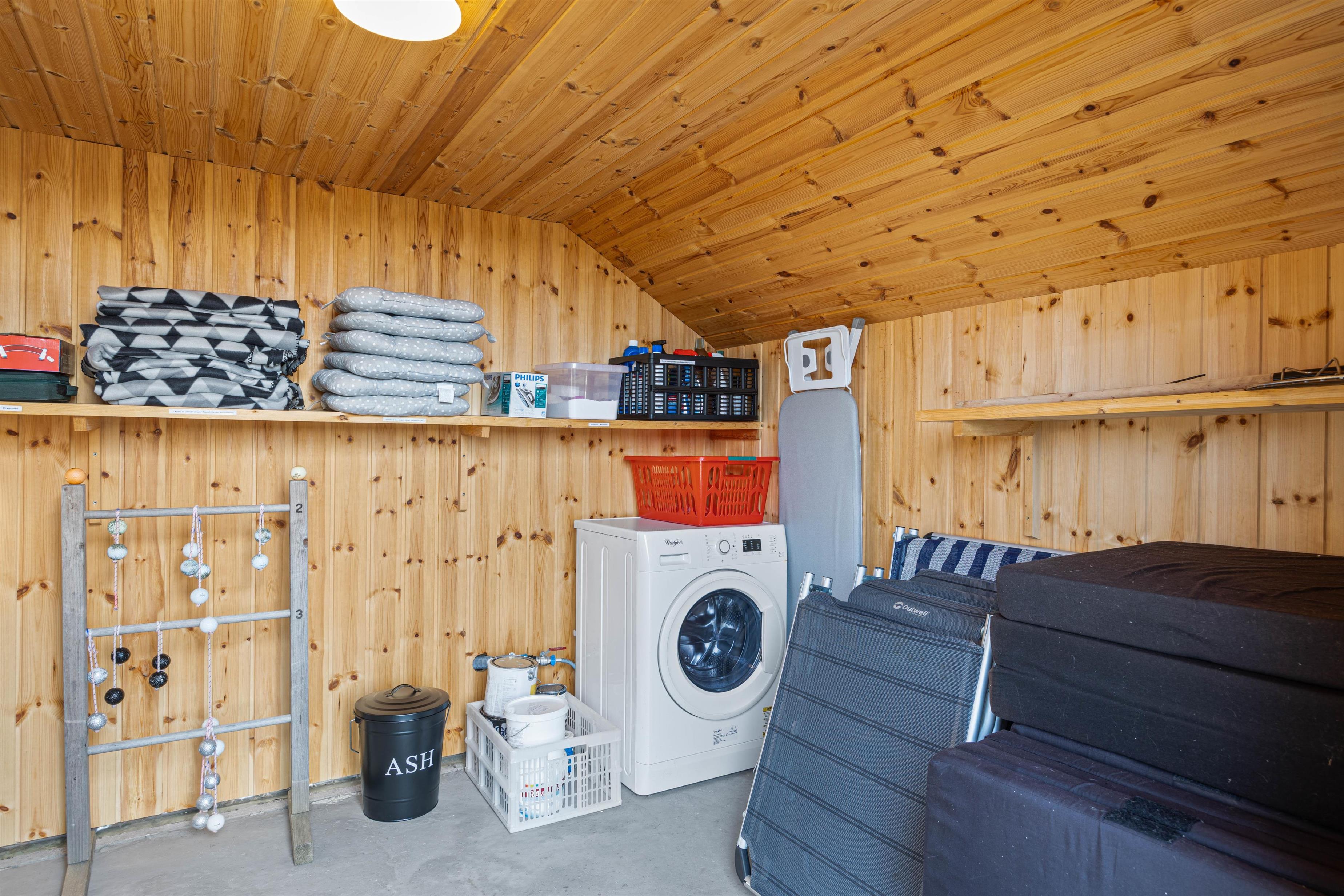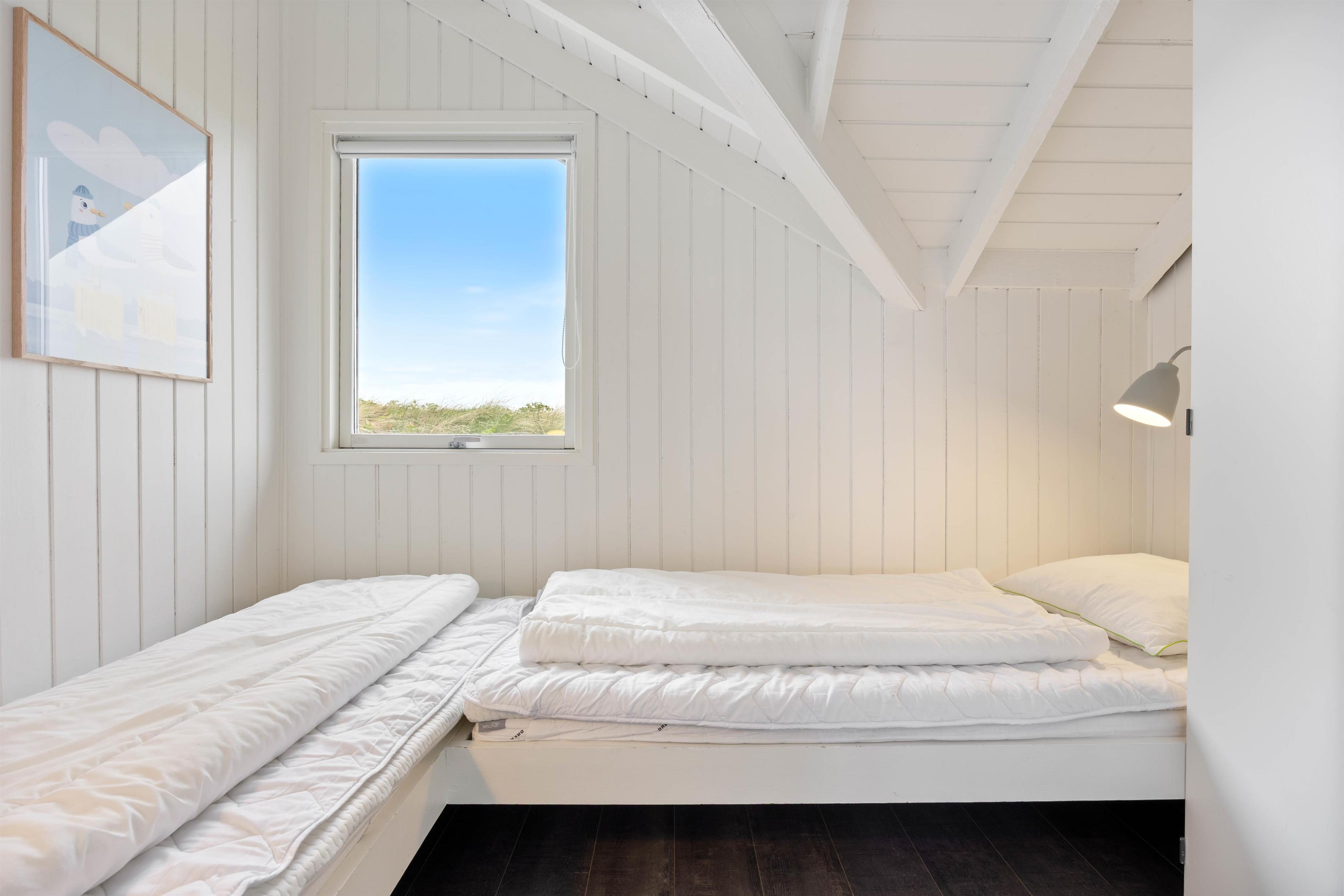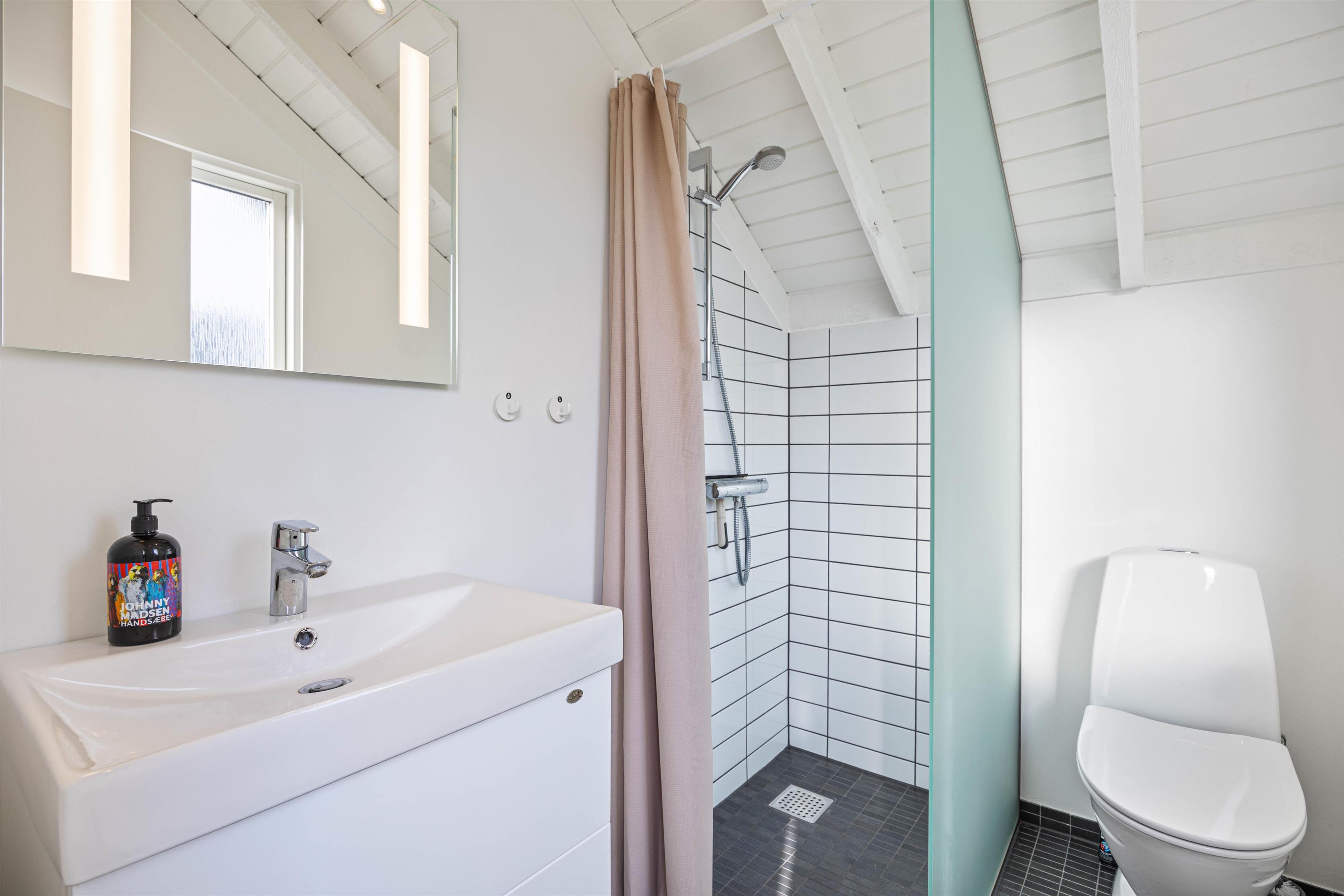 Sommerhuset har 3 soveværelser - det ene værelse er udstyret med 1 dobbeltseng, mens de 2 andre værelser har henholdsvis 2 enkeltsenge og 1 køjeseng. På sommerhusets badeværelse er der gulvvarme. Vaskemaskinen gør det nemt at håndtere praktiske gøremål under ferien.