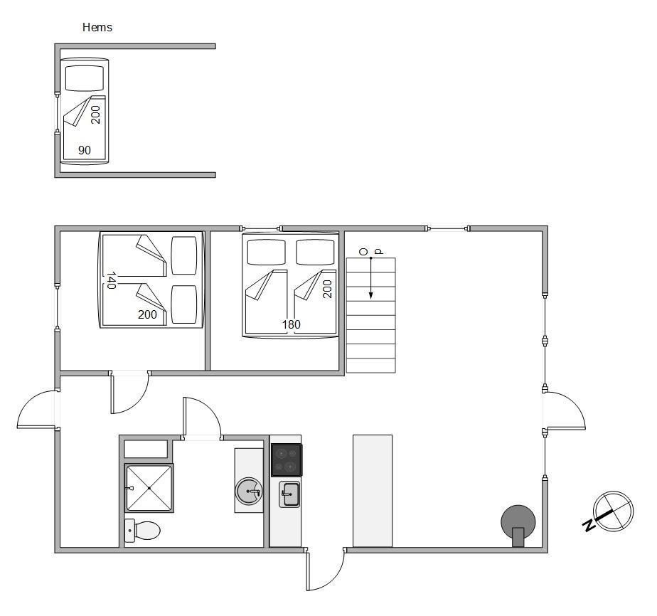 Sommerhuset har to hyggelige soverum, hvor I kan finde til ro efter en dejlig dag. I sommerhusets stue er der en brændeovn, hvor I kan samles om aften, og nyde den dejlige varme fra brændeovnen. I sommerhuset er der også en energibesparende luft-til-luft varmepumpe, som sikrer et dejlig temperatur året rundt.