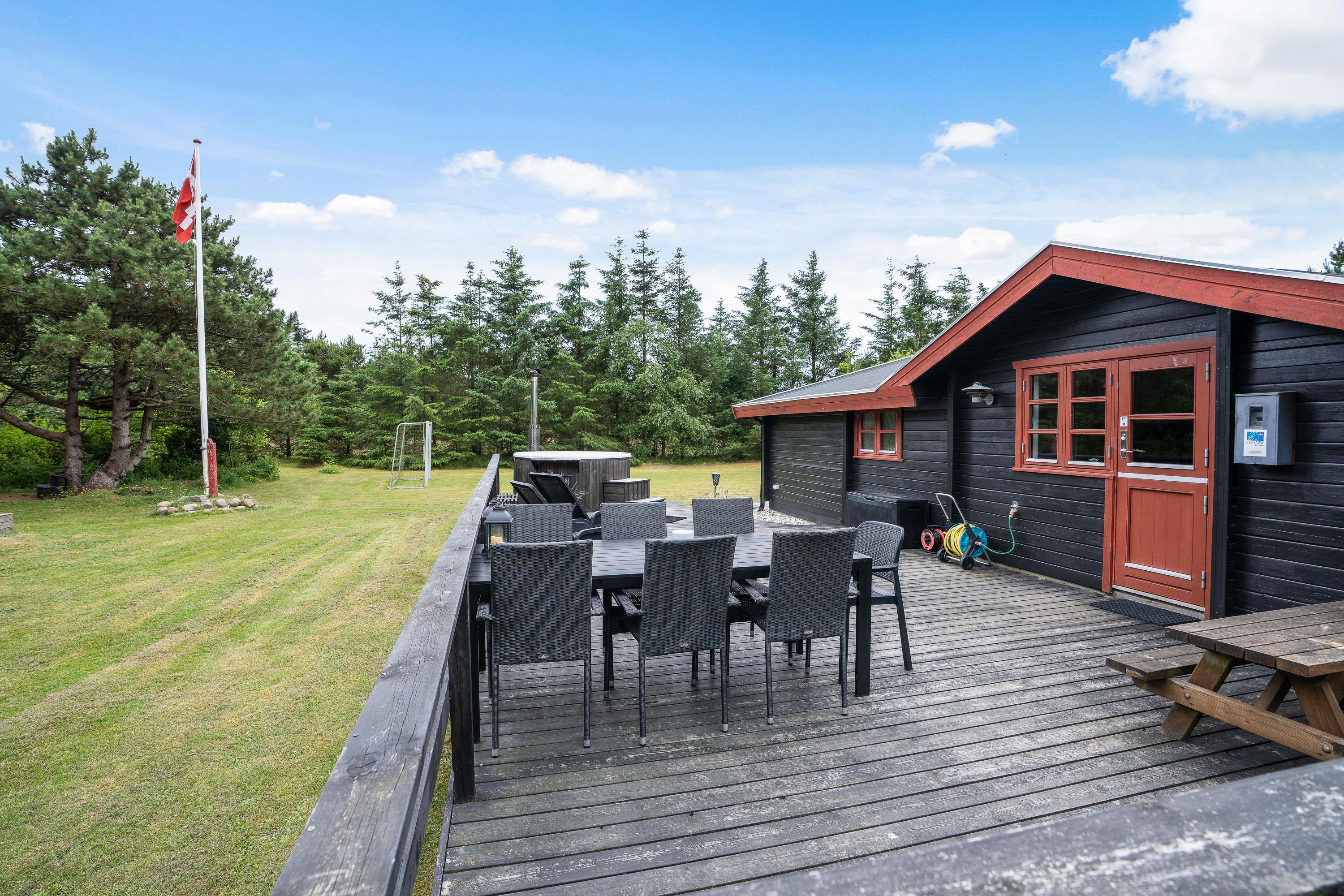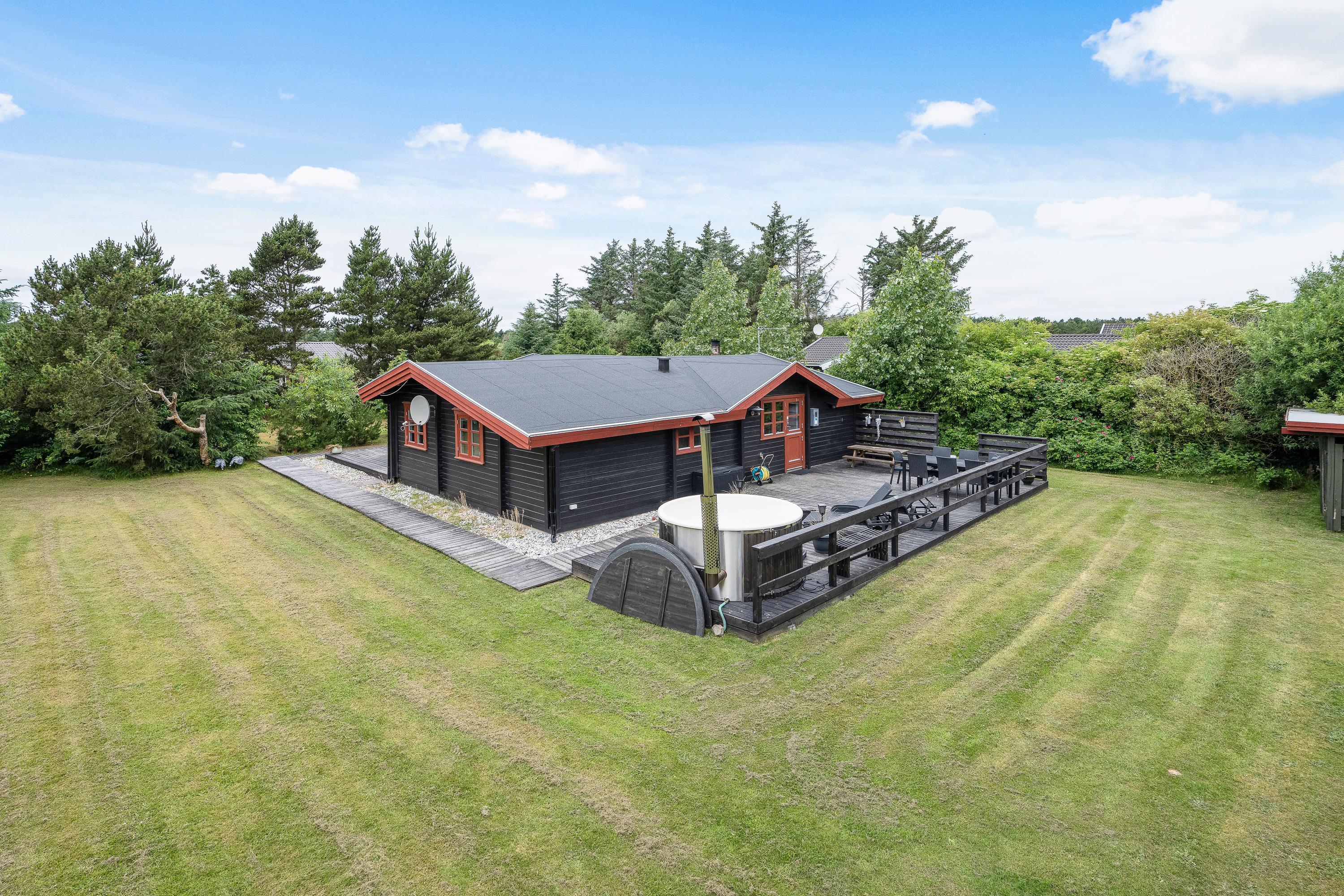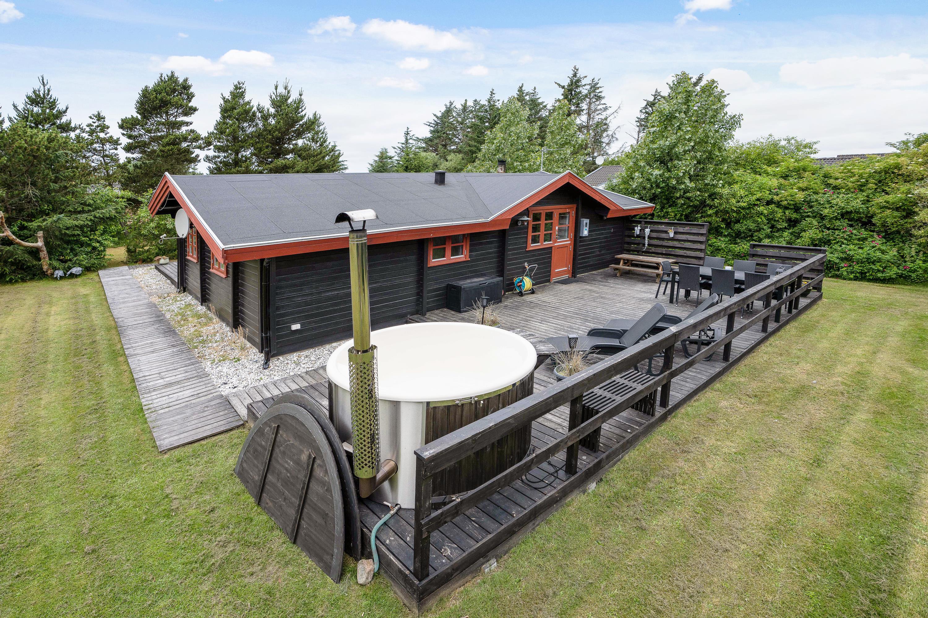 De voksne er bestemt ikke blevet glemt, heller ikke udenfor. På terrassen af sommerhuset er der et skønt vildmarksbad, som sætter prikken over i'et for afslapningen på jeres ferie.