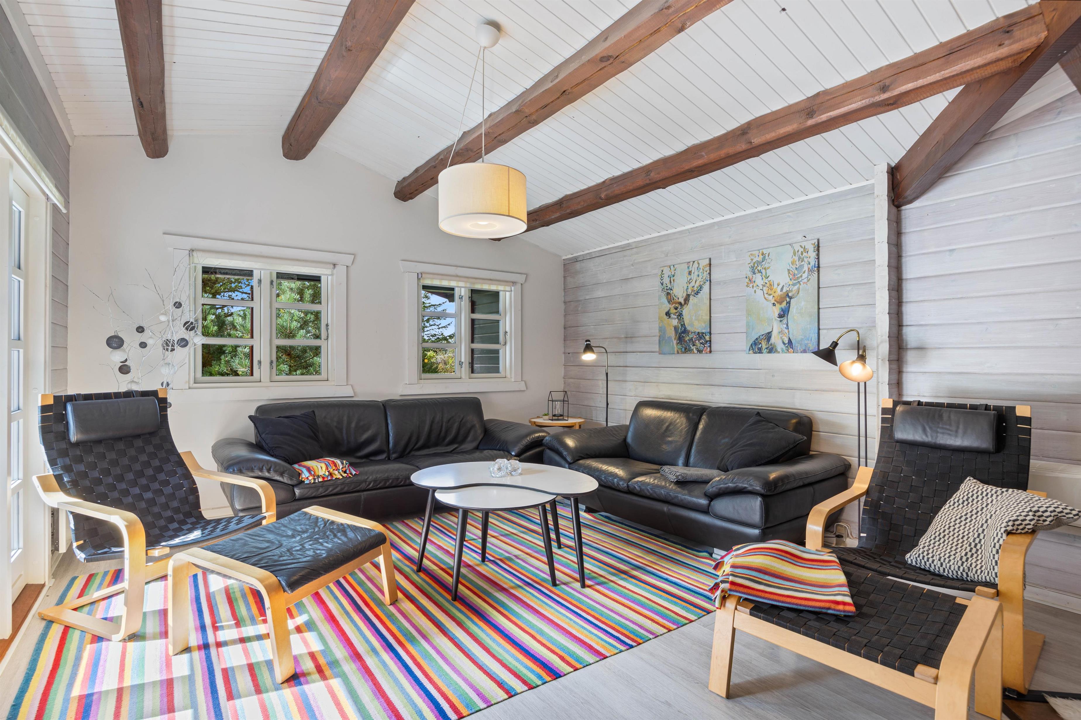 Feriehuset er hyggeligt indrettet i den mere traditionelle stil, så den gode feriestemning mærkes med det samme, du træder ind ad døren. Både bjælkerne i loftet og de mange detaljer i huset gør, at stemningen for samvær og kvalitetstid med familien er sat. Huset har i slutningen af 2019 fået lagt nyt trægulv i køkken-alrummet, stuen samt i gangen. I de tre soveværelser er der behageligt gulvtæppe. De 8 sovepladser er fordelt over 3 dobbeltsenge og en køjeseng.
