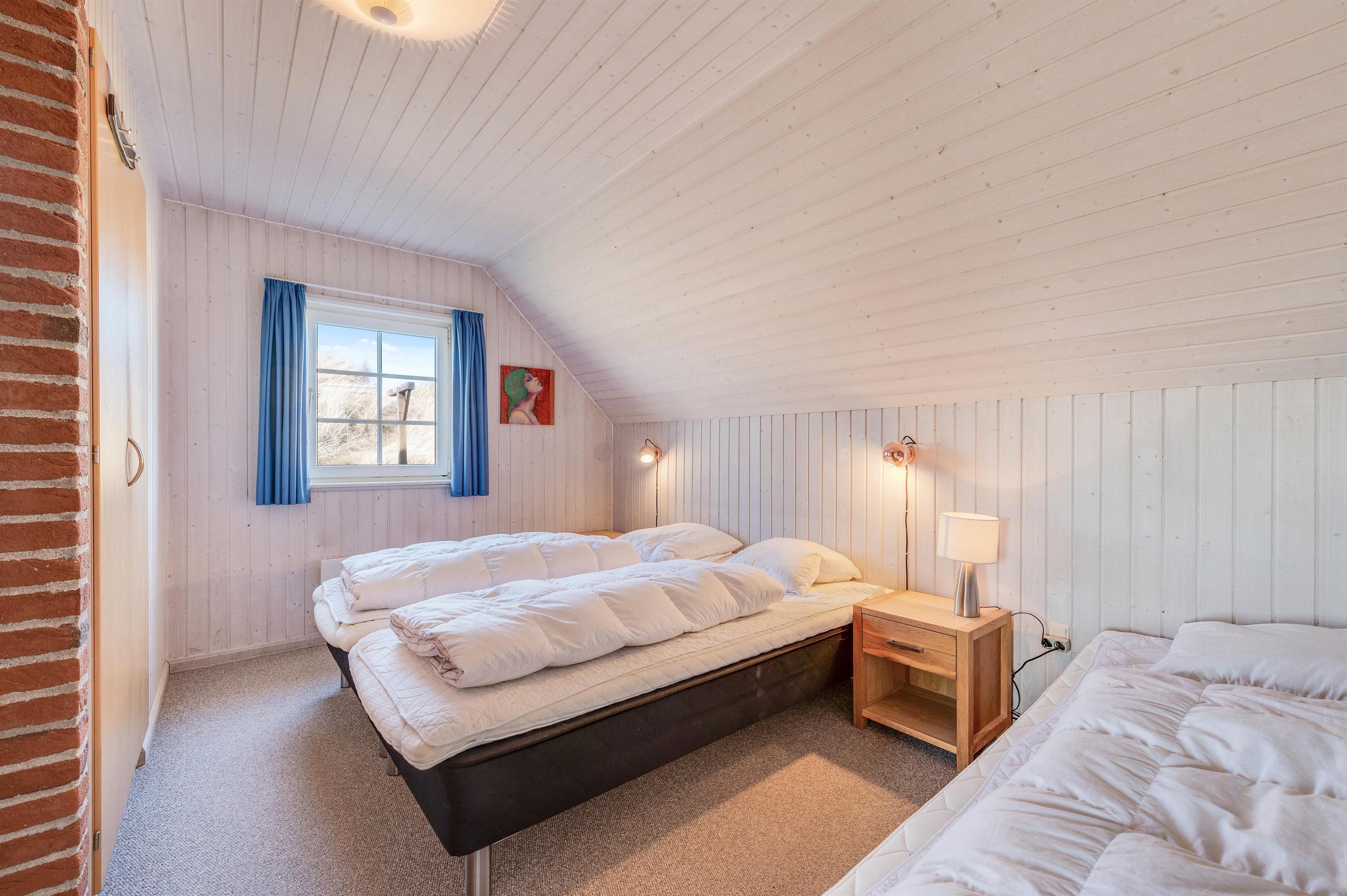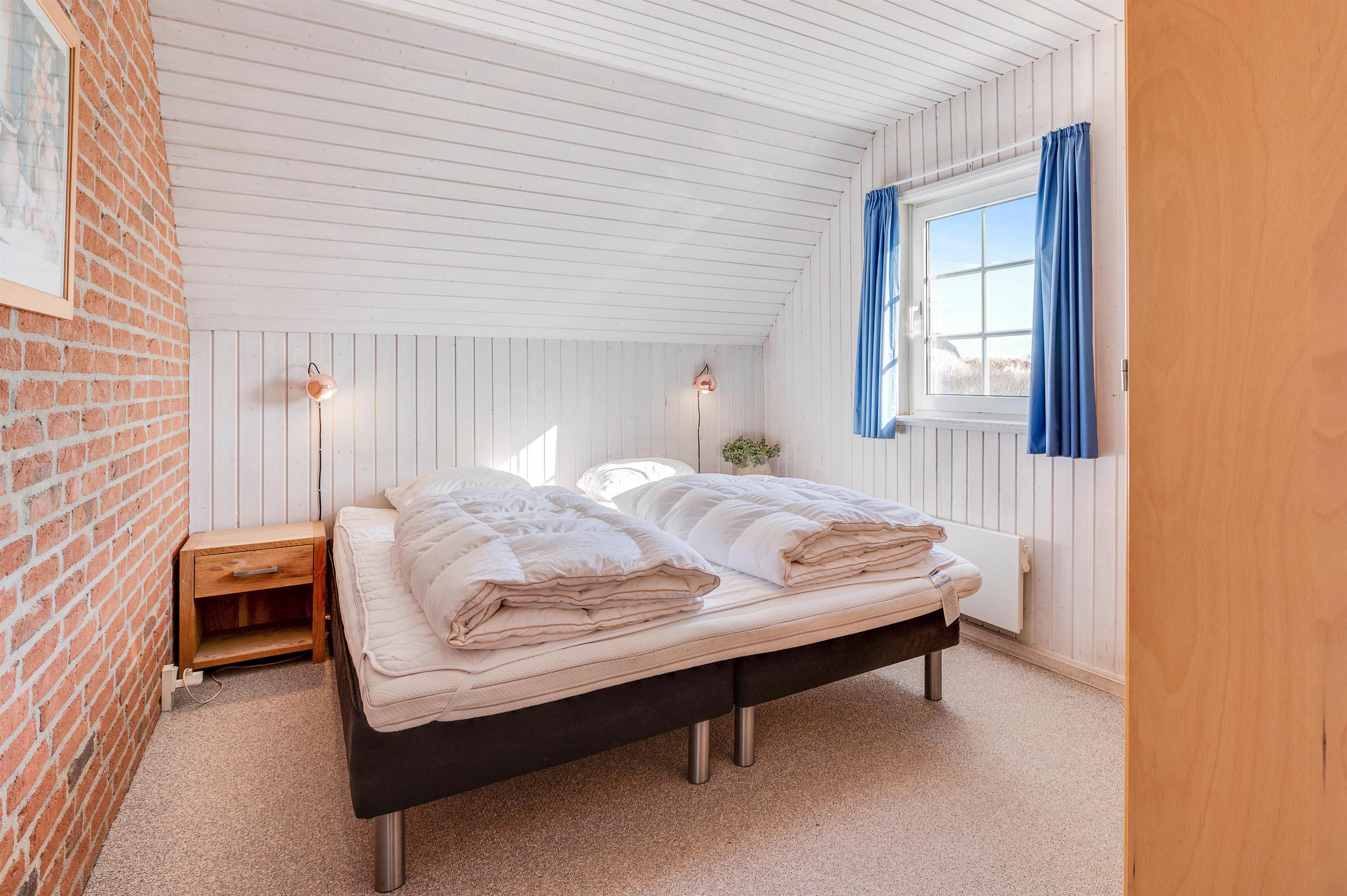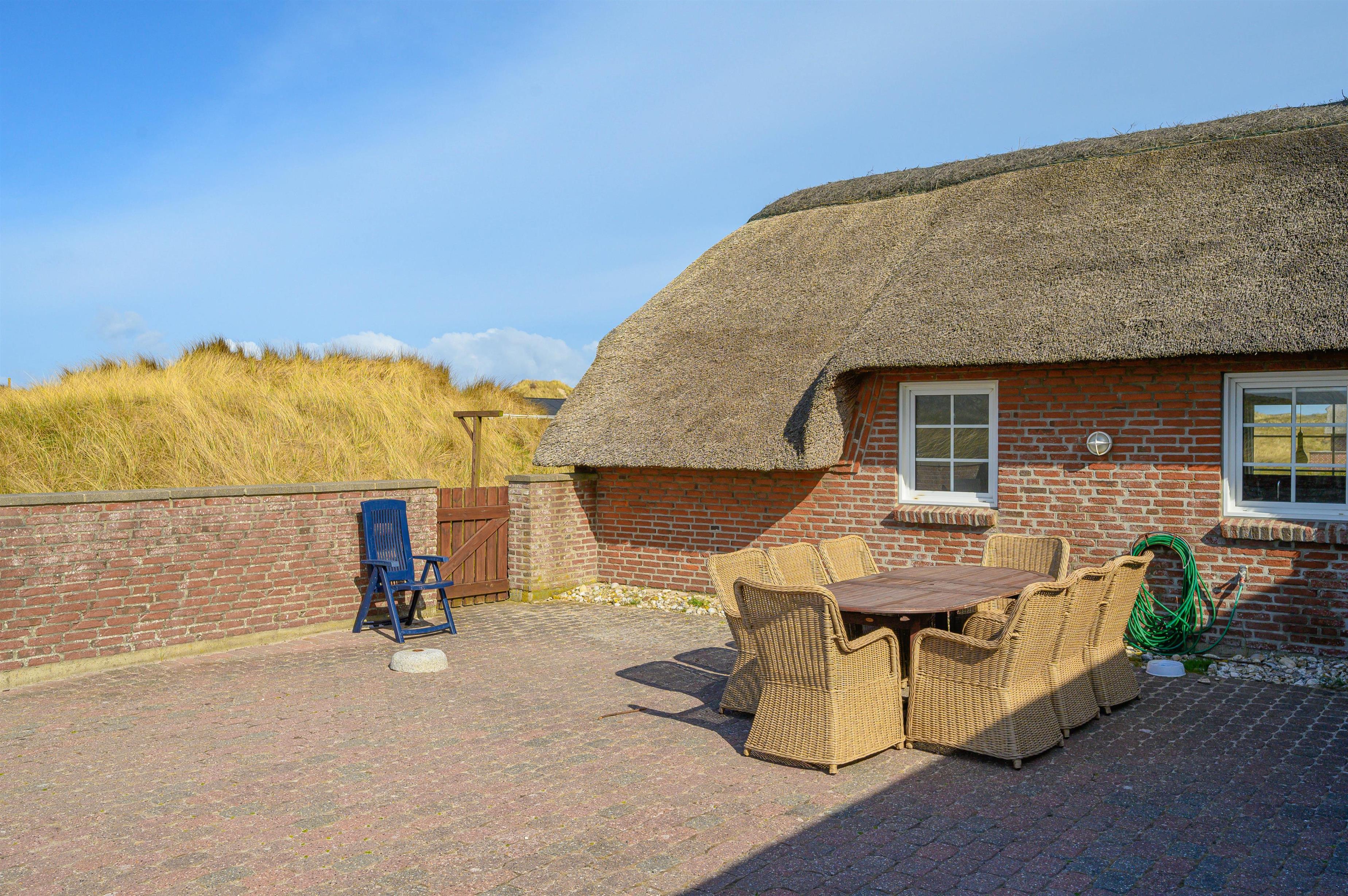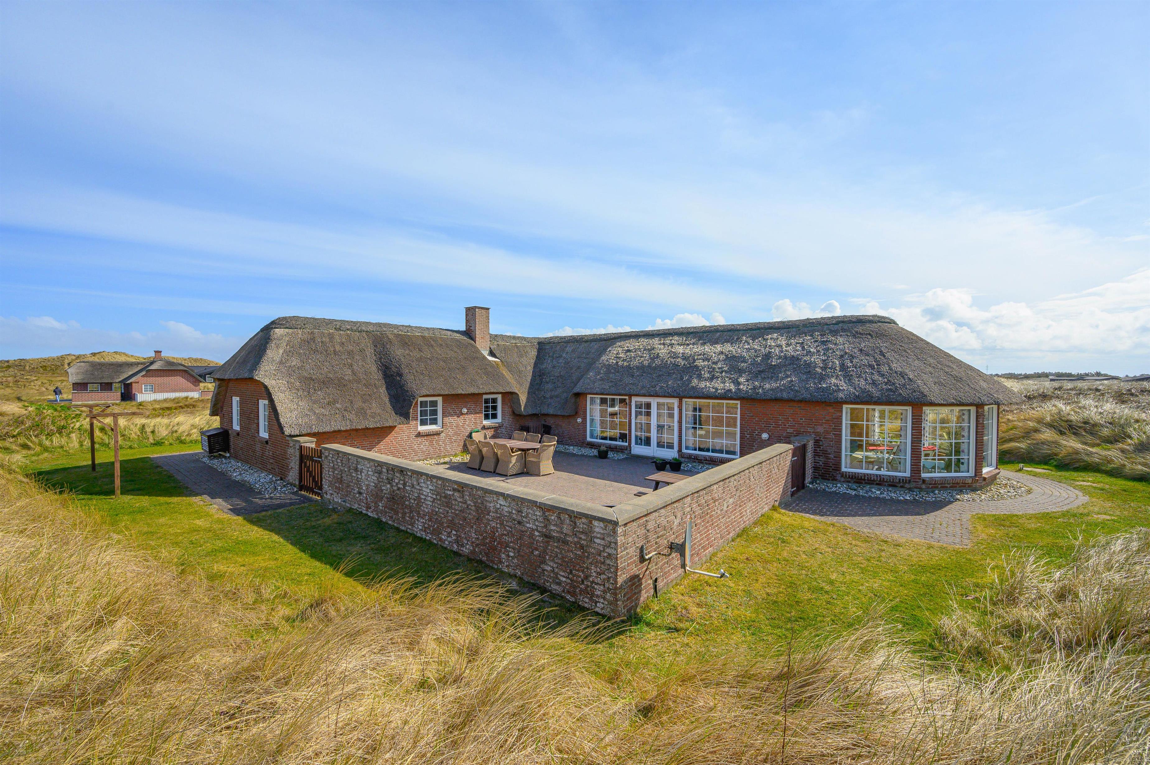 Der er mange grunde til at holde ferie i netop dette feriehus. Det ligger uforstyrret i 1. klitrække, så du har de smukke klitter og Vesterhavet lige ved siden af. Sydvest for feriehuset er der en stor lukket terrasse, hvor du kan sidde og nyde de gode solskinsdage og grillhygge med familien.