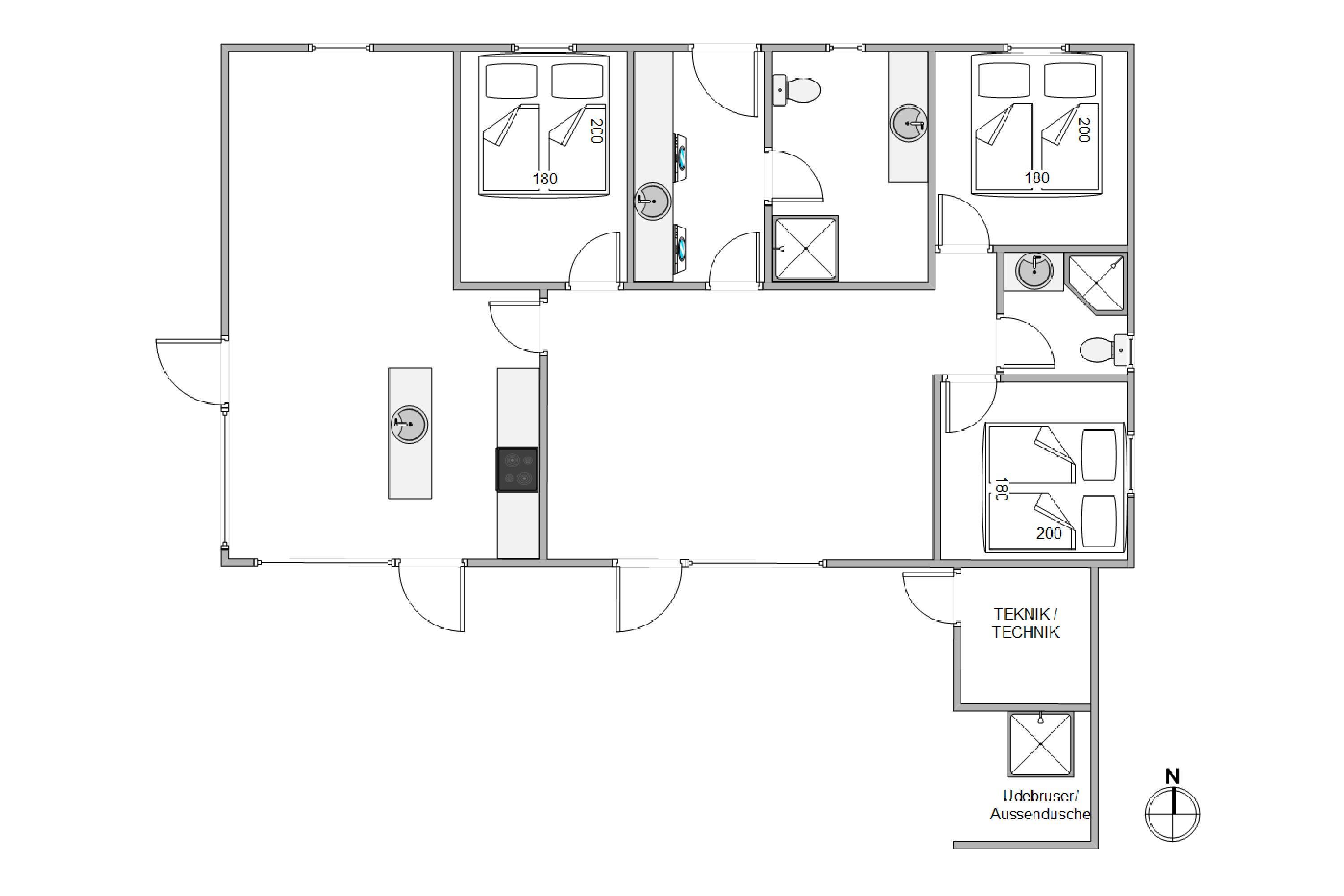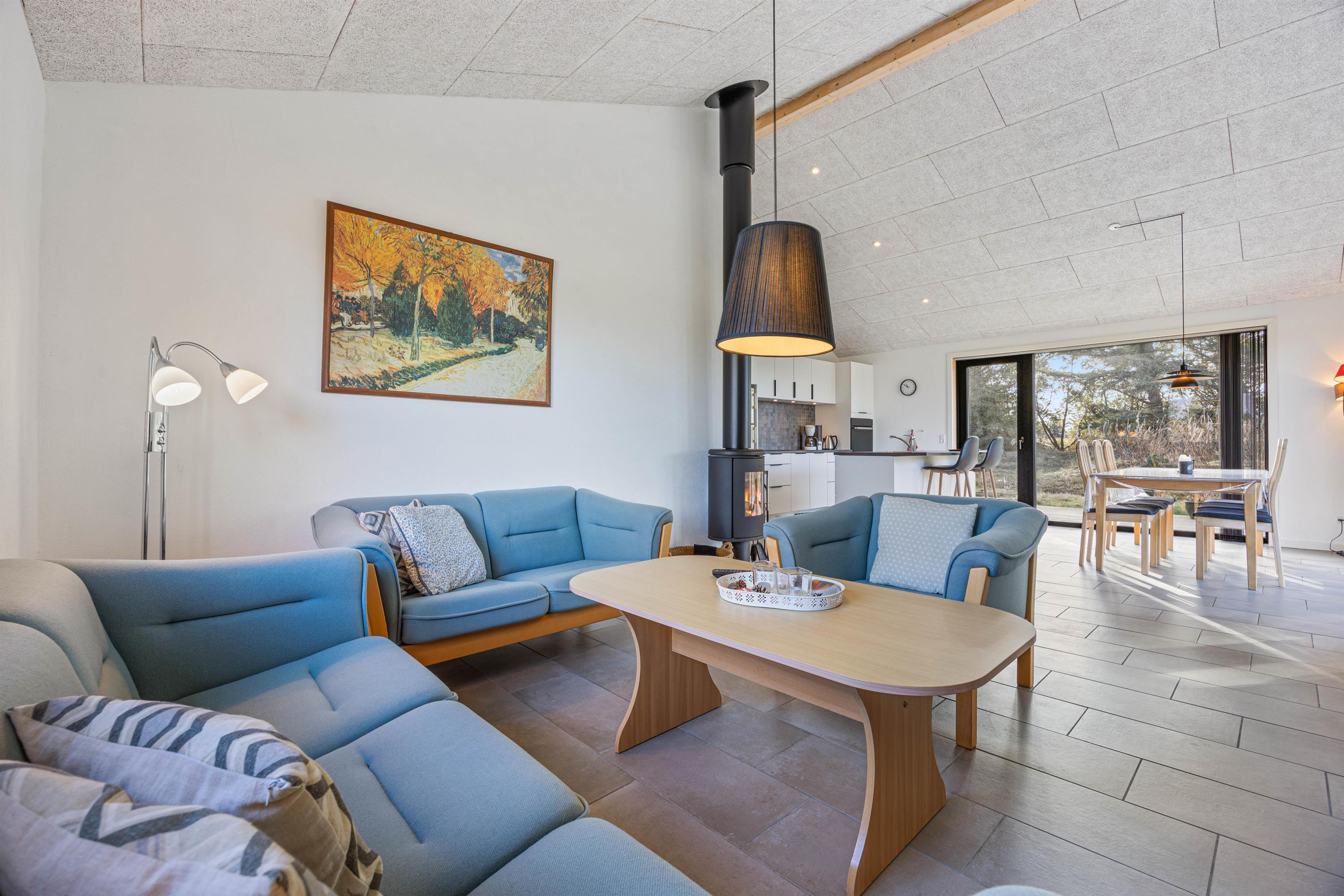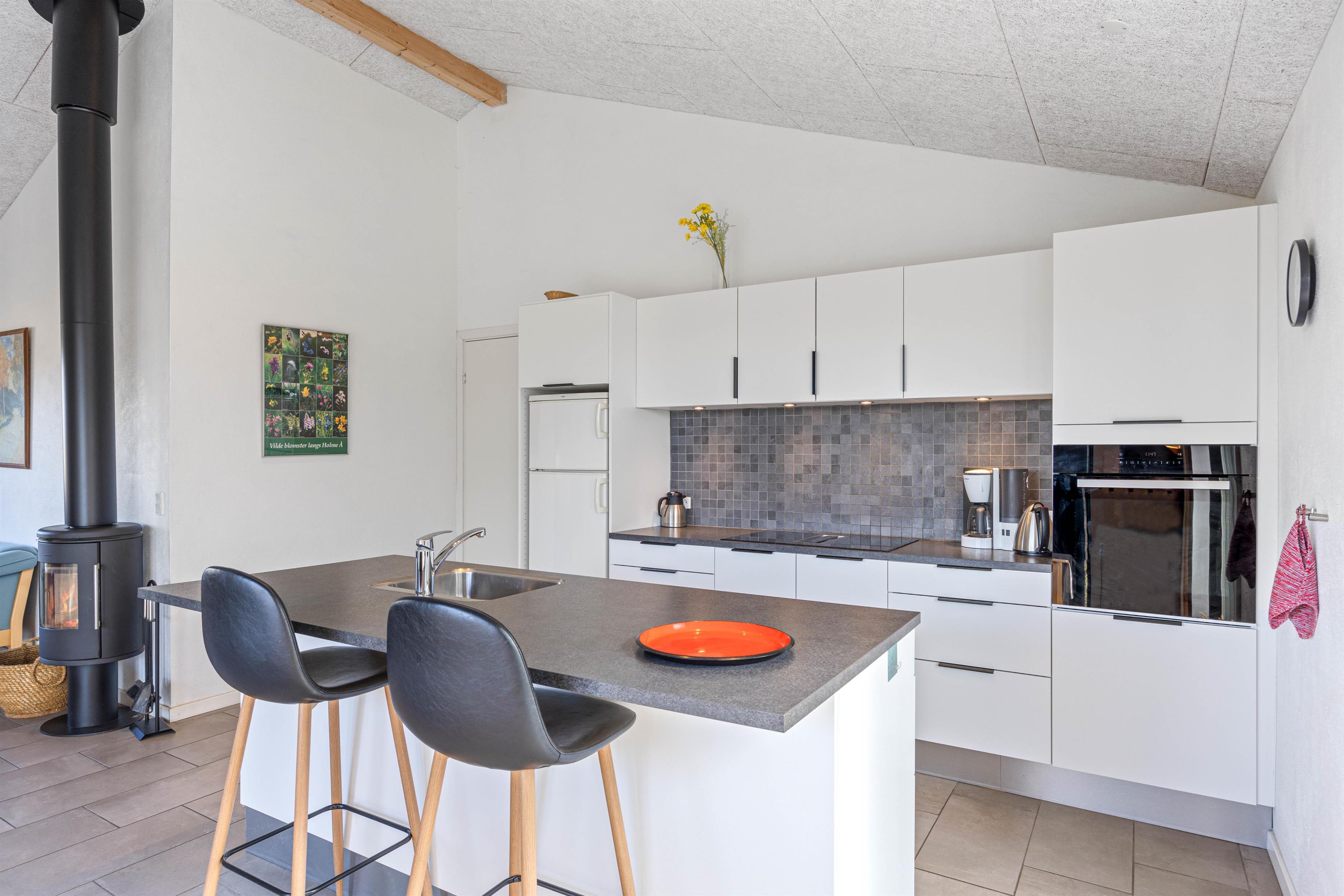 Som en ekstra bonus er ferieboligen indrettet med et aktivitetsrum med både bordfodbold, dartskive og masser af legesager til de yngste feriegæster. Sommerhusets 120 kvadratmeter er fordelt på entré med vaskemaskine og tørretumbler, 3 gode soveværelser, 2 badeværelser, stue og køkkenalrum. I både stuen og på badeværelserne er der gulvvarme. En brændeovn tilfører feriehuset et touch af klassisk sommerhusstil.