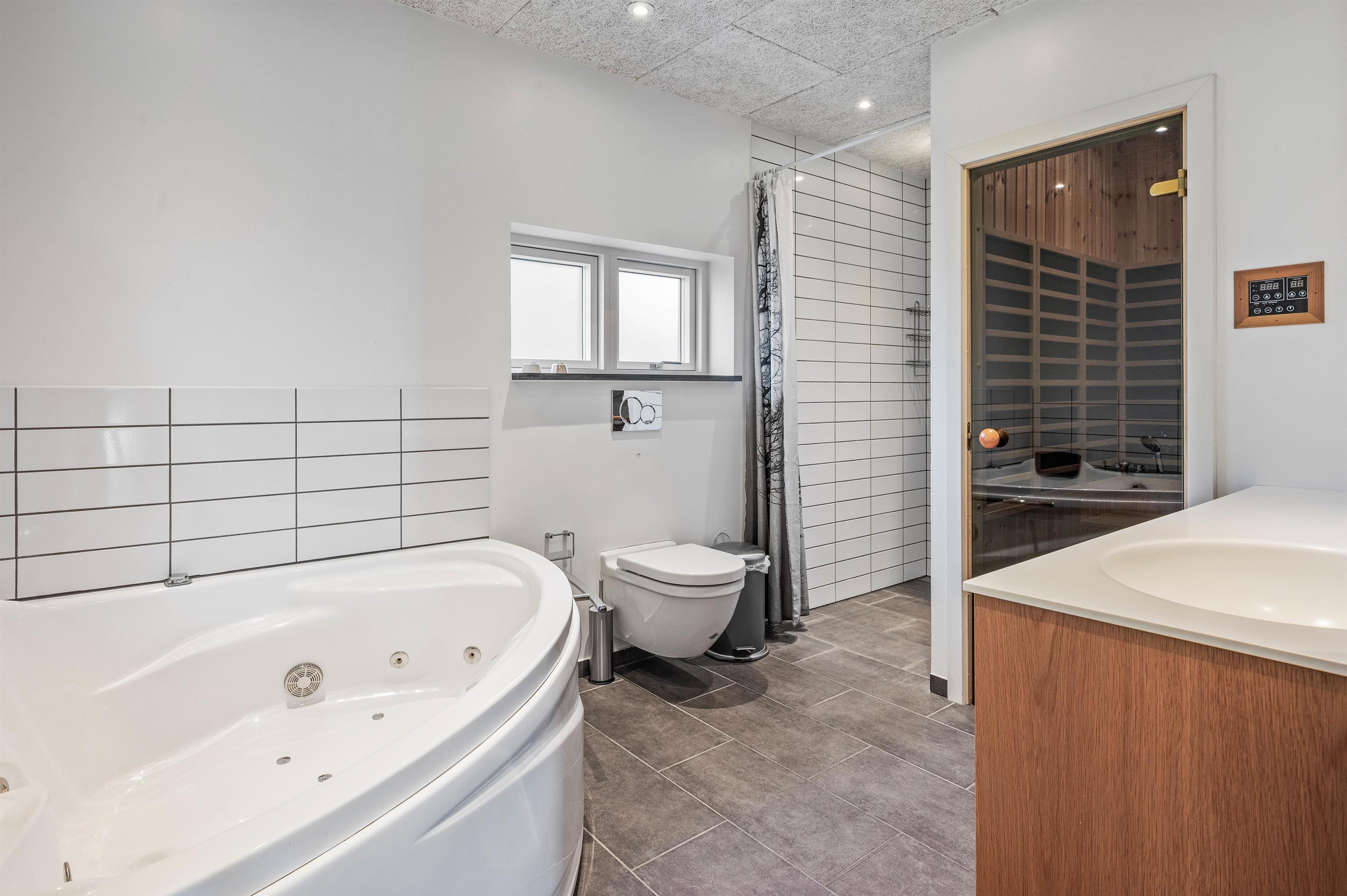 Jo, ved Vesterhavet kan der være dage, hvor regn og storm holder jer inden døre. Men det er ingen problem på Opstrupvej 69. Her har I jeres helt egen fine wellnessafdeling: Tænd op for sauna og spa og forkæl jer selv med varmt boblevand eller sunde sauna-ture imens vestvinden suser uden for.