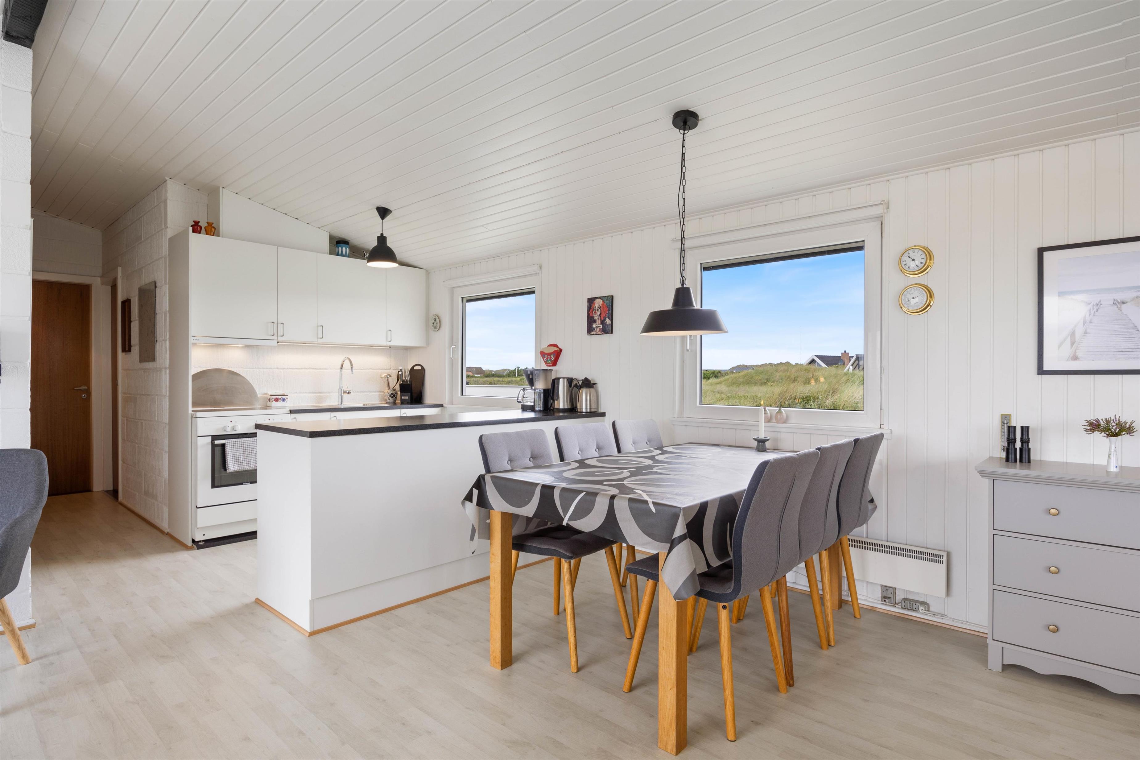 Rammerne til en afslappende og rolig ferie, hvor der er tid til samvær med dem I holder mest af er sat. Sommerhuset på Havklitvej 38 har et dejligt køkkenalrum, som byder ind til hyggelige samtaler, afslappende sofaaftener og lækre måltider. Med et lille og funktionelt køkken kan I altid lave nogle lækre måltider, med gode faciliteter som mikroovn og køleskab med frostboks.