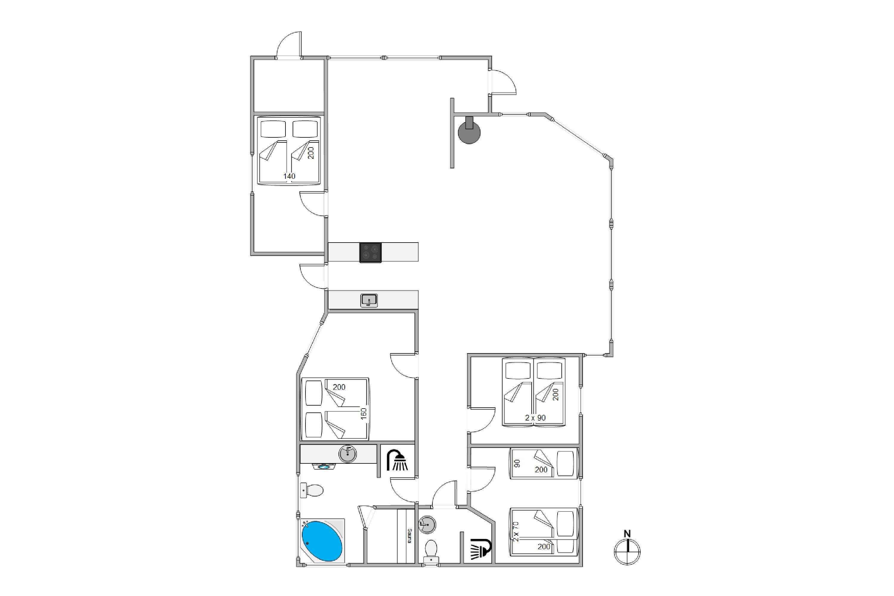I sommerhuset er der mulighed for kvalitetstid og gode samtaler - det består af et stort fællesareal, som kombinerer stue, spiseområde og køkken. Der er også mulighed for at trække sig tilbage i et af husets 4 soveværelser. Sommerhuset indeholder 2 badeværelser med gulvvarme.