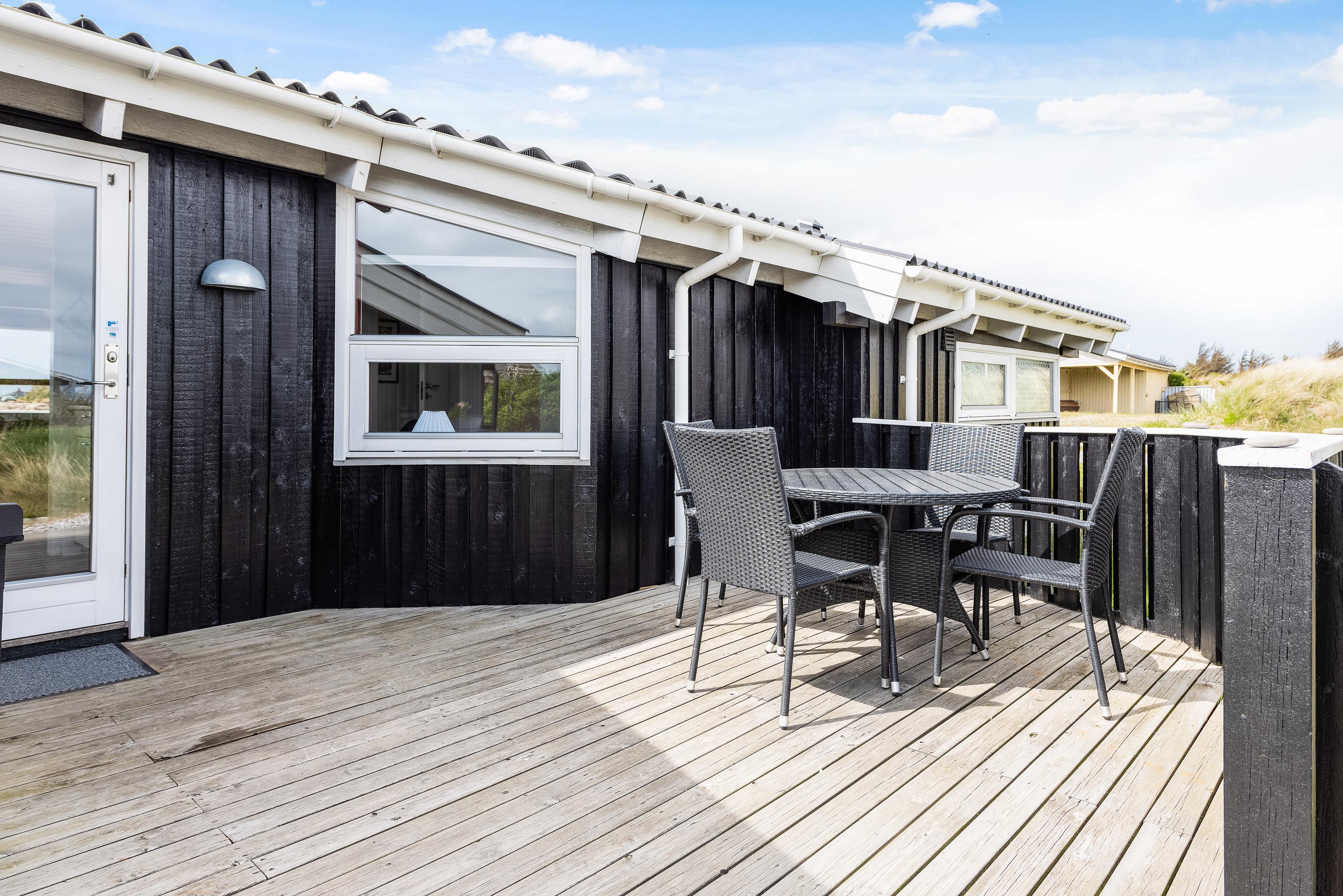 Grill og havemøbler står til rådighed, så I på solrige dage kan indbyde til middag på terrassen. Mens I spiser, kan I nyde den omkringliggende natur og se solen gå ned. I tilfælde af regn kan I stadig nyde den salte luft halvtaget.