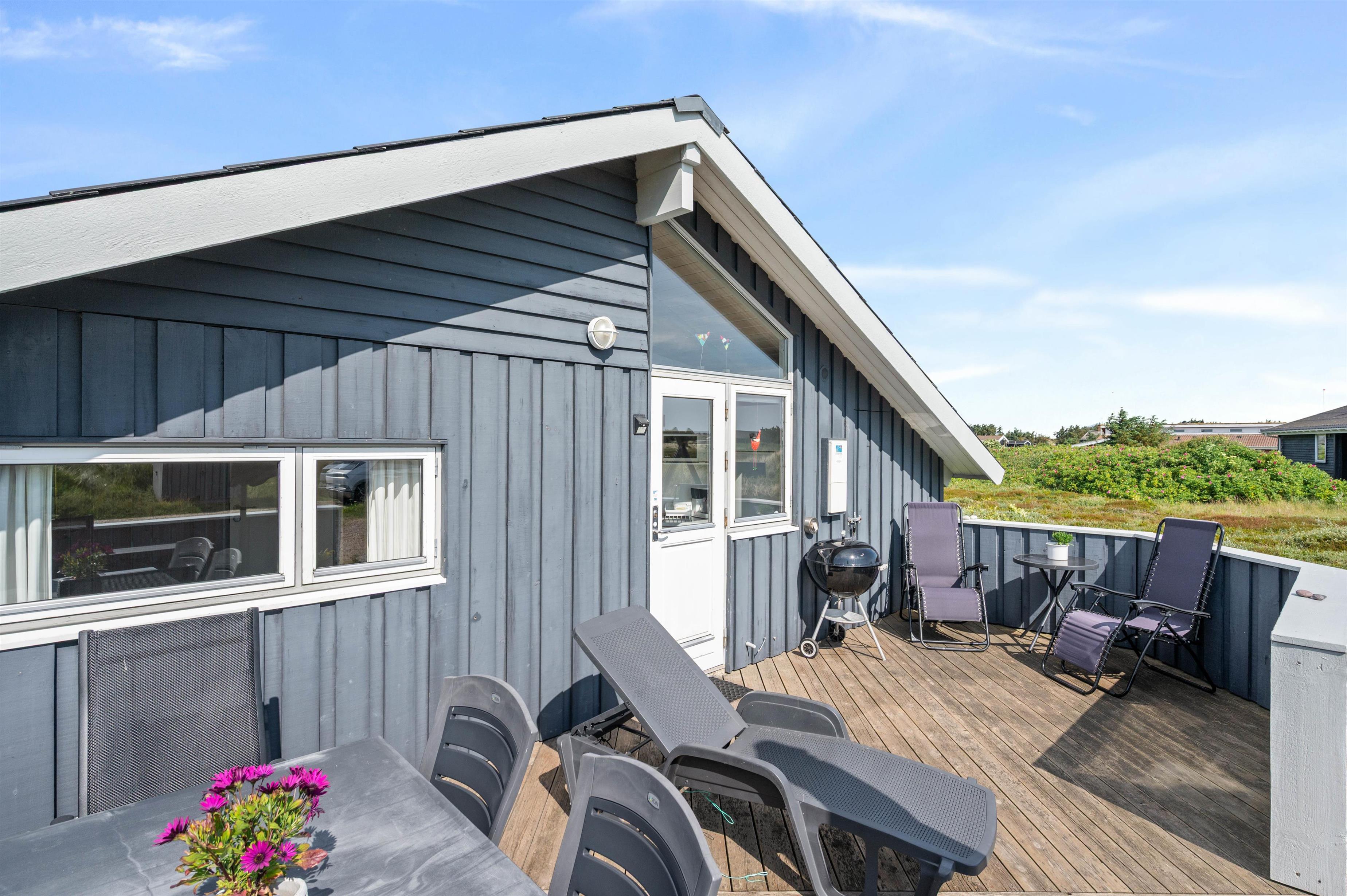 Sommerhuset har 2 terrasse som hver især har deres fordele. På den østvendte terrasse kan I nyde morgenkaffe, i dagens første solstråler. Derimod er den vestvendte terrasse oplagt til hyggelige grillaftener i de lune sommertimer.
