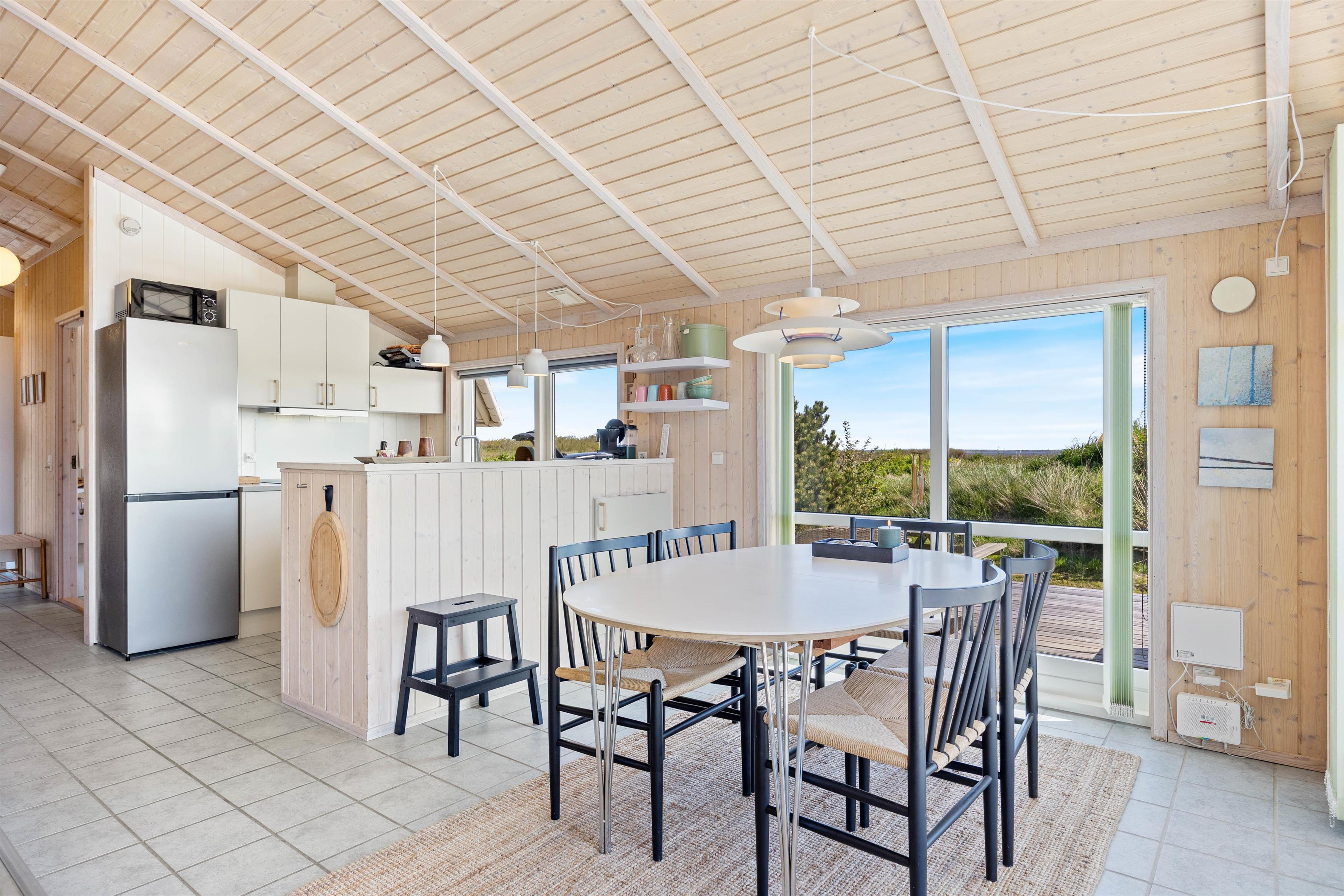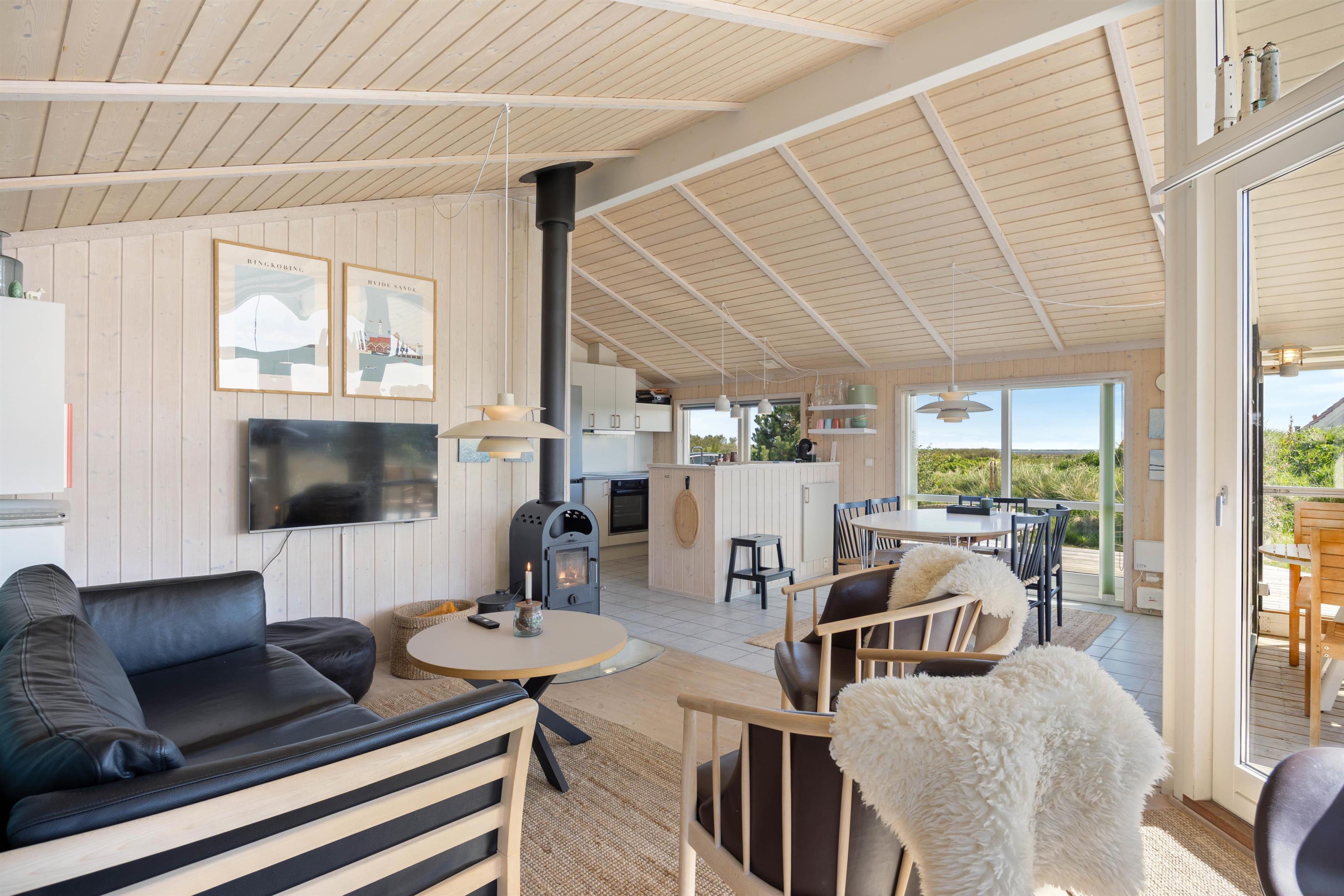 Hele familien kan samles foran brændeovnen i stuen og se jeres yndlingsfilm eller serie på husets smart-TV. Yderligere er der 2 soveværelser, hvor et er med dobbeltseng og det andet med enkeltmandssenge – dette værelse er oplagt til familiens teenagere. Desuden finder I en alkove i stuen, hvor overnattende gæster kan sove, eller du kan få lidt ro, når du skal læse i din bog.
