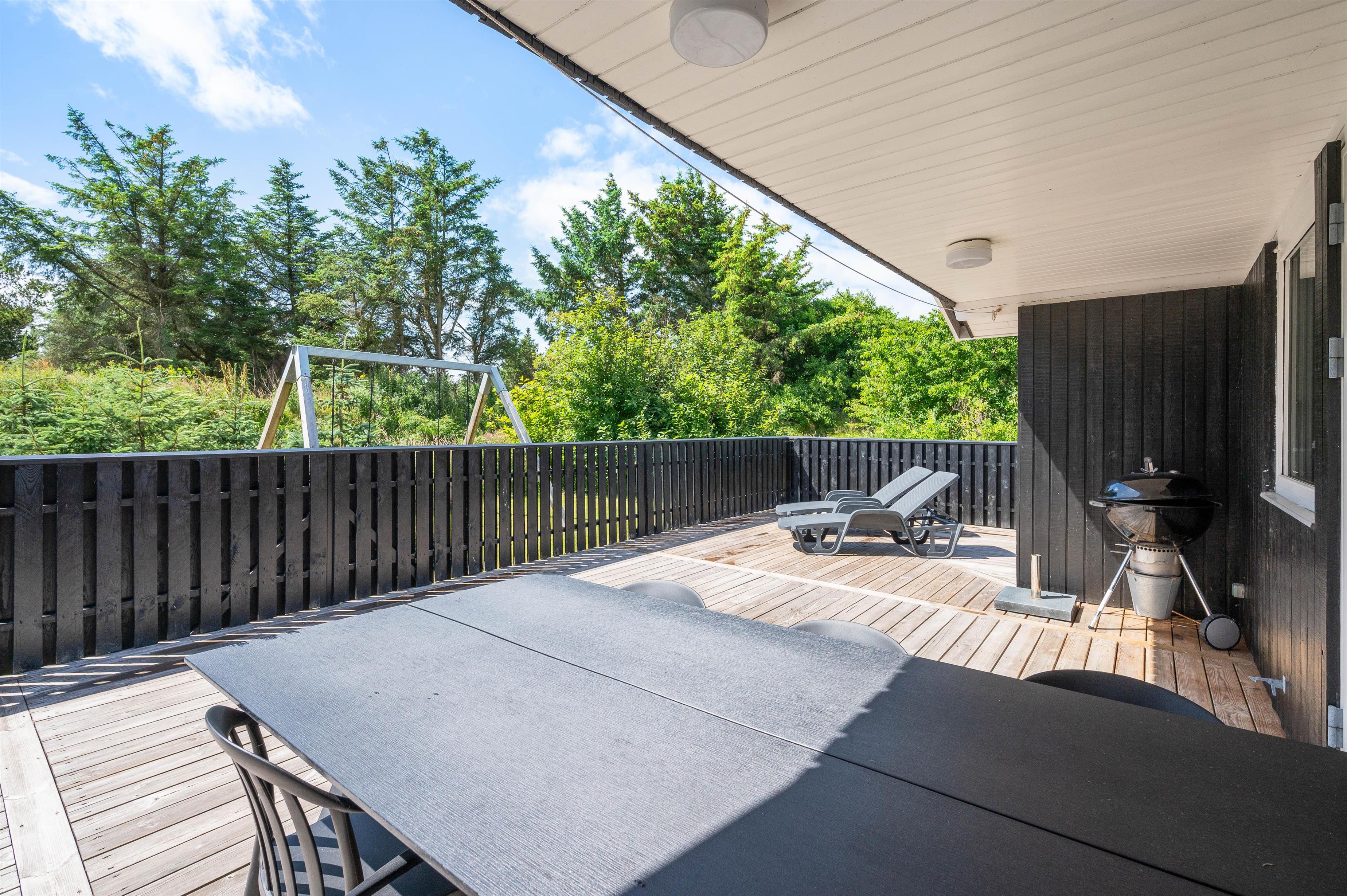 Sommerhusets terrasse er også lukket af, så I kan roligt lade børnene lege uden, at de på egen hånd går på opdagelse i området. Hvis vejret ikke ligefrem skriger grillvejr, er der ingen undskyldning for ikke at grille, da terrassen er delvist overdækket og ligger i god læ for vejr og vind. I haven finder I også et gyngestativ, og sommerhuset er derfor ideelt til børnefamilien, som ønsker en ferie, hvor I kan slappe af.