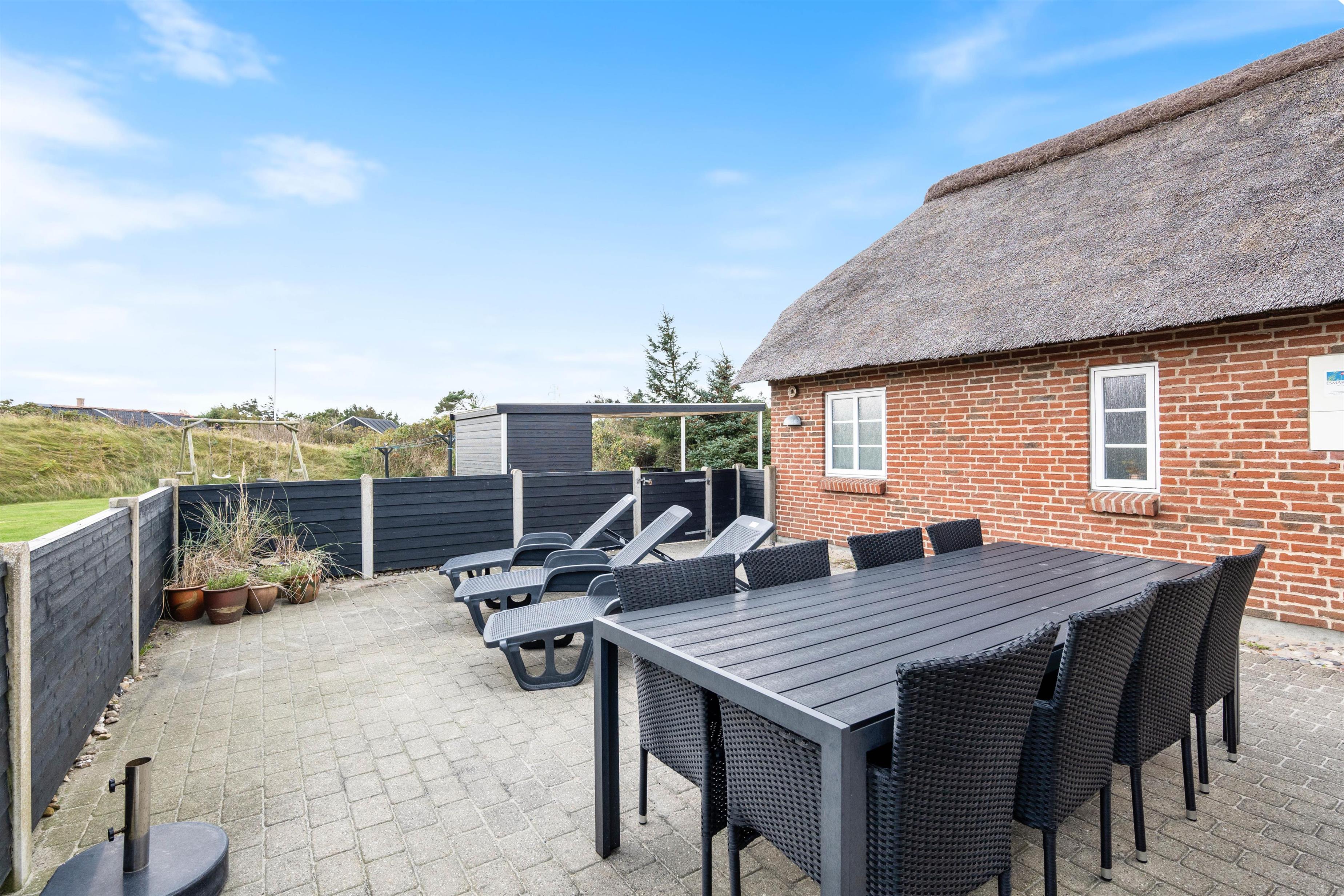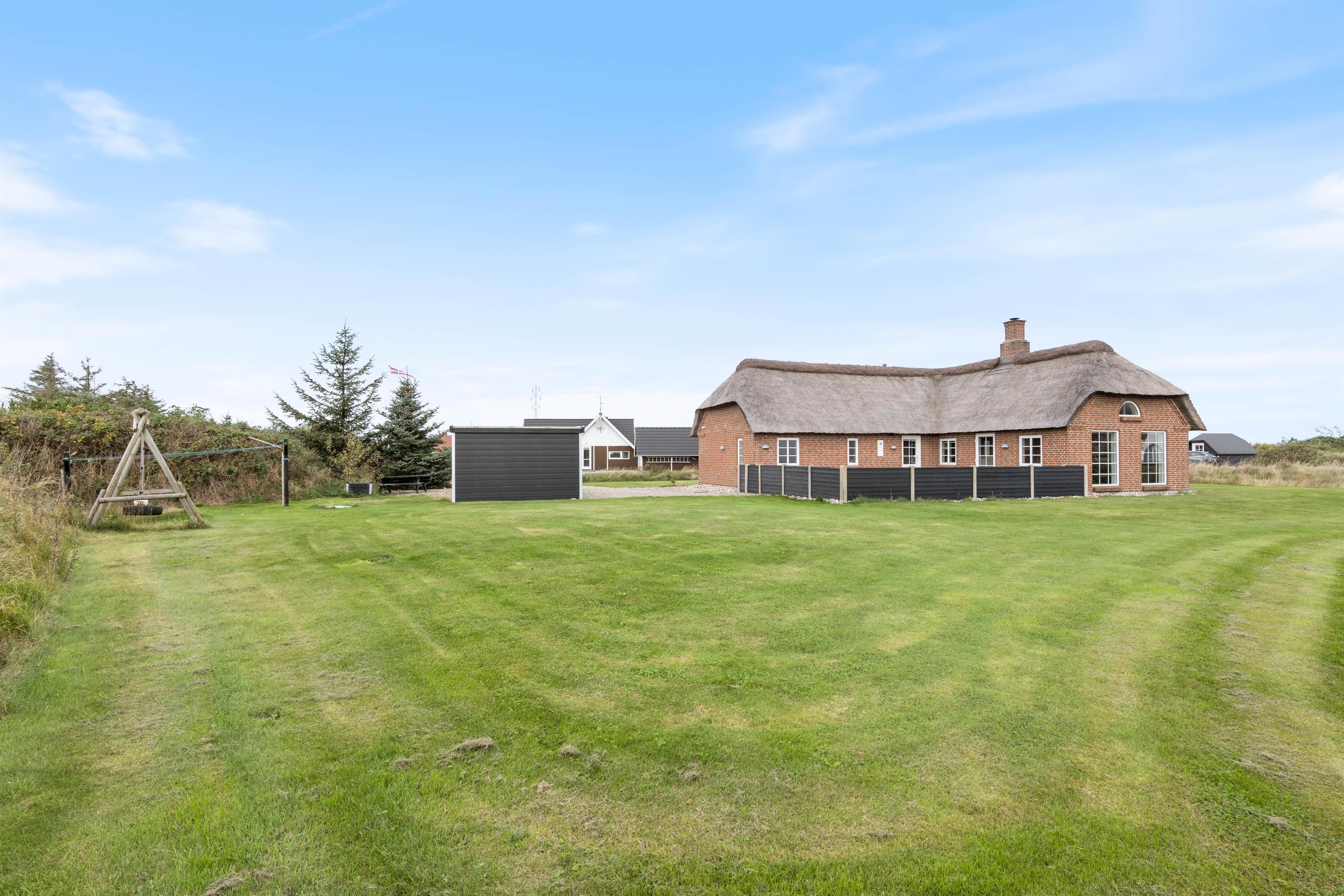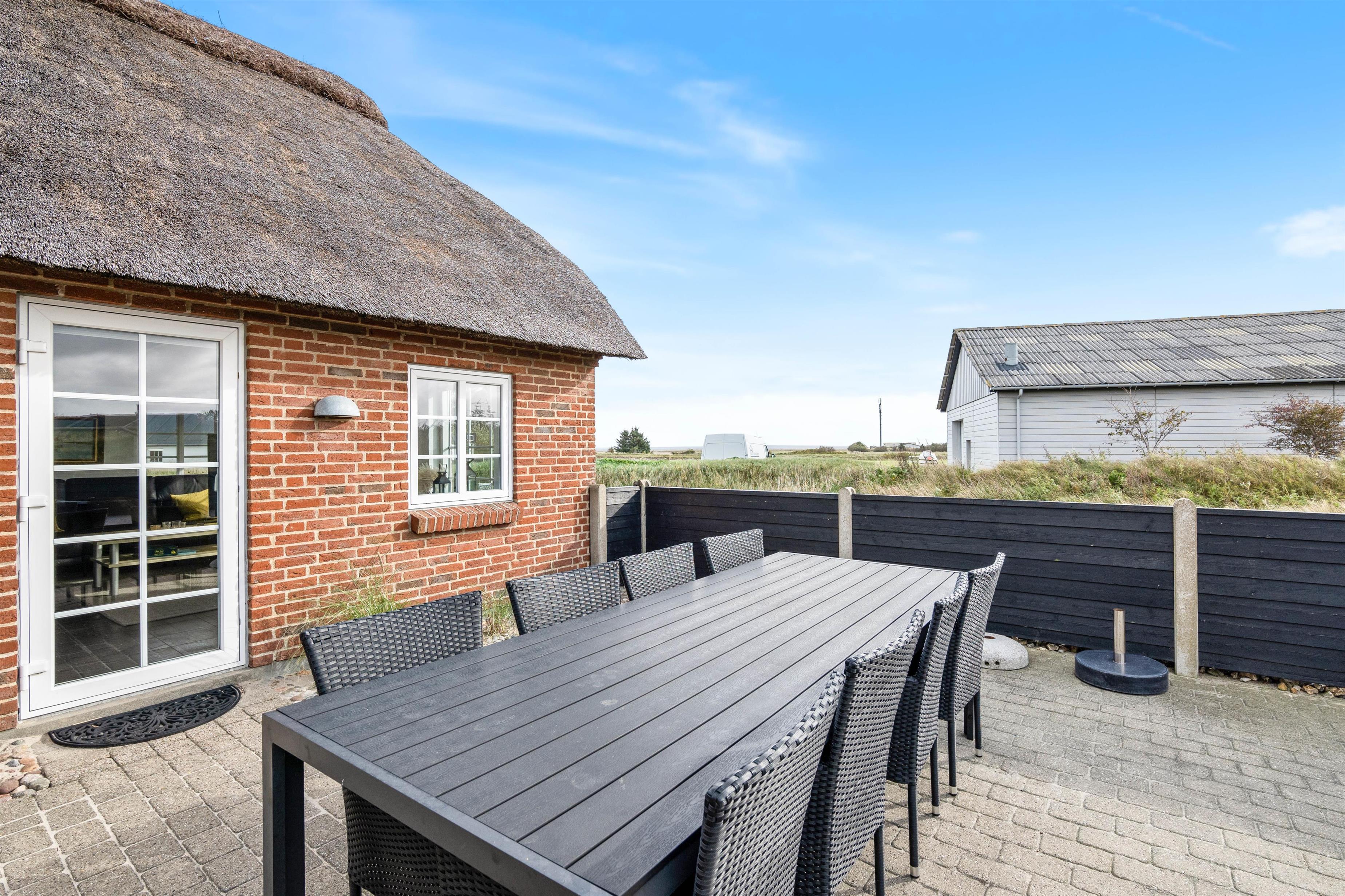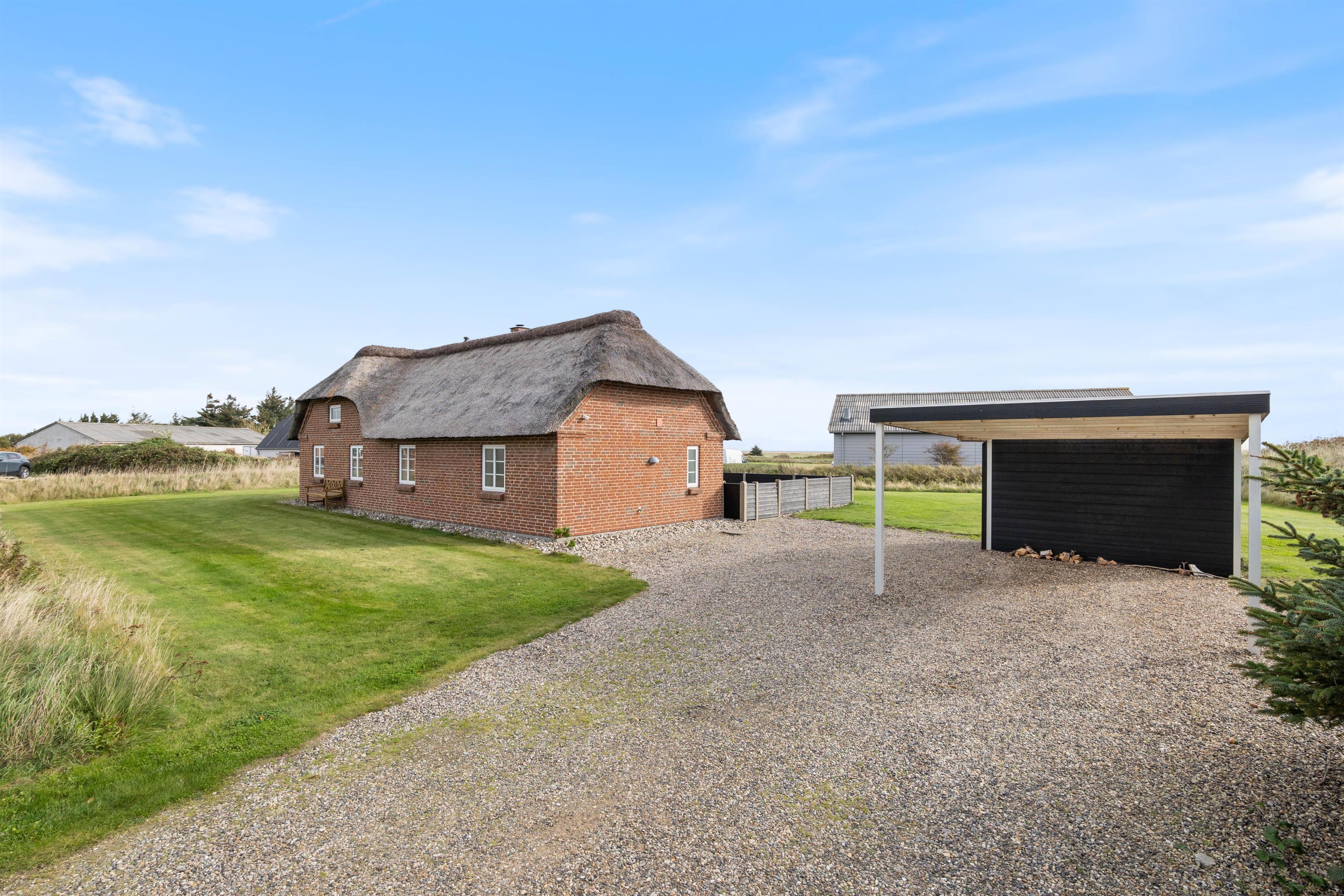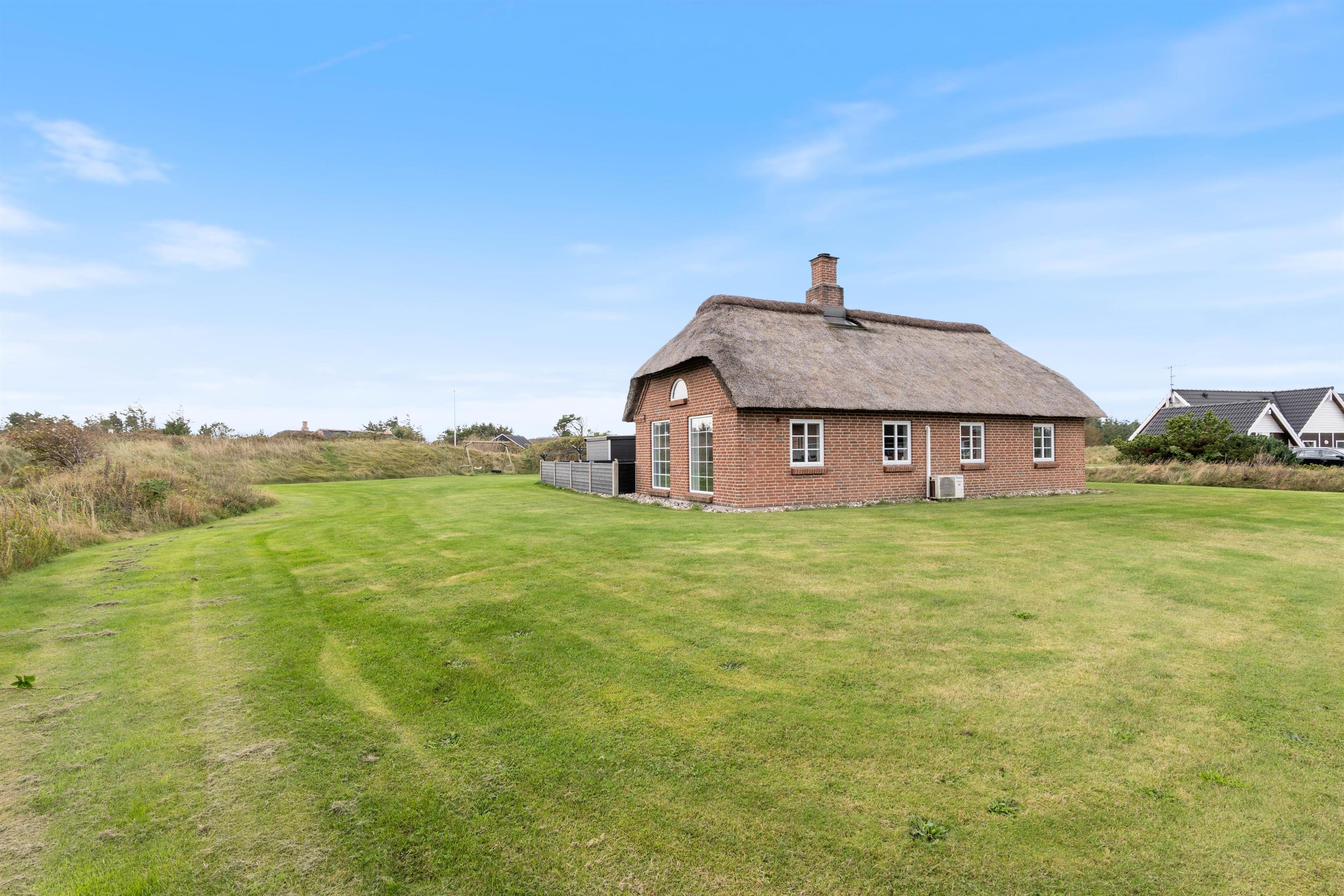 Et lækkert feriehus fra 2006 i Klegod, som kan danne en dejlig ramme om en god ferie året rundt. Det er opført i mursten og med stråtag, og den gode isolering sørger for, at huset er lunt i de køligere perioder og køligt i varmere perioder.