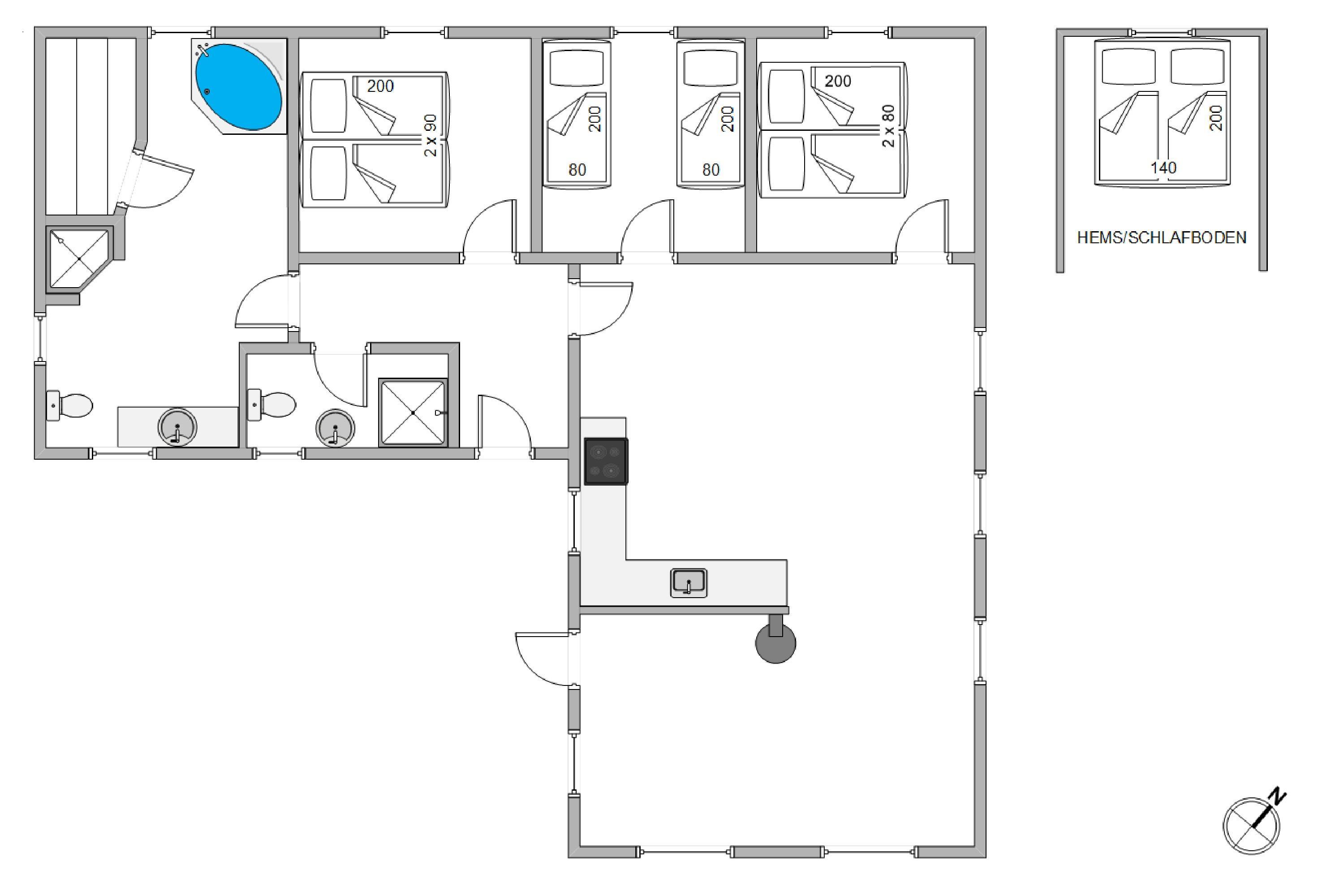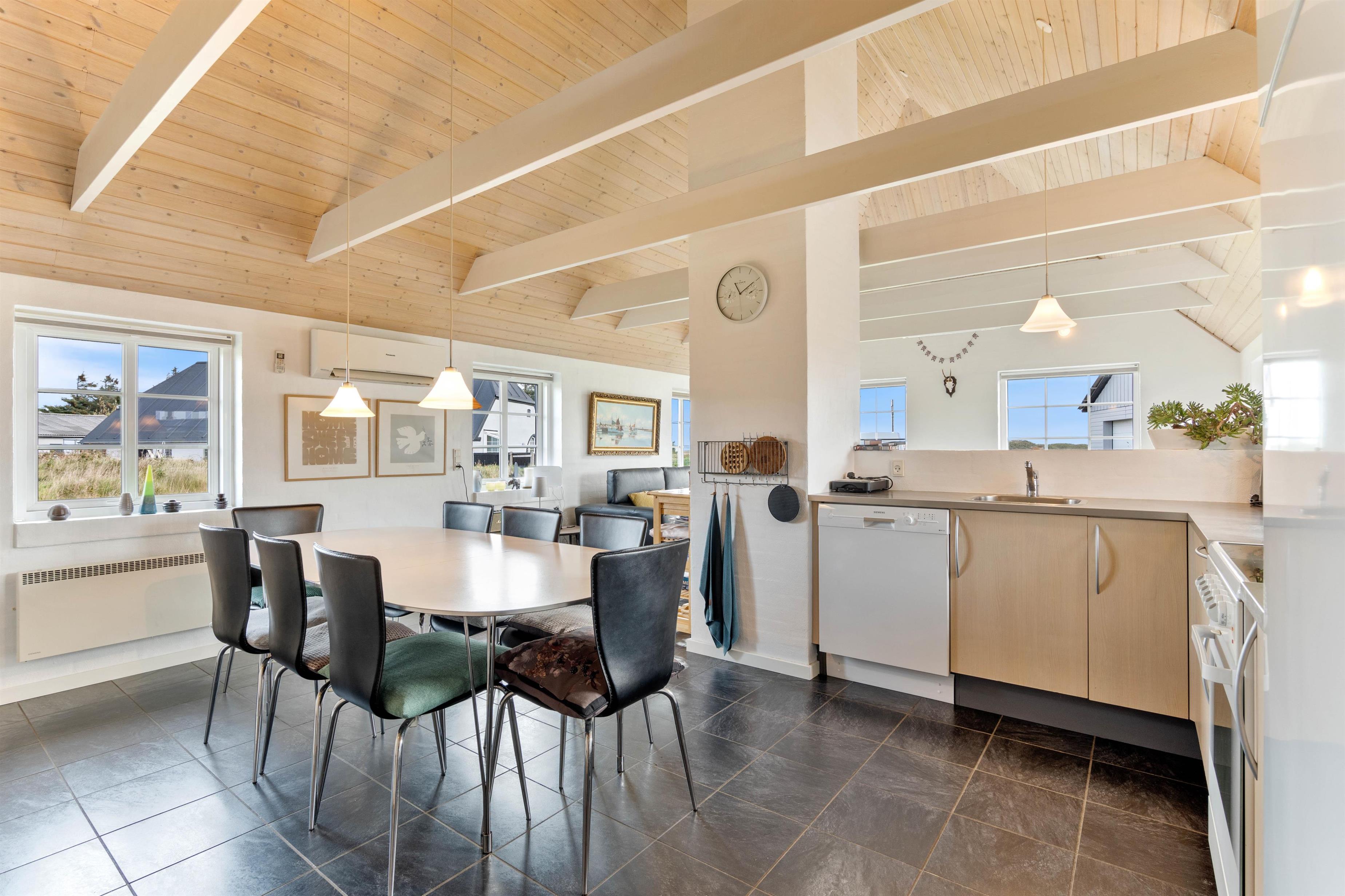 Hvis børnene ønsker at være for sig selv eller spille spil, mens de voksne snakker, er hemsen helt ideel. Huset har praktiske klinkegulvemed gulvvarme i køkken og stuen, så her er det ingen sag at have børn med. Den flotte brændeovn skaber både en god varme og masser af hygge i stuen, og efter en tur til havet er der dømt rigtig ferie med den tændt og god musik i baggrunden.