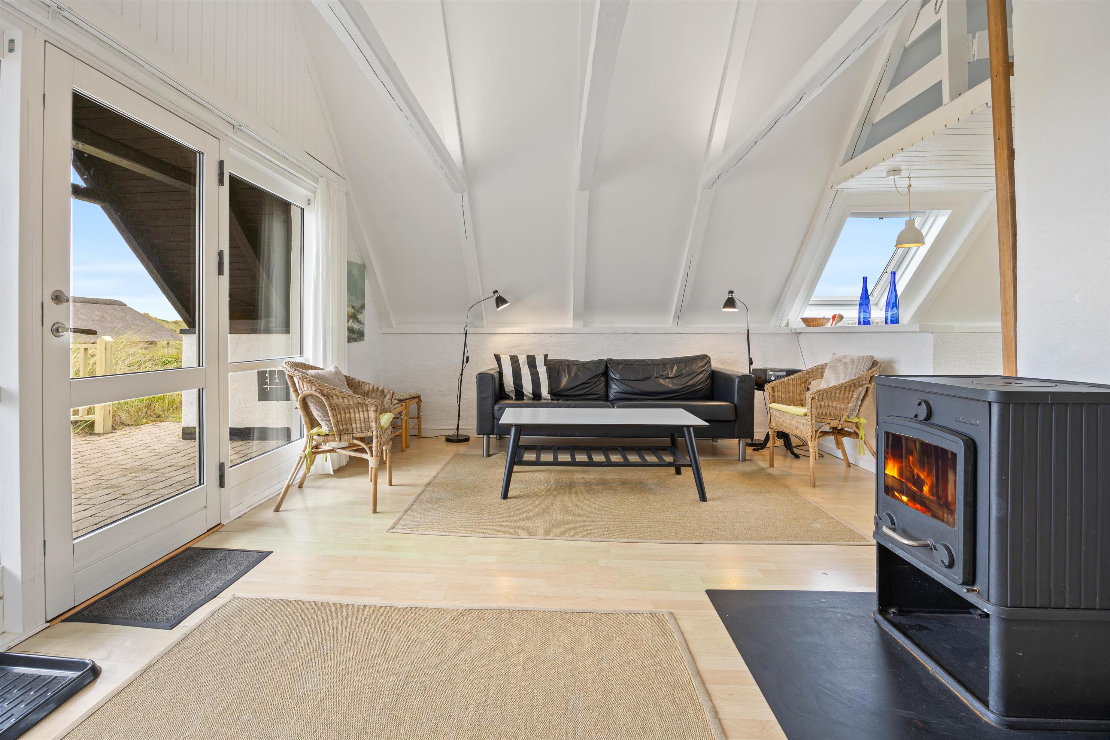 Midt i det smukke klitlandskab finder I dette hyggelige sommerhus. Her kan I holde en romantisk ferie for to i lyse og åbne omgivelser, med brændeovn og ikke mindst en fantastisk beliggenhed og udsigt ud over det fredede klitareal.