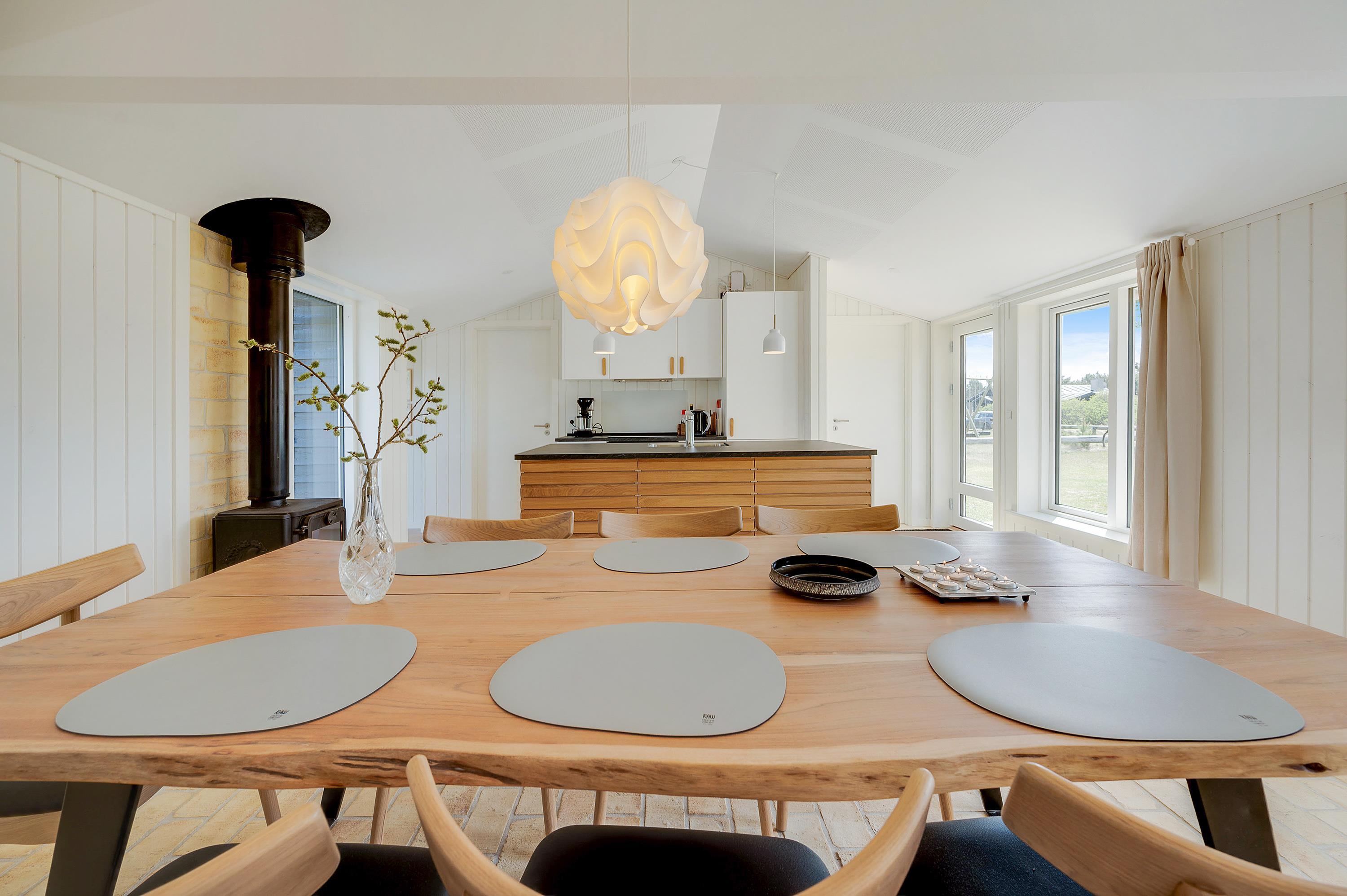 En energivenlig varmepumpe sørger for gode temperaturer i sommerhuset til lave omkostninger. På badeværelset, i stuen og på soveværelserne har I gulvvarme, så der er ingen risiko for at fryse fødderne. Vil I have ekstra varme og stemning, står brændeovnen klar til at hjælpe med det.