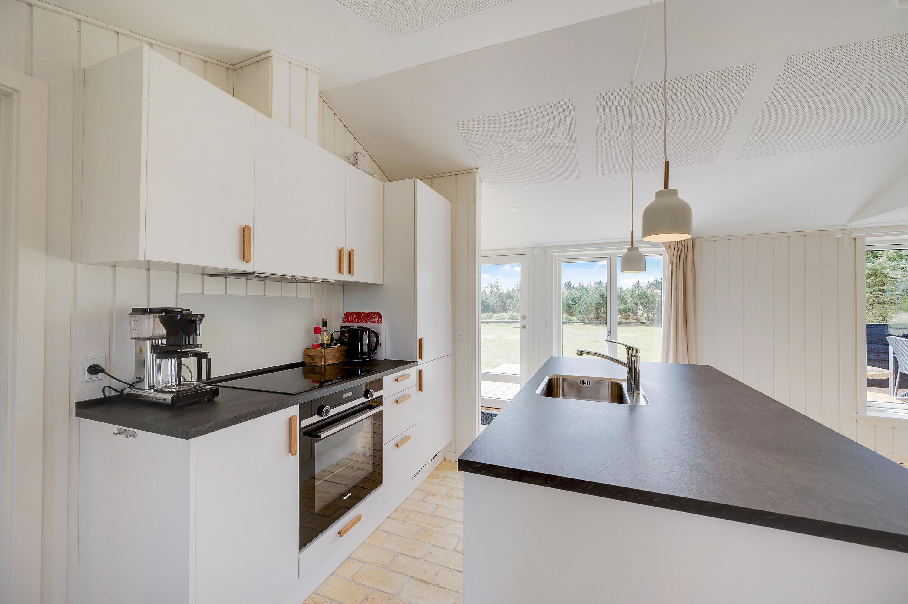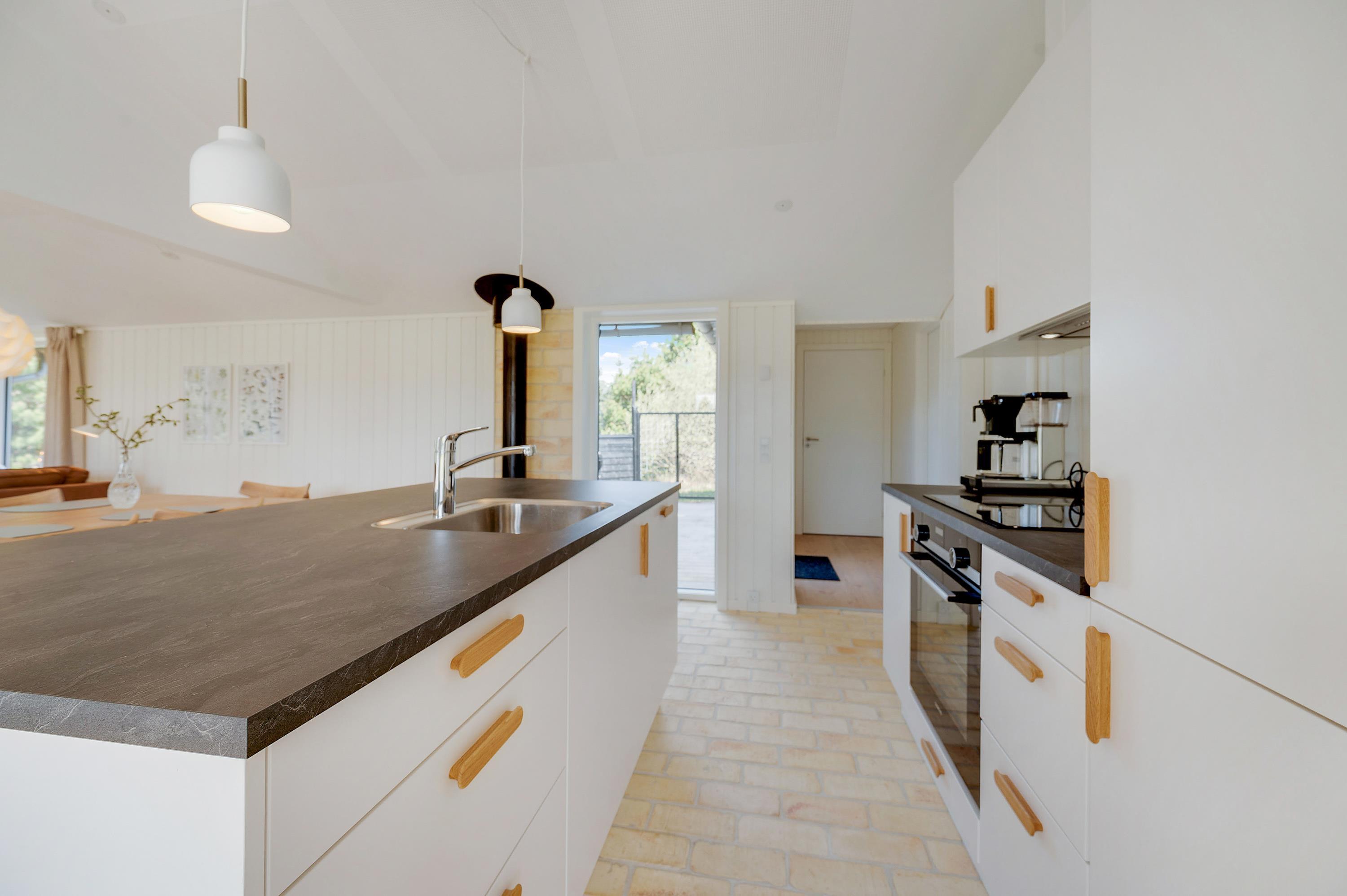 Trænger I til at slappe lidt ekstra af på jeres ferie, er det sommerhusets badeværelse, I skal søge mod. Fra badeværelset kan I træde ind i saunaen, hvor I rigtig kan læne jer tilbage i varmen og slappe fuldstændig af – det er helt perfekt efter en strandtur.