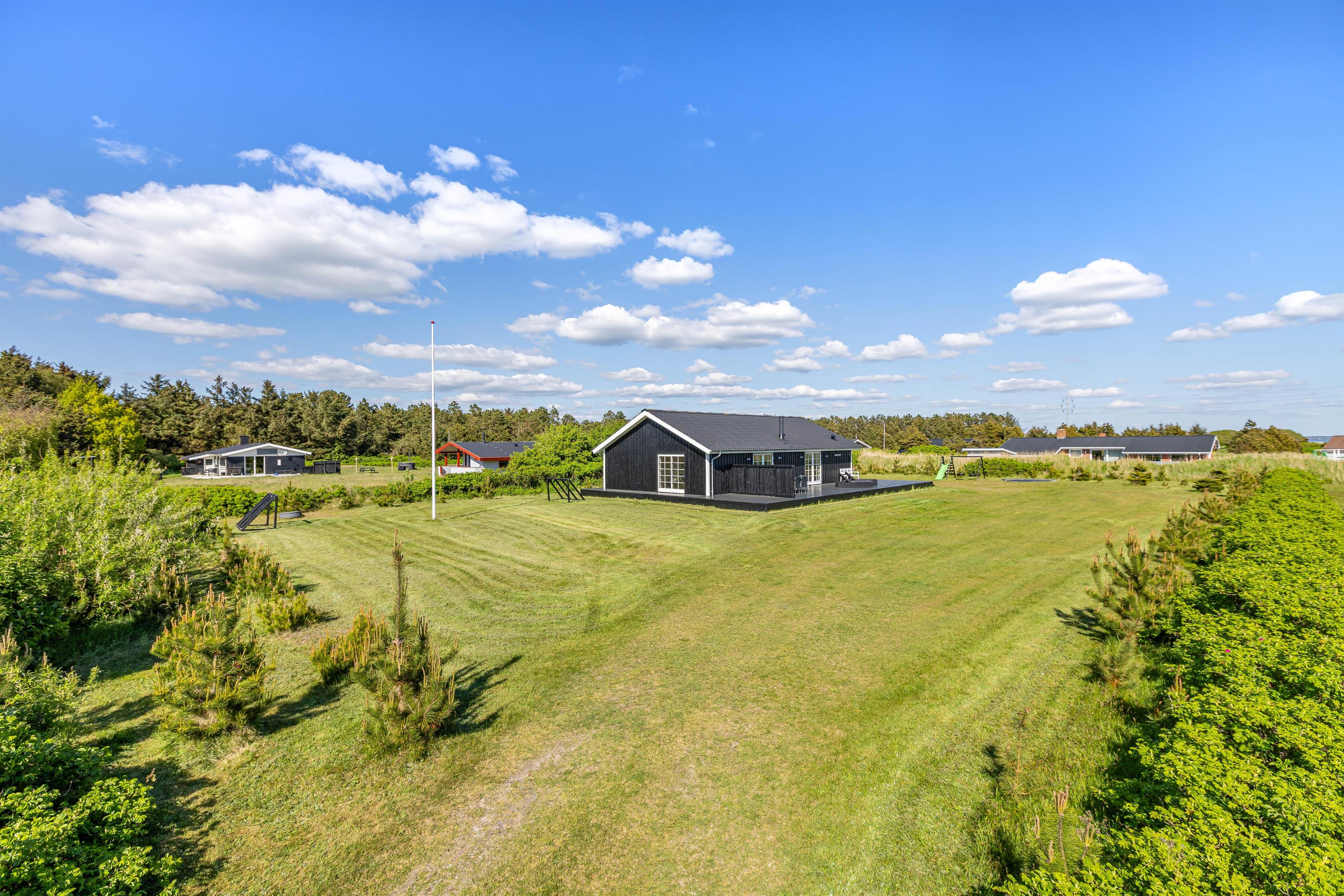 På Lyngsletten 7 i Klegod finder I dette moderne, lystindrettede sommerhus til 6 personer. Huset er bygget i 2019 og skaber de bedste rammer for jer på jeres ferie med både sauna, spa, brændeovn og masser af muligheder for udendørs leg til børnene.