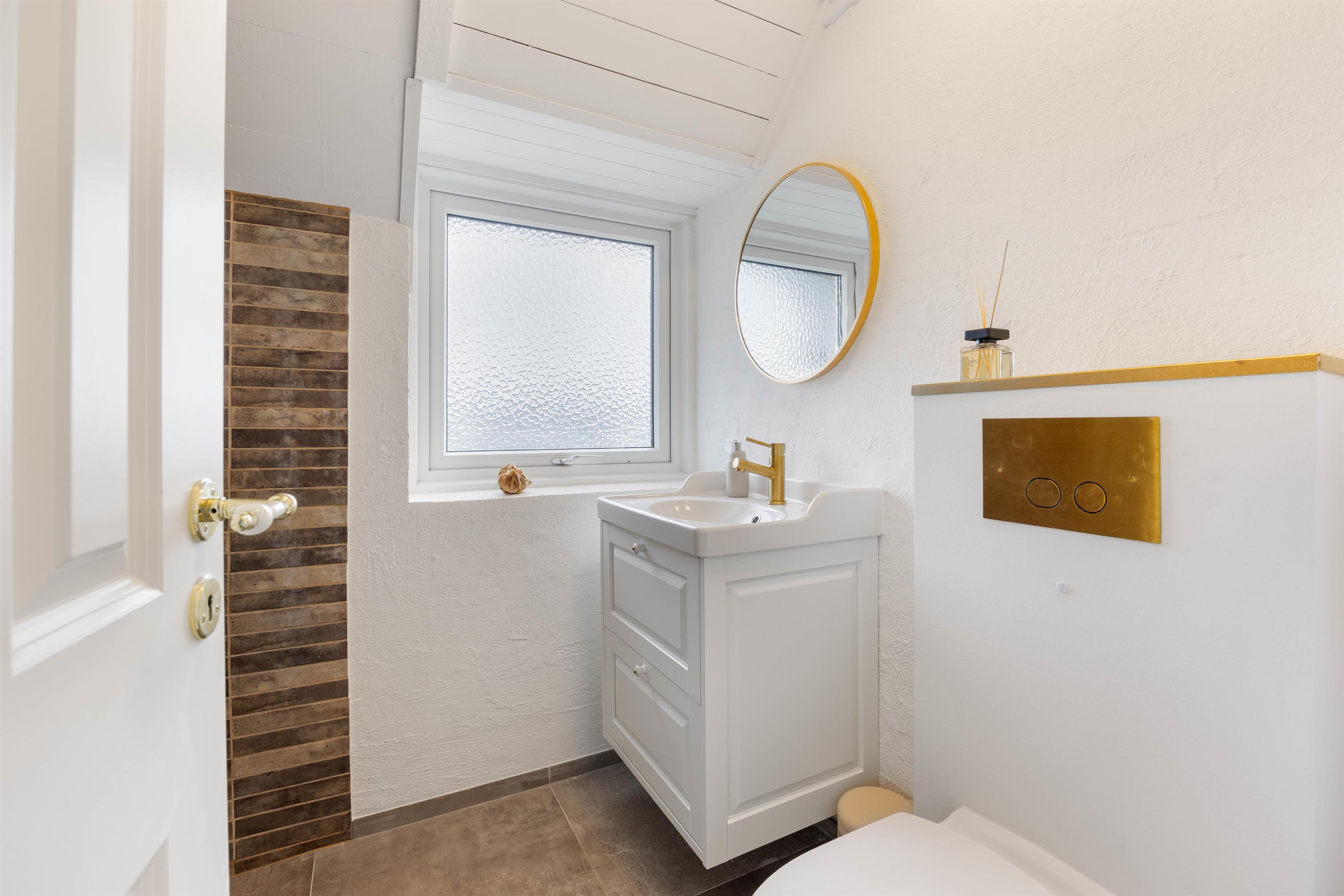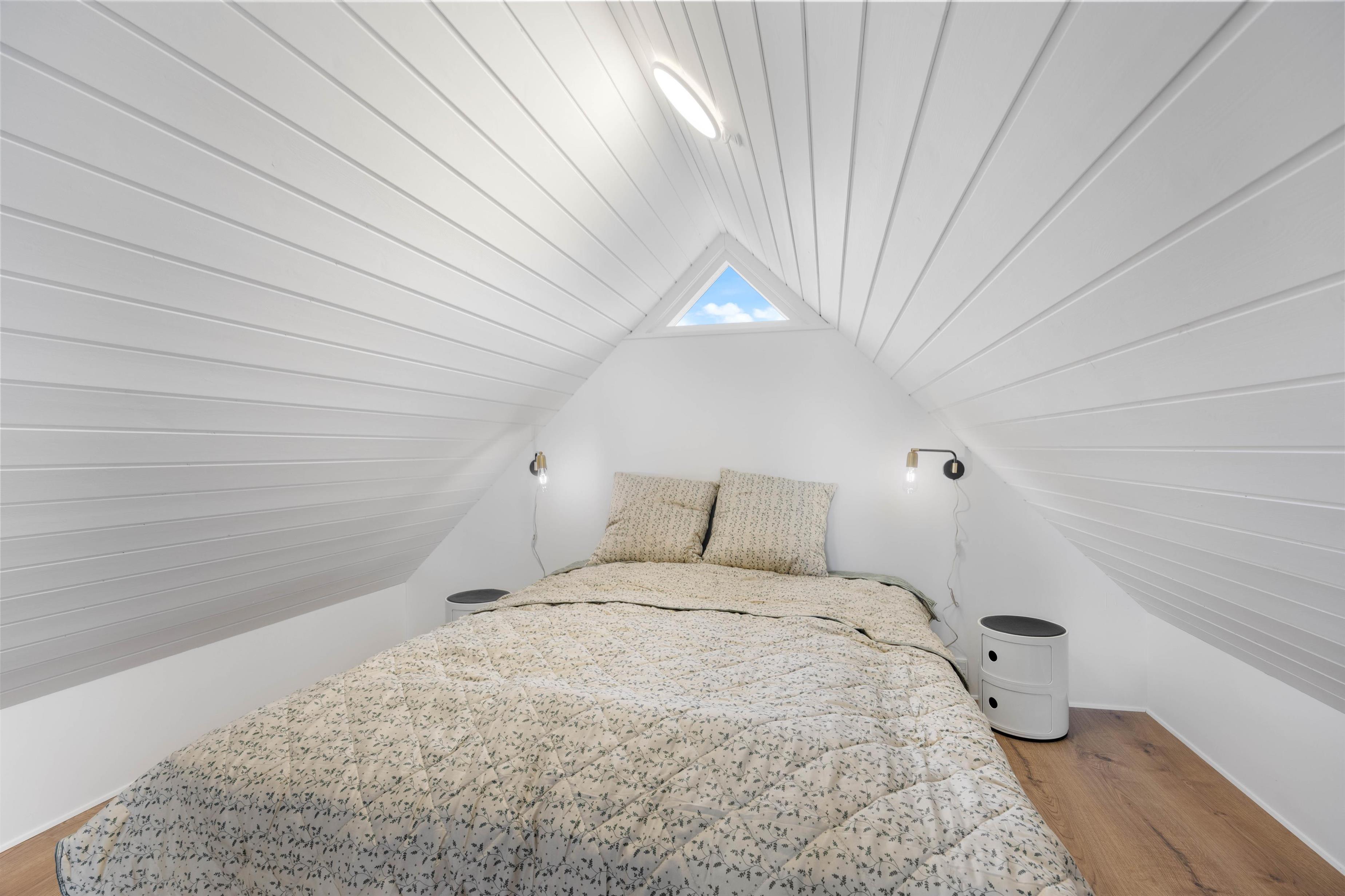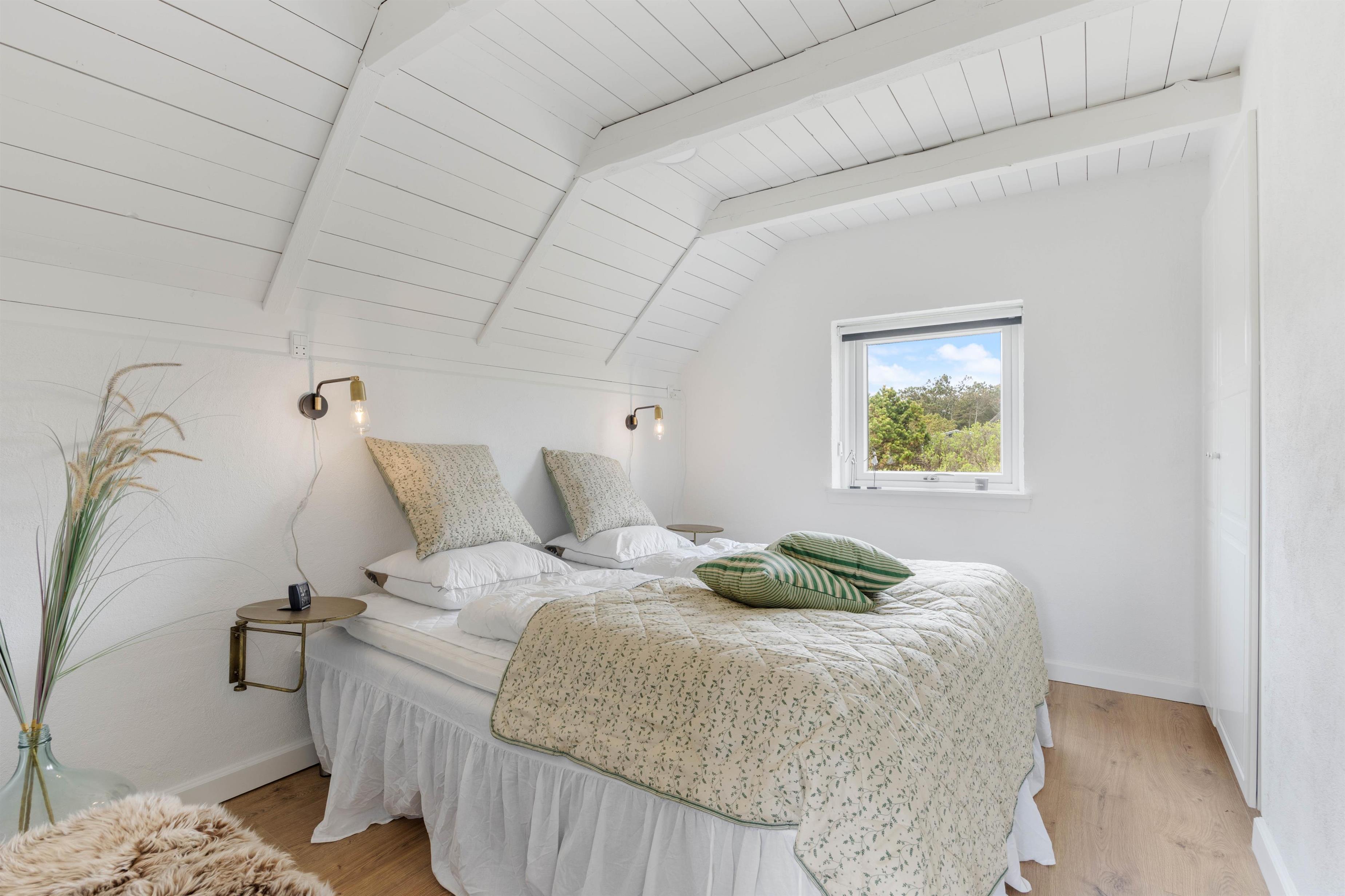 Sommerhusets 6 sovepladser fordeler sig på 2 hyggelige soveværelser og hemsen. Derudover er der 1 dejligt badeværelse.
