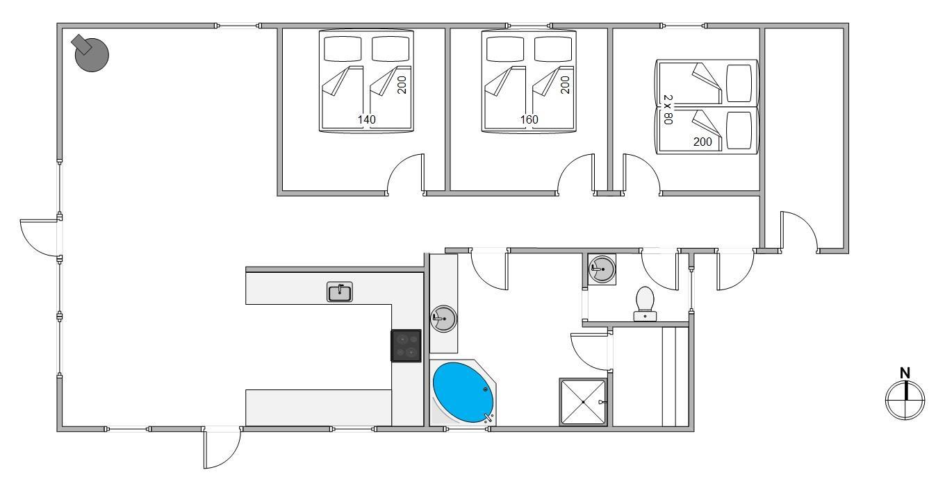 I sommerhuset finder I et lyst og åbent køkkenalrum, hvor hele familien kan samles. Her er der plads til, at I kan sætte jer ned og spille spil, se en god film eller lave aftensmad sammen med hele familien i køkkenet. Efter aftensmaden skal I ikke bruge lang tid på de praktiske gøremål, da sommerhuset både har opvaskemaskine, vaskemaskine og tørretumbler.