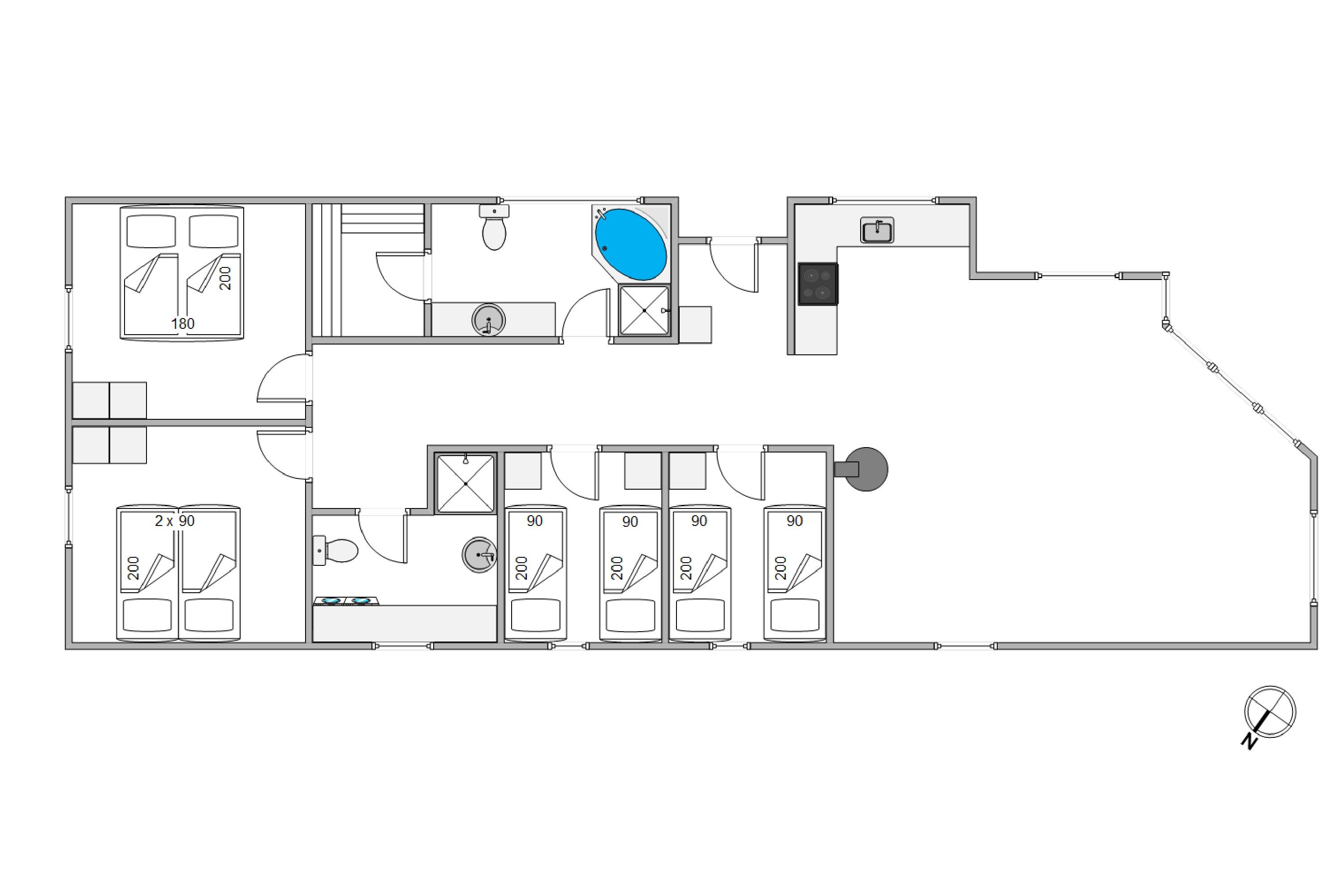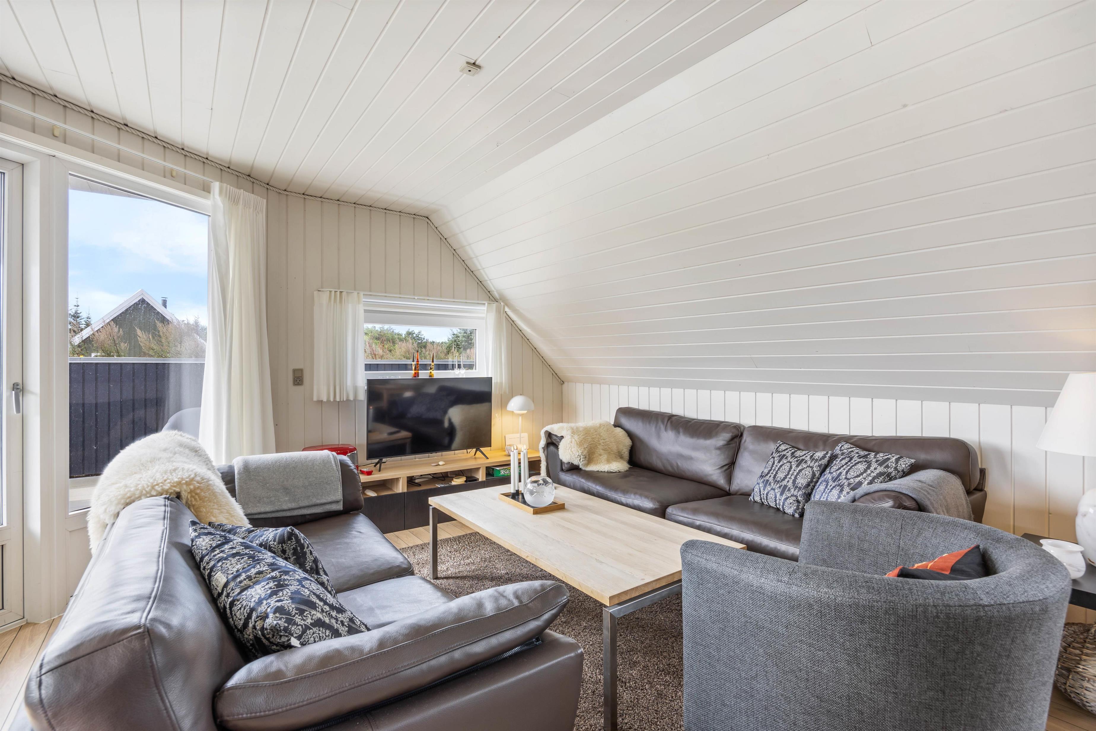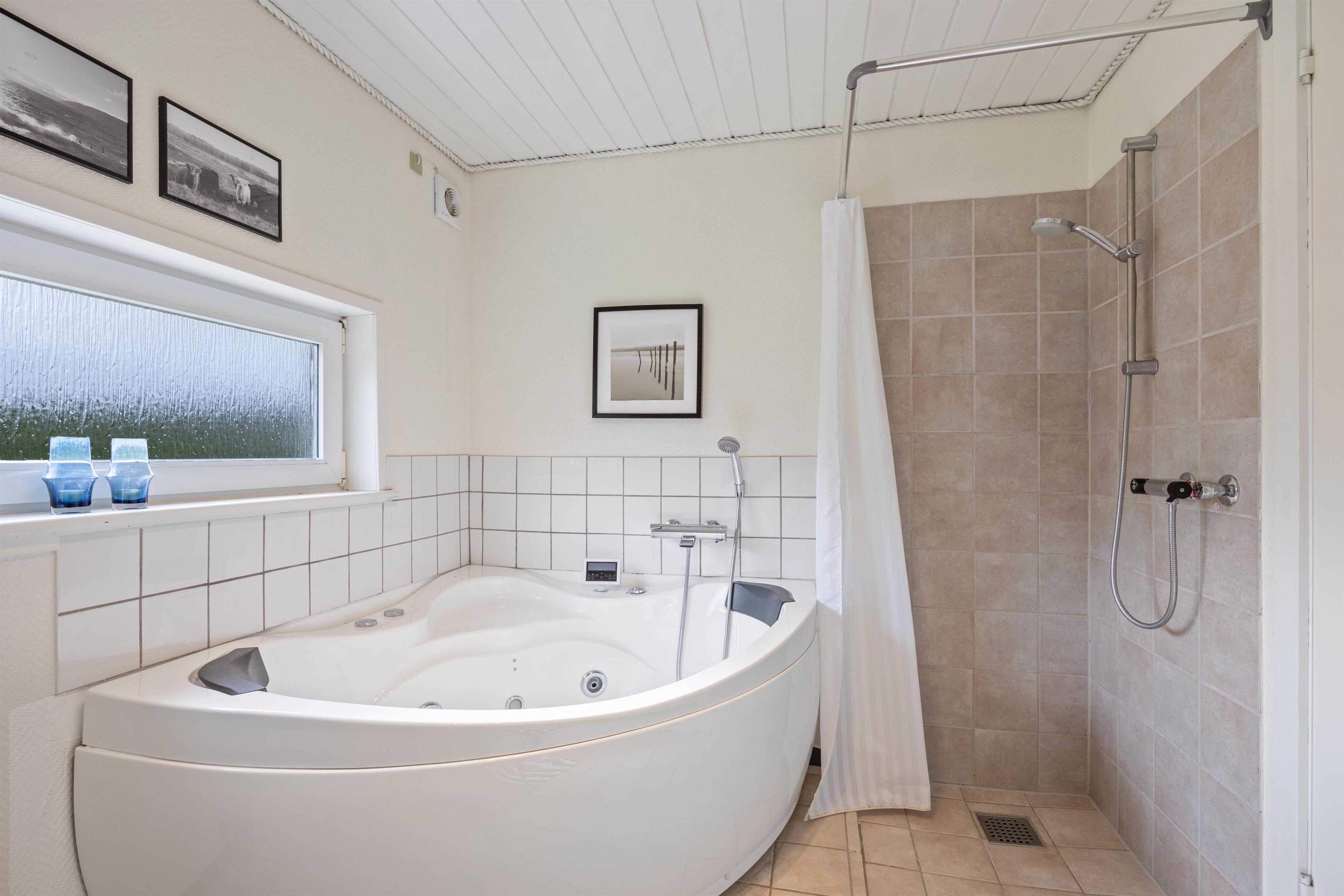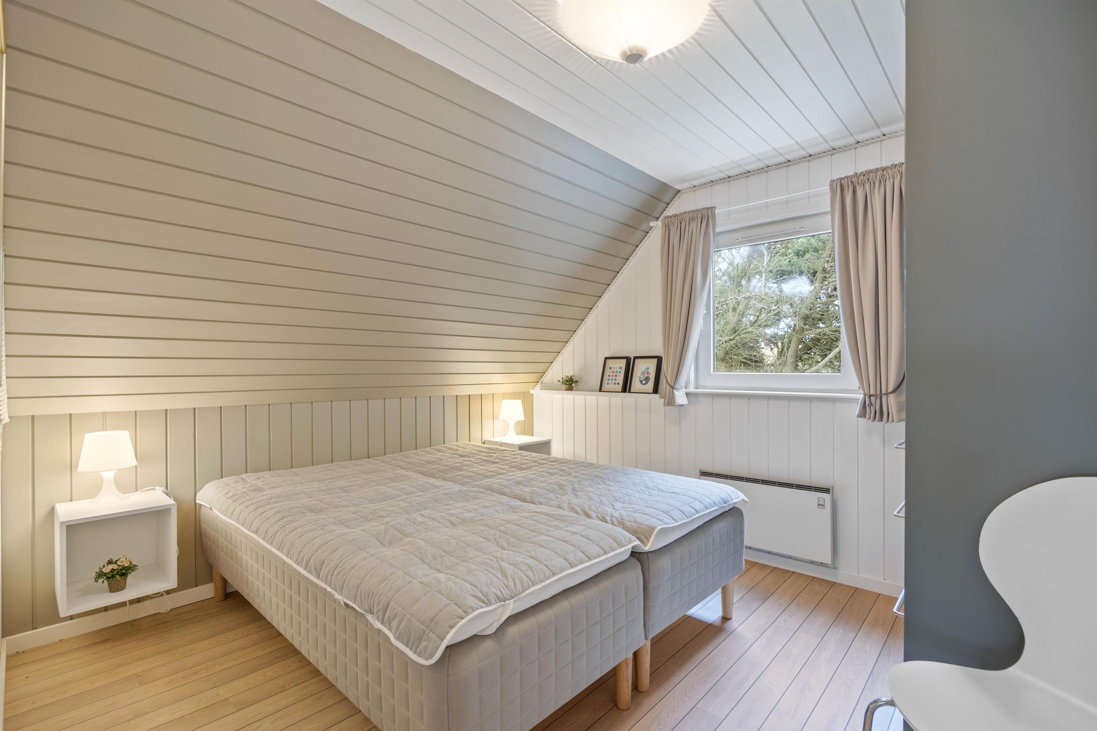 Det hyggelige og charmerende sommerhus er klassisk indrettet. Med en personlig og hjemlig stil, vil I altid føle jer godt tilpas. Heraf er der 8 sengepladser fordelt på 4 værelser, hvor jeres familie kan lade op til den næste dags aktiviteter. Med 2 dobbeltsenge og 4 enkeltsenge kan I nyde en komfortabel nat. For at fuldende jeres afslappende og rolige ferie er der installeret et indendørs spabad og sauna på det ene af badeværelserne. Her kan I nyde en behagelig varme – også fra gulvvarmen.