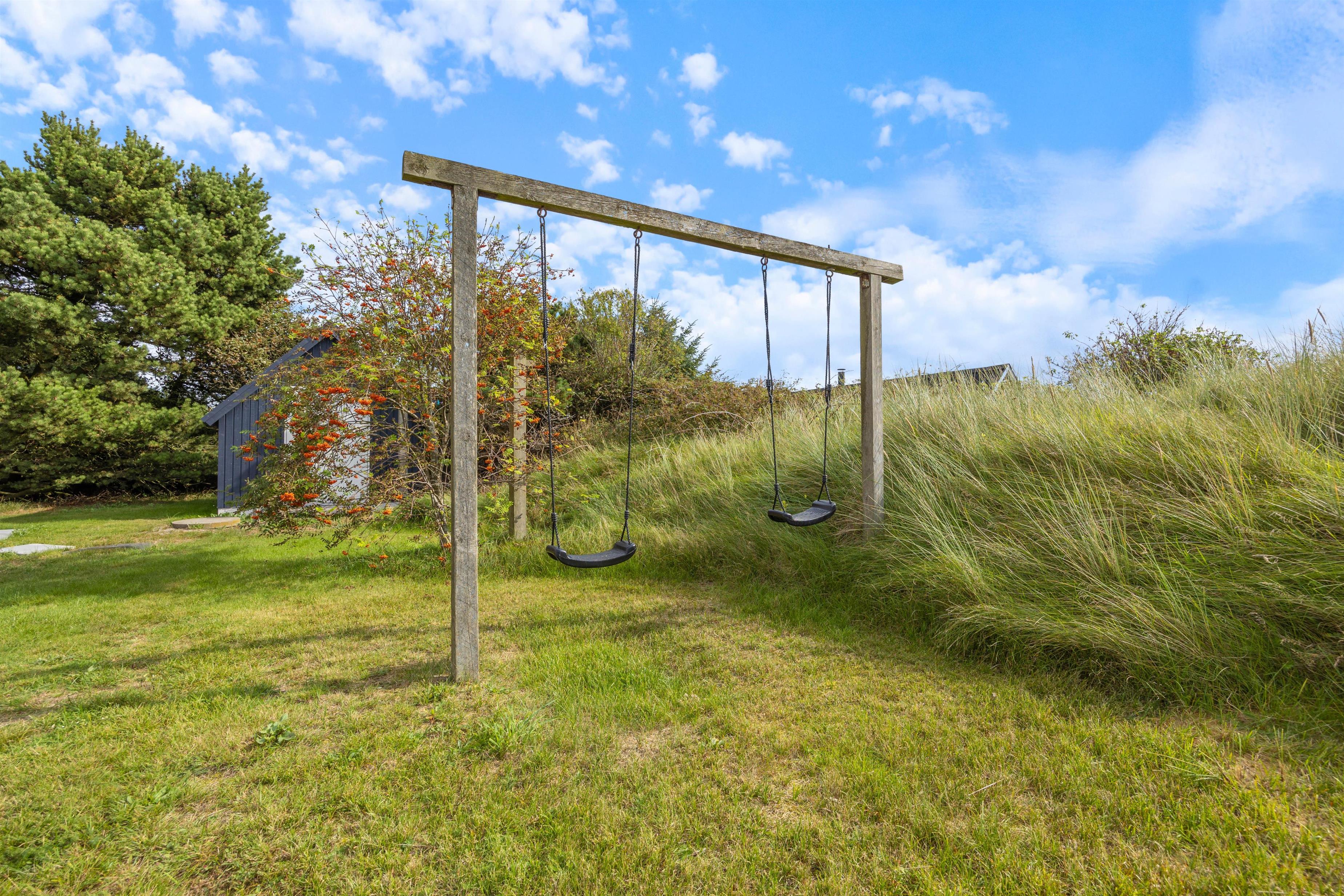 Lækre grillmåltider fra gasgrillen, afslappende eftermiddage i havemøblerne eller sjov og leg for børnene med gyngestativ. Alt dette tilbyder udearealet på Opstrupsvej 8, hvor I med garanti kan finde på mange flere sjove ting af lave. F.eks. er kongespil eller stangtennis en oplagt mulighed.