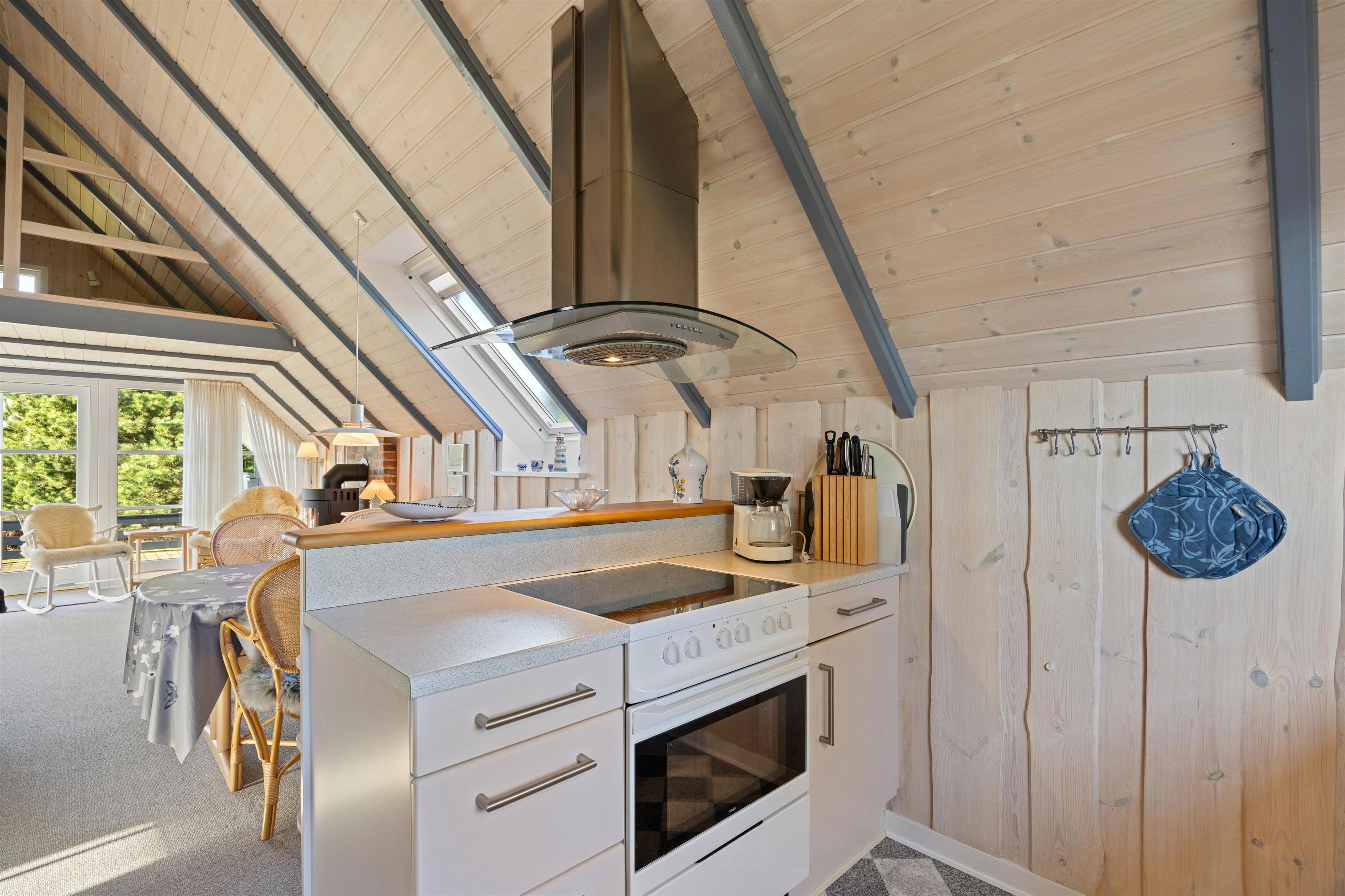 I køkken/alrummet er der plads til at sidde og spille spil eller læse en god bog, imens der bliver lavet dejligt mad i køkkenet.