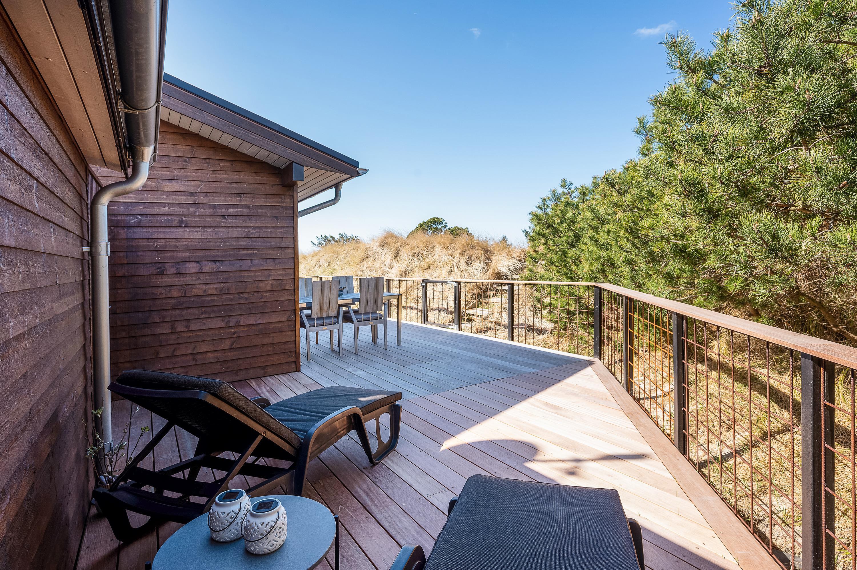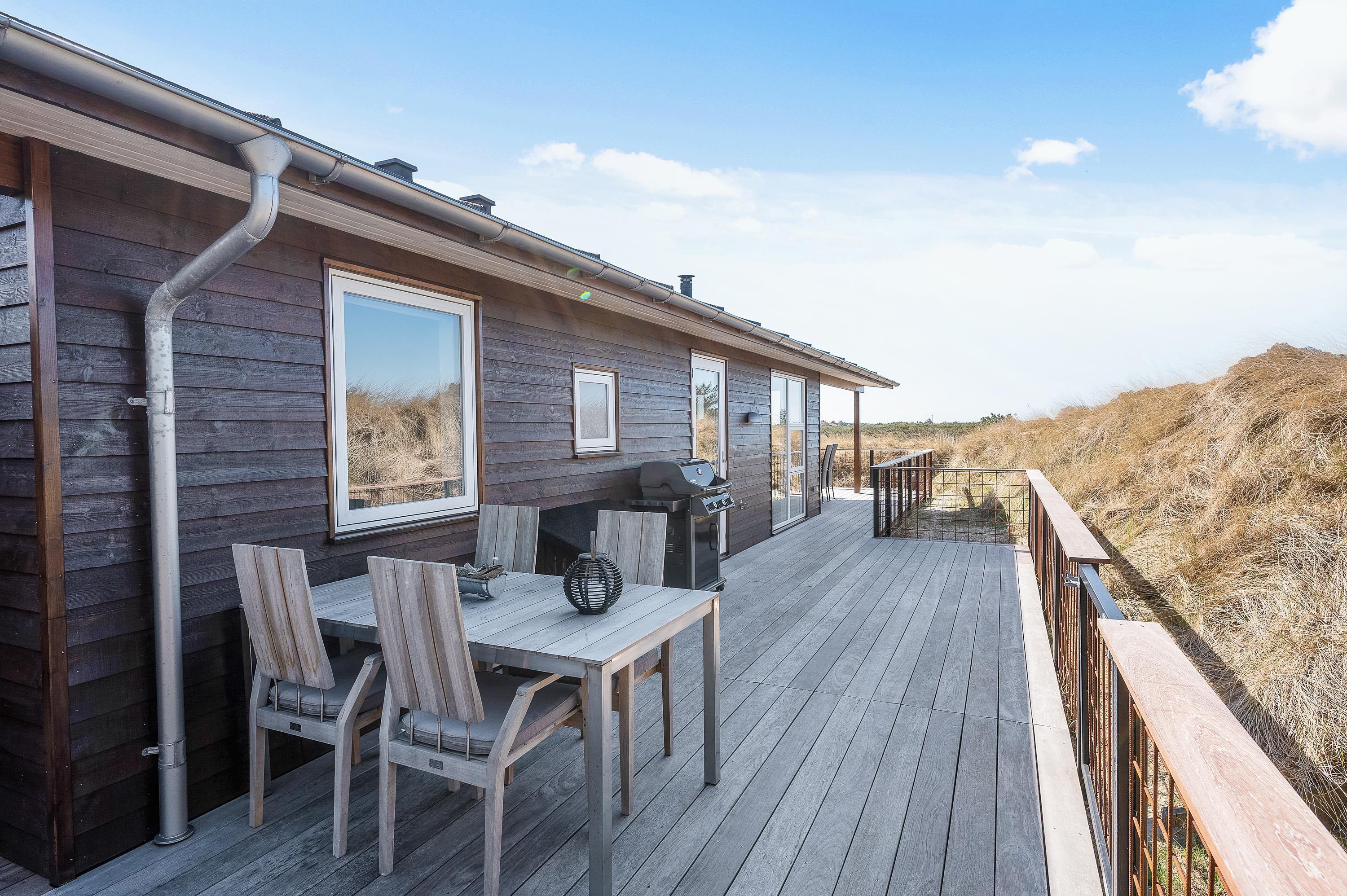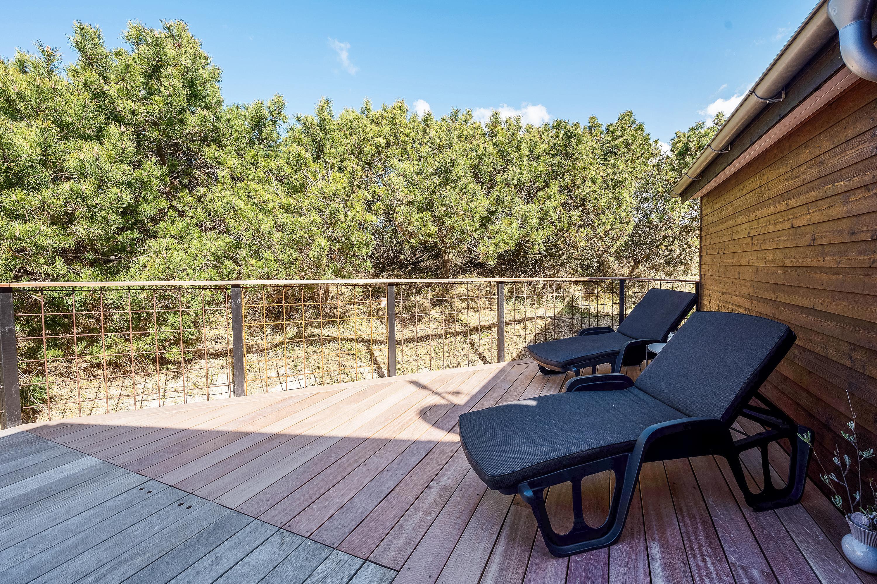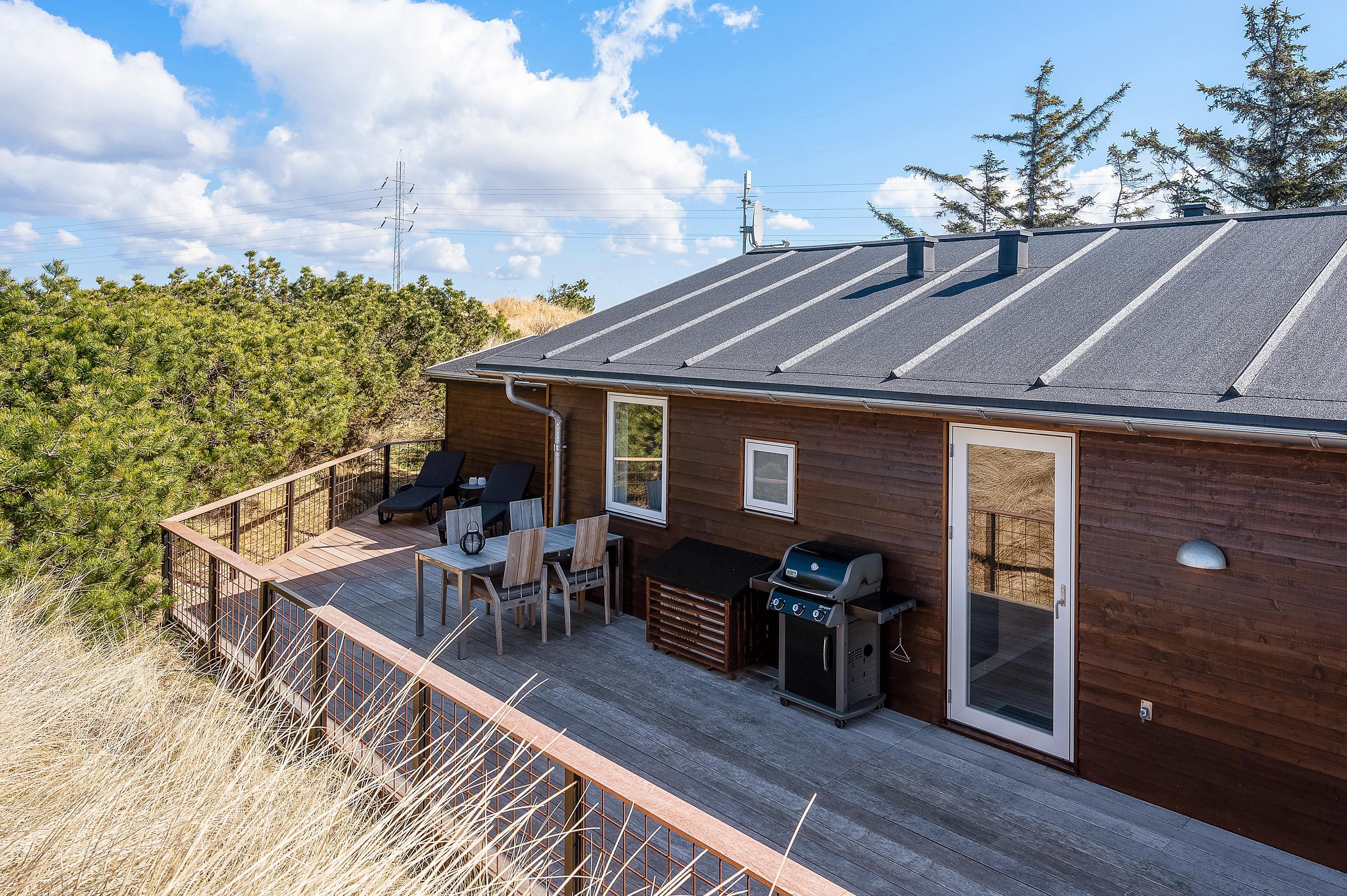 Mod sydvest er terrassen delvist overdækket og er ideel til hyggelige grillaftener med familien. Derudover er terrassen også lukket, så hunden kan løbe rundt og lege imens I slapper af i liggestolene med en god bog.
