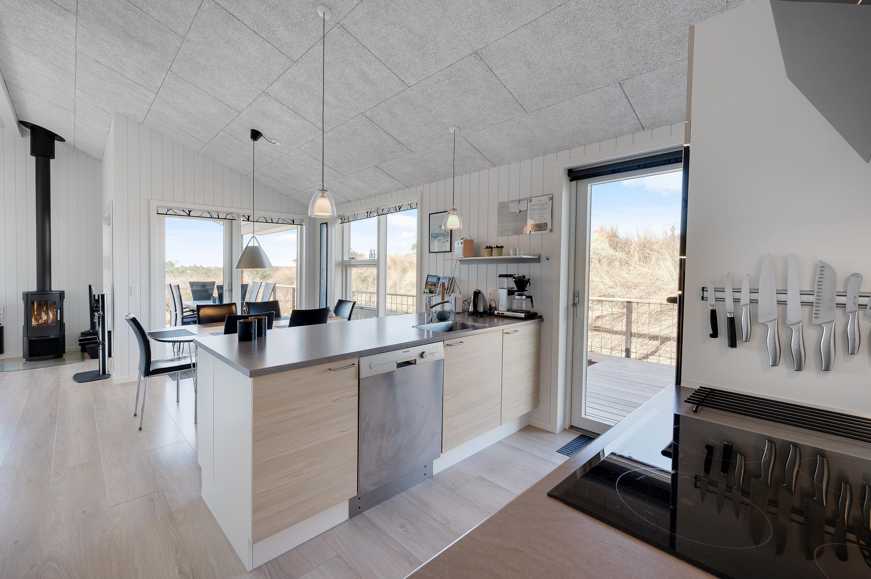 En brændeovn skaber en varm og indbydende atmosfære på kølige aftener, mens en luft til luft varmepumpe sørger for effektiv opvarmning året rundt. I finder også moderne faciliteter som opvaskemaskine og vaskemaskine med tilhørende tørretumbler, hvilket gør det nemt at tage sig af daglige opgaver under jeres ophold.