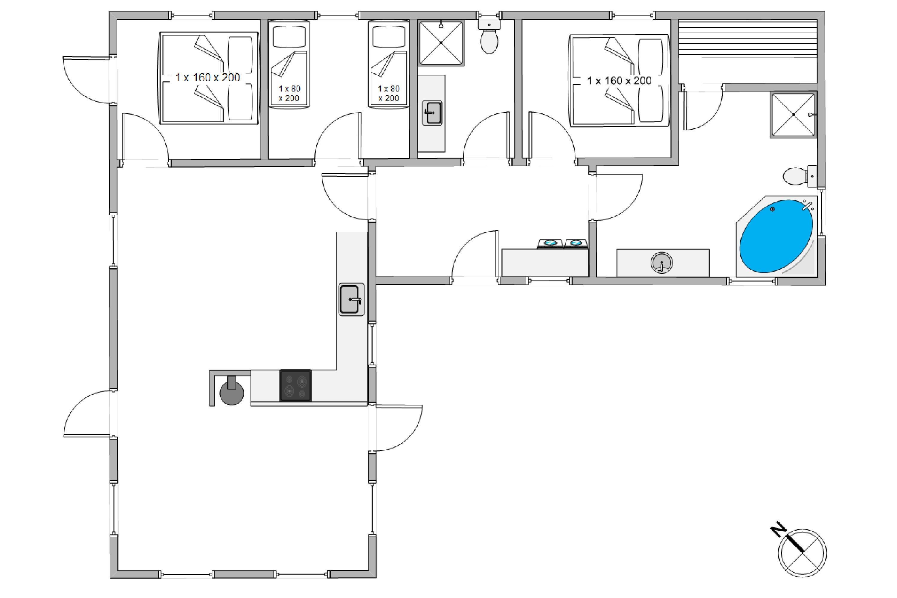 Sommerhuset har 2 dejlige badeværelser, det ene et rigtigt wellnessbadeværelse med både spabad og sauna, og naturligvis gulvvarme.