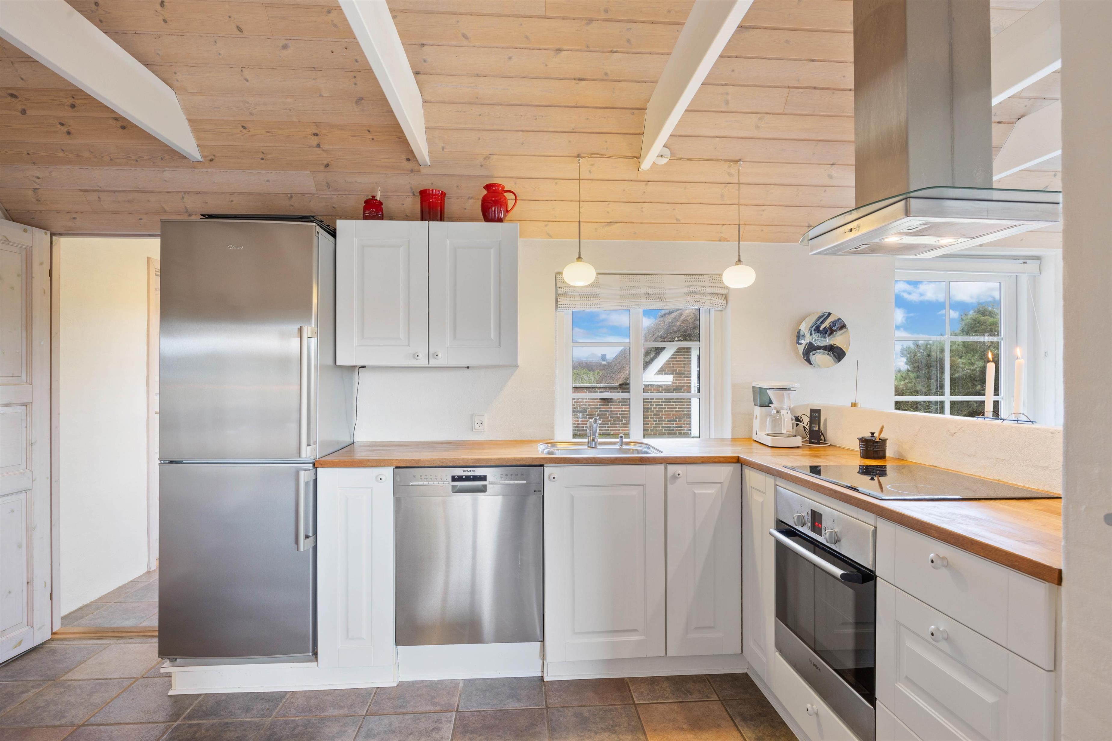 Sommerhuset på Nordsø Ferievej 58 rummer plads til 6 personer. Overalt er der brugt kvalitetsmaterialer, flotte gulve, rustikke vægge og med et loft til kip med synlige bjælker bliver den gamle stil smeltet sammen med det luksuriøse.