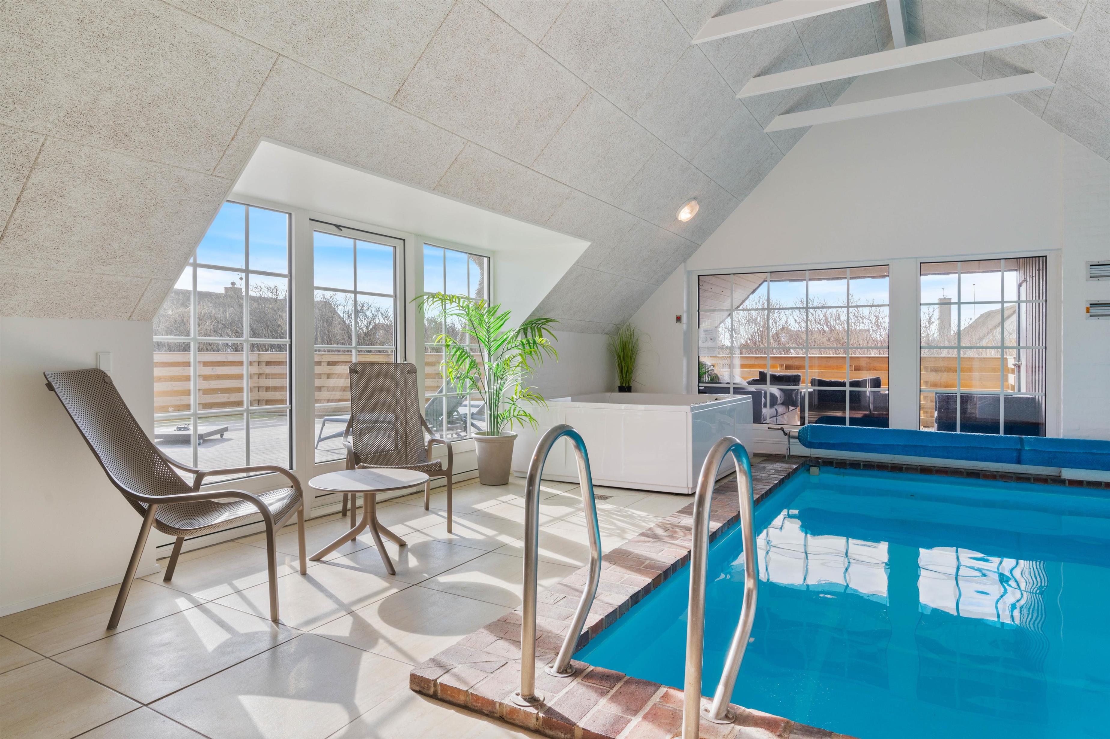 Flere af højdepunkterne i sommerhuset på Kræ Degns Vej 50 finder I i poolrummet. Her står den 20 kvadratmeter store swimmingpool klar til vandhundene, som helt sikkert kommer til at bruge mange underholdende timer på sjov og leg i vandet.