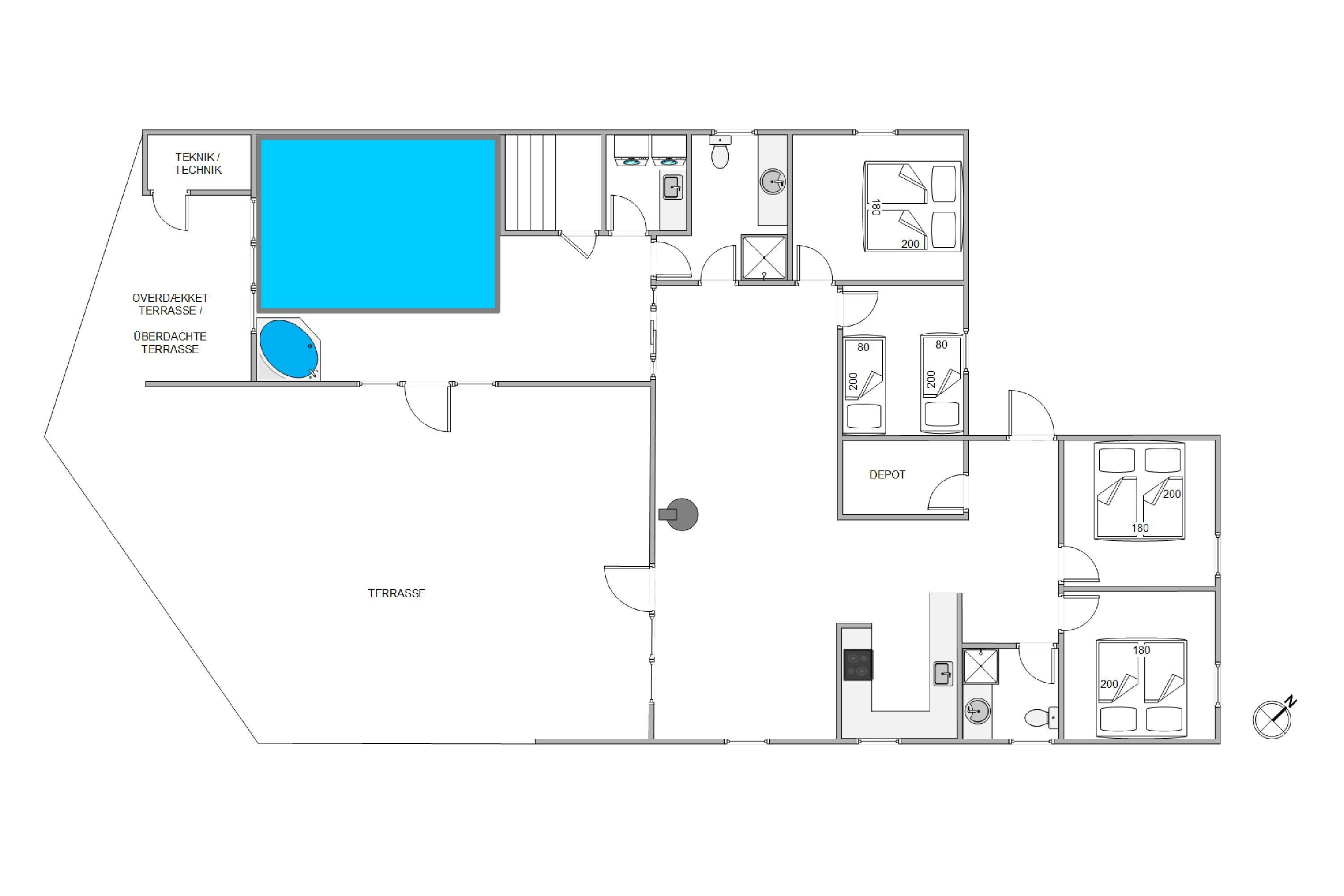 Det 180 kvadratmeter store sommerhus er indrettet med 4 gode soveværelser, hvor I kan samle ny energi efter en dejlig feriedag. Med 2 badeværelser i sommerhuset, der begge har gulvvarme, slipper I for at fryse fødderne og at stå i kø fra morgenstunden.