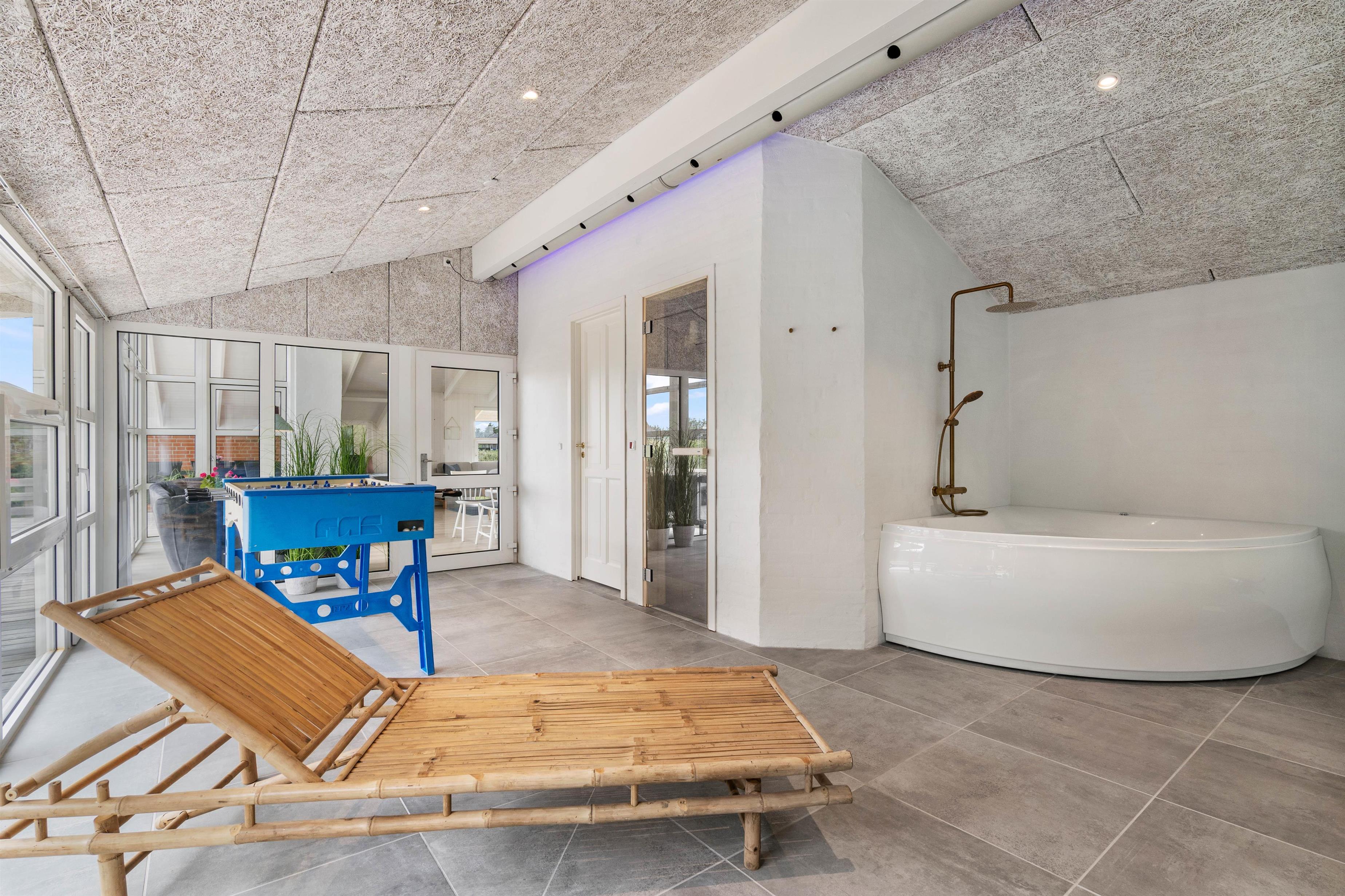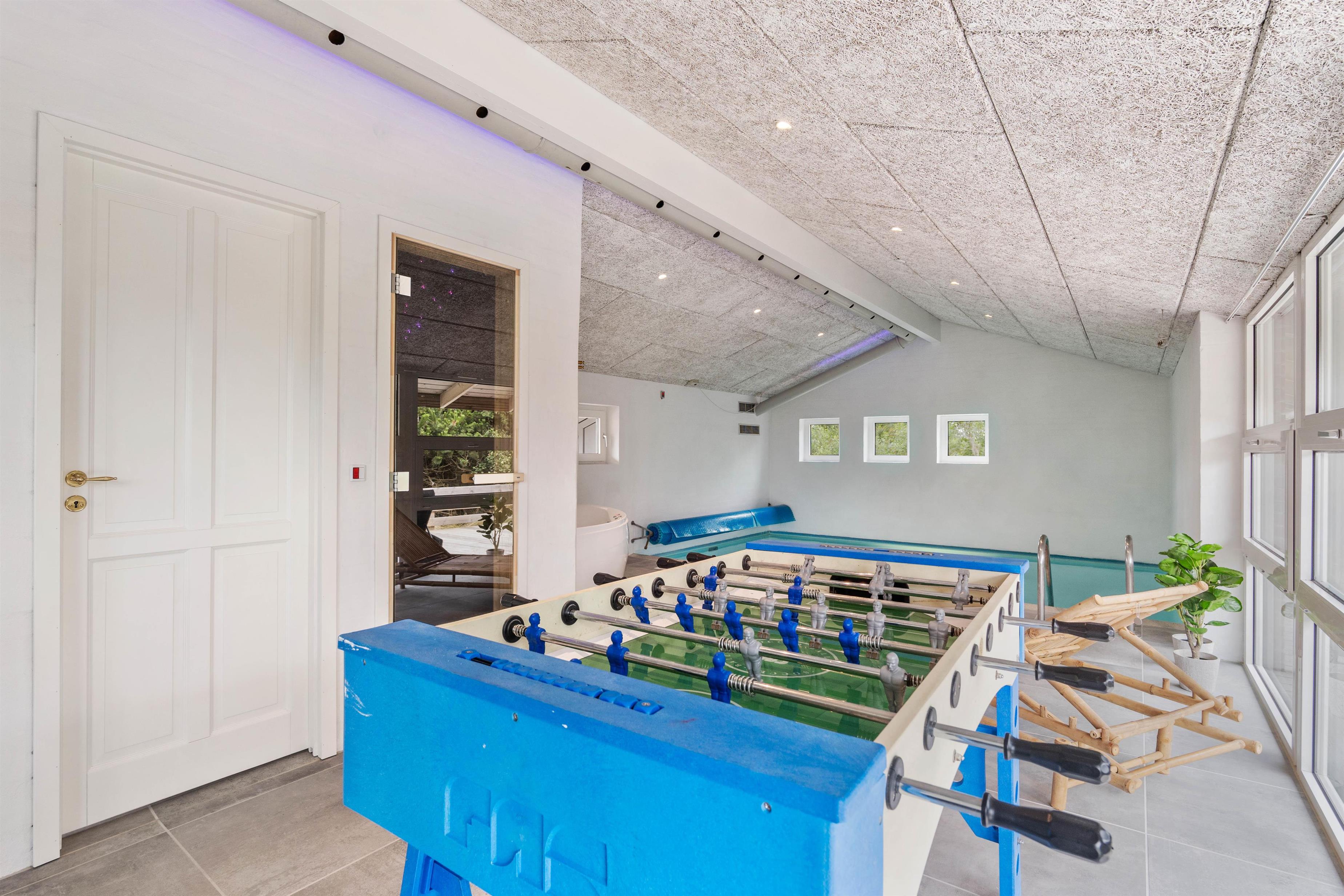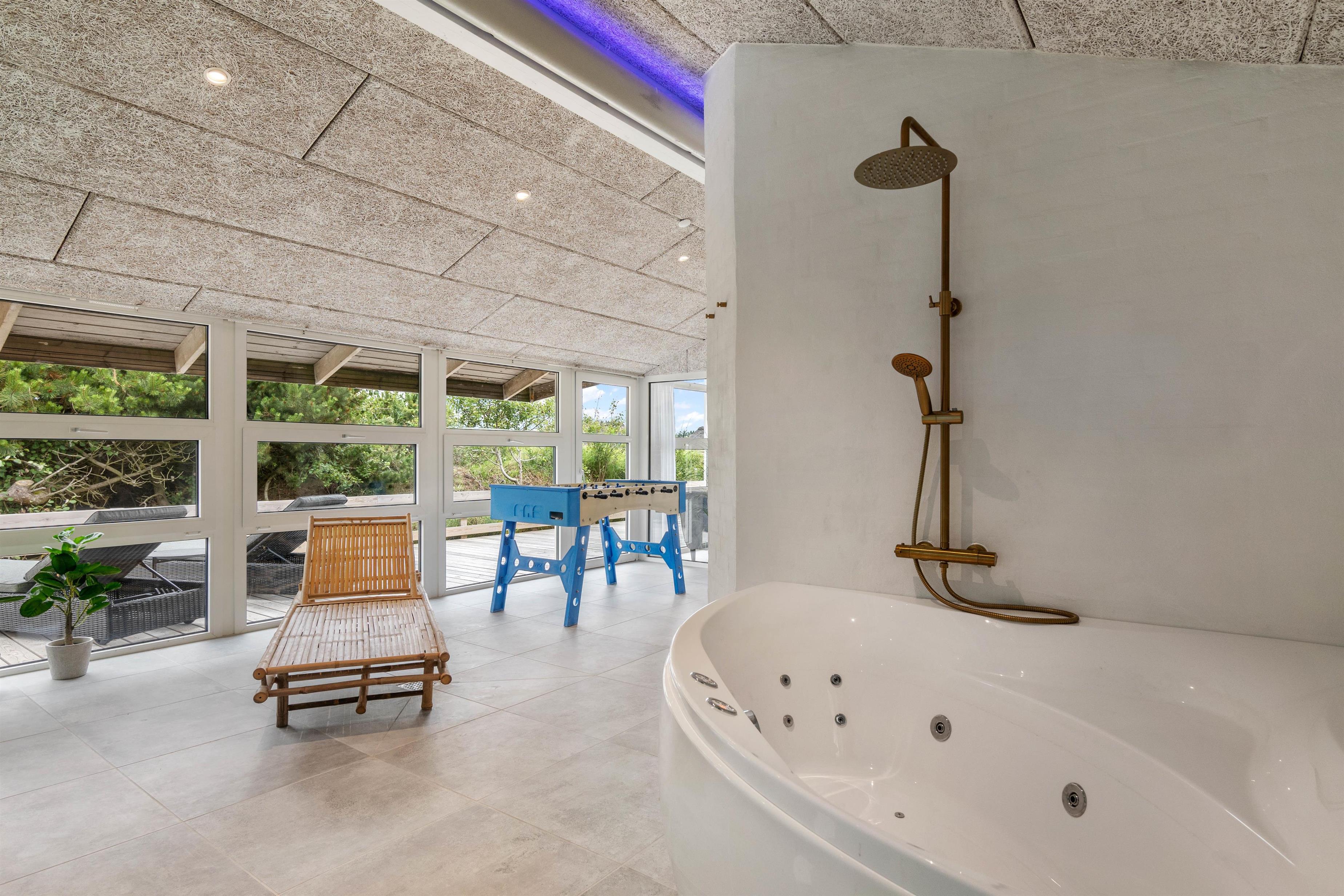 I det lyse poolrum venter jer flere af sommerhusets højdepunkter. Her kommer I uden tvivl, til at tilbringe mange af jeres ferietimer. Med den 20 kvadratmeter store swimmingpool, er der masser plads til at alle vandhundene kan bade i flere timer.