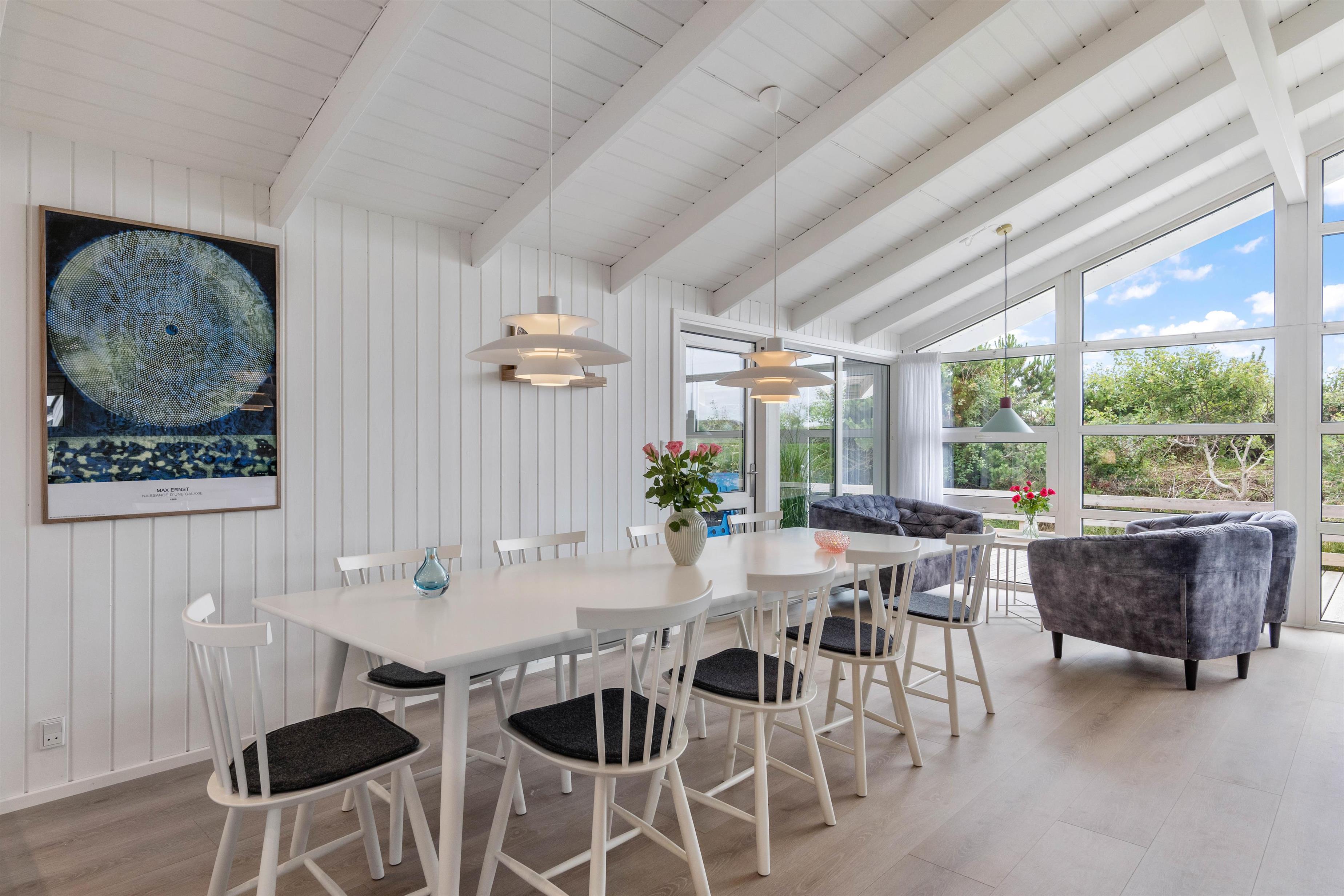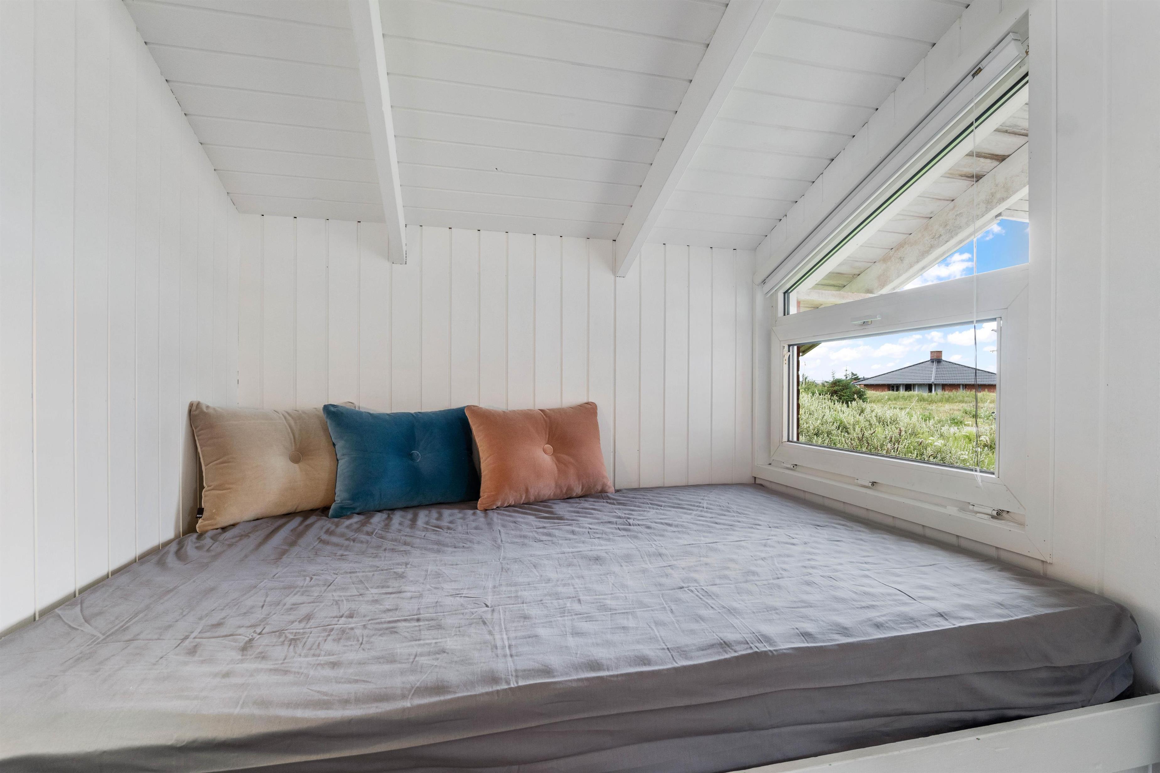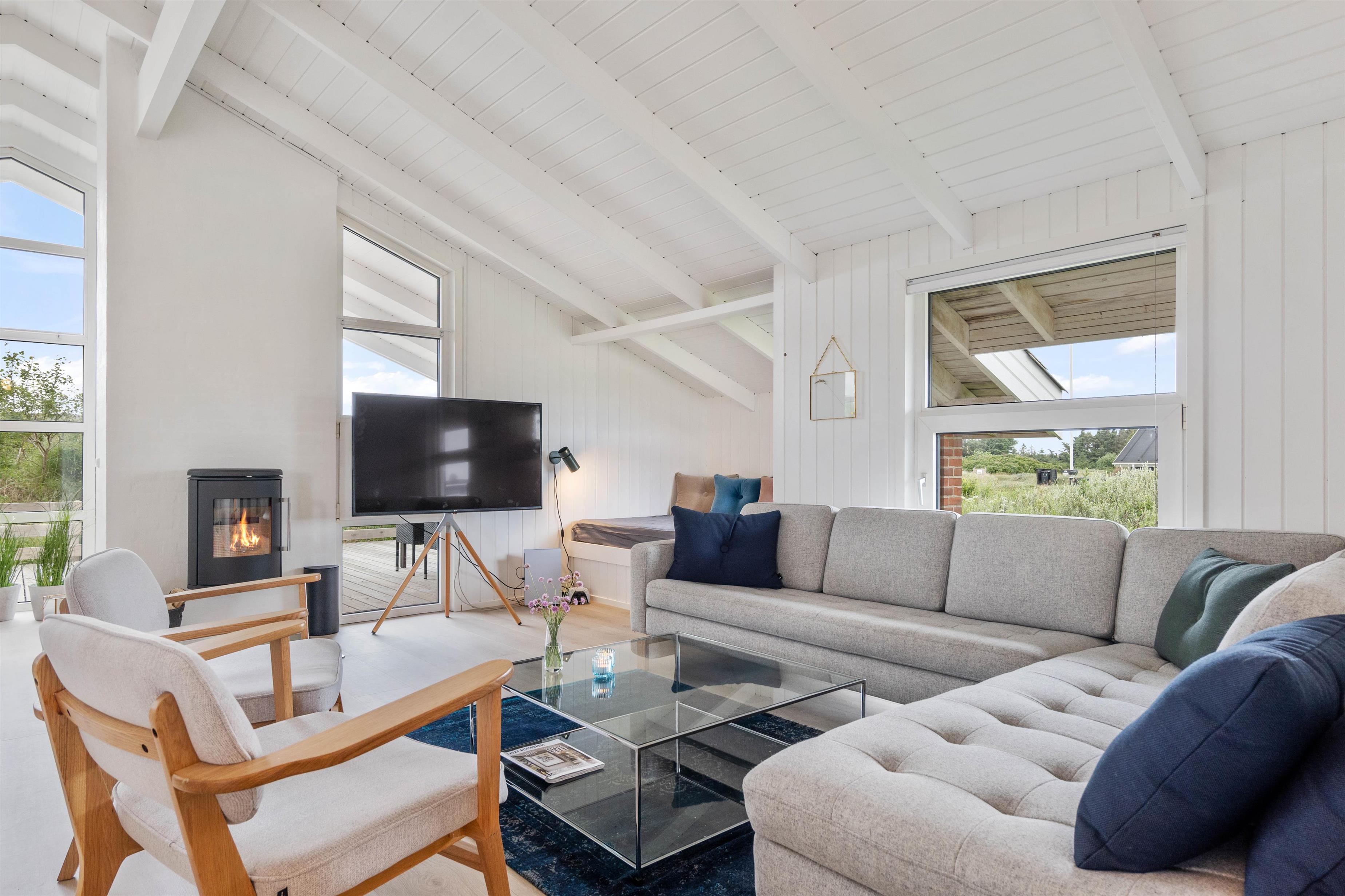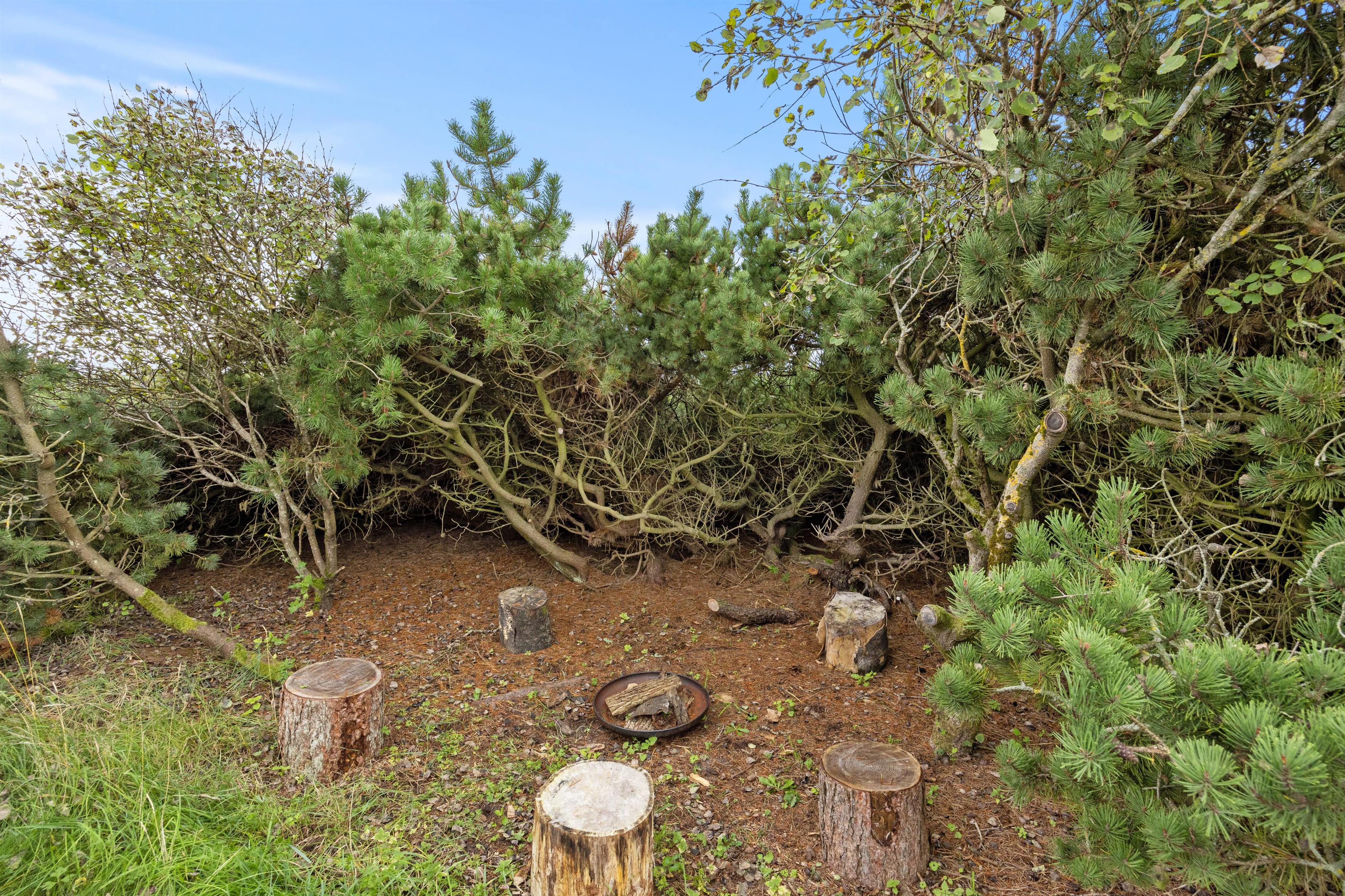 Tilhørende sommerhuset er der en stor træterrasse, hvor I kan tilbringe feriens varme og solrige dage. Her kan I nyde udsigten til den omkringliggende og karakteristiske natur, hvor klitter og hedearealer er dominerende. I har både havemøbler, liggestole og gasgrill til rådighed.