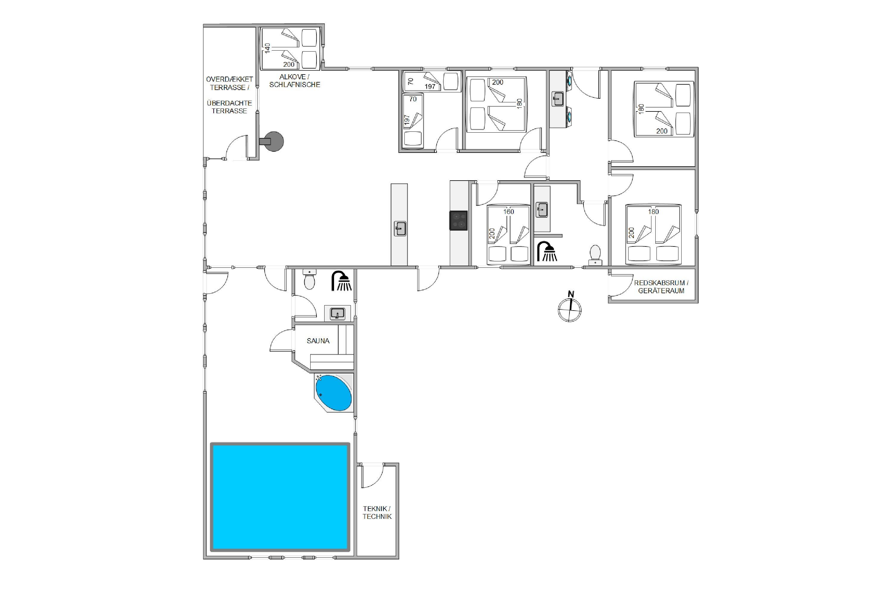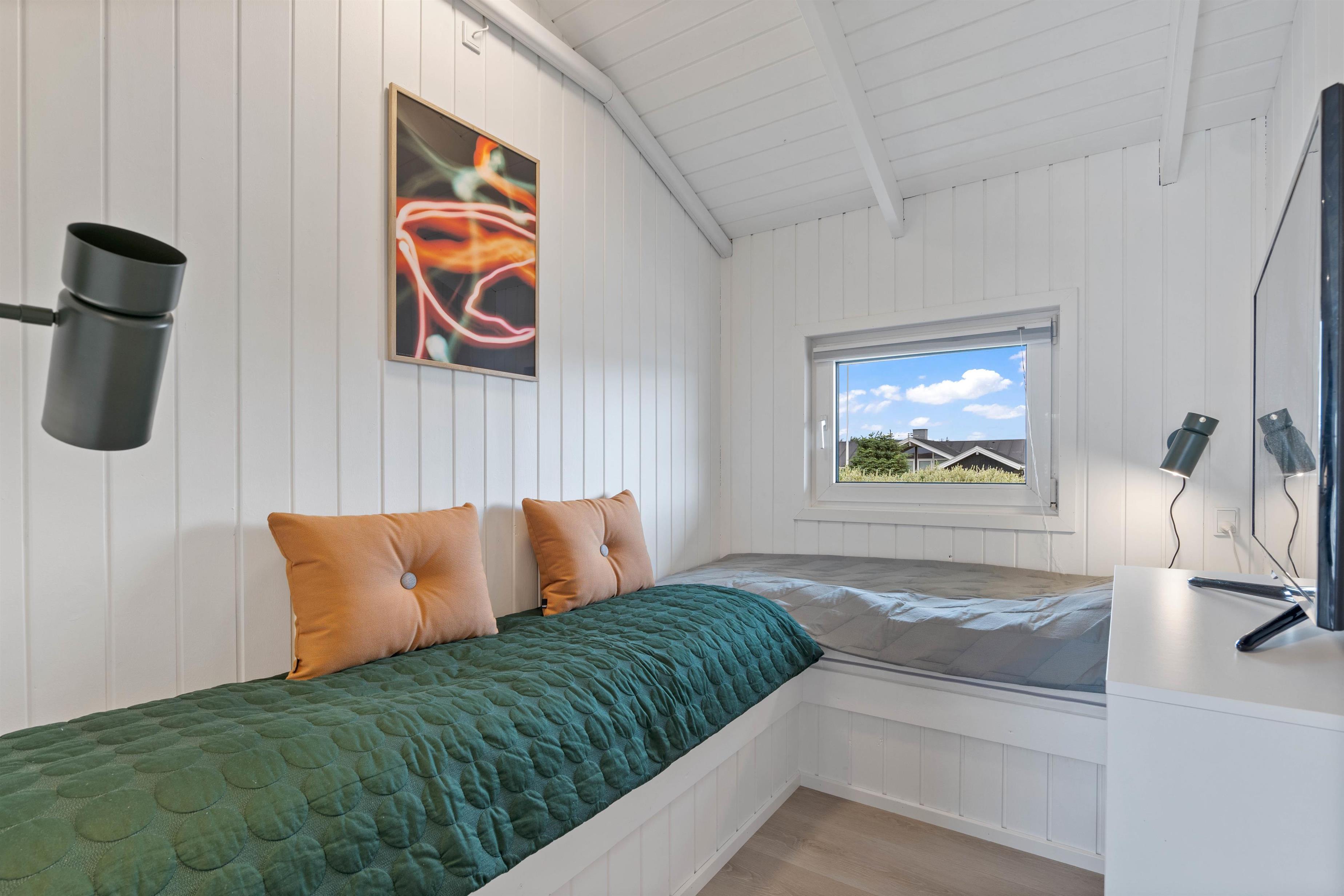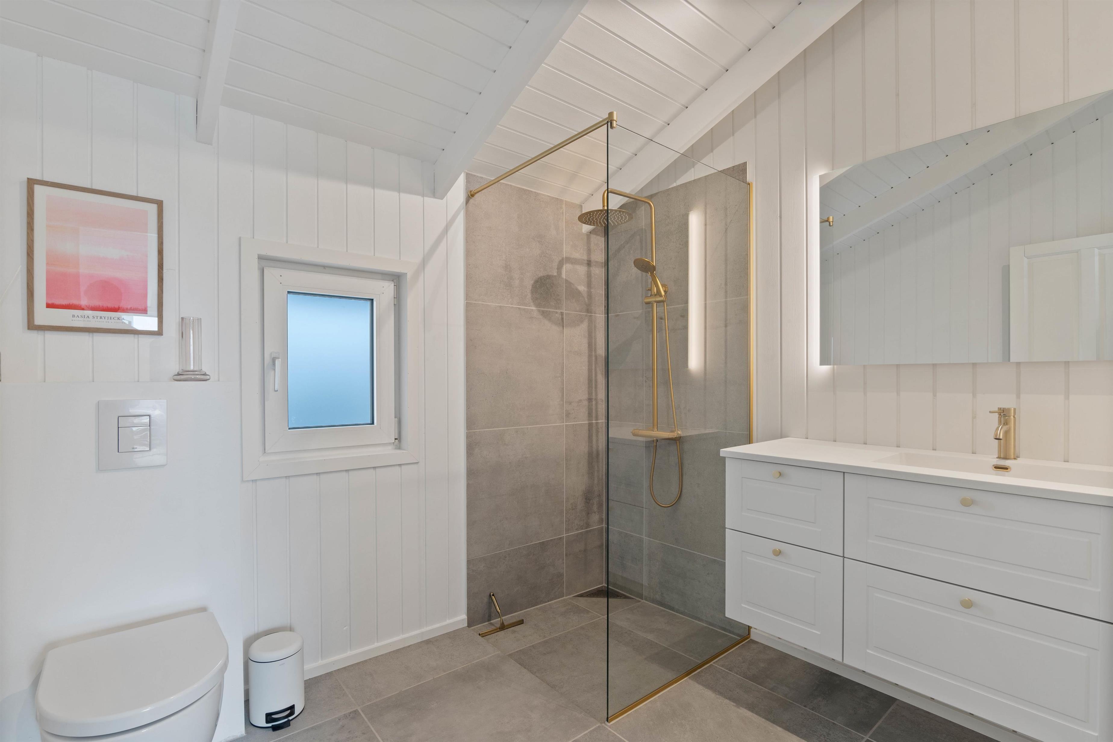 Når I efterhånden ikke har mere energi tilbage, kan I søge mod sommerhusets soveværelser. I det 191 kvadratmeter store sommerhus er der 5 soveværelser, der i alt er indrettet med 4 dobbeltsenge og 2 enkeltsenge, hvor I kan få jeres skønhedssøvn. Med hele 2 badeværelser slipper I for at stå i kø, når I står op næste morgen.