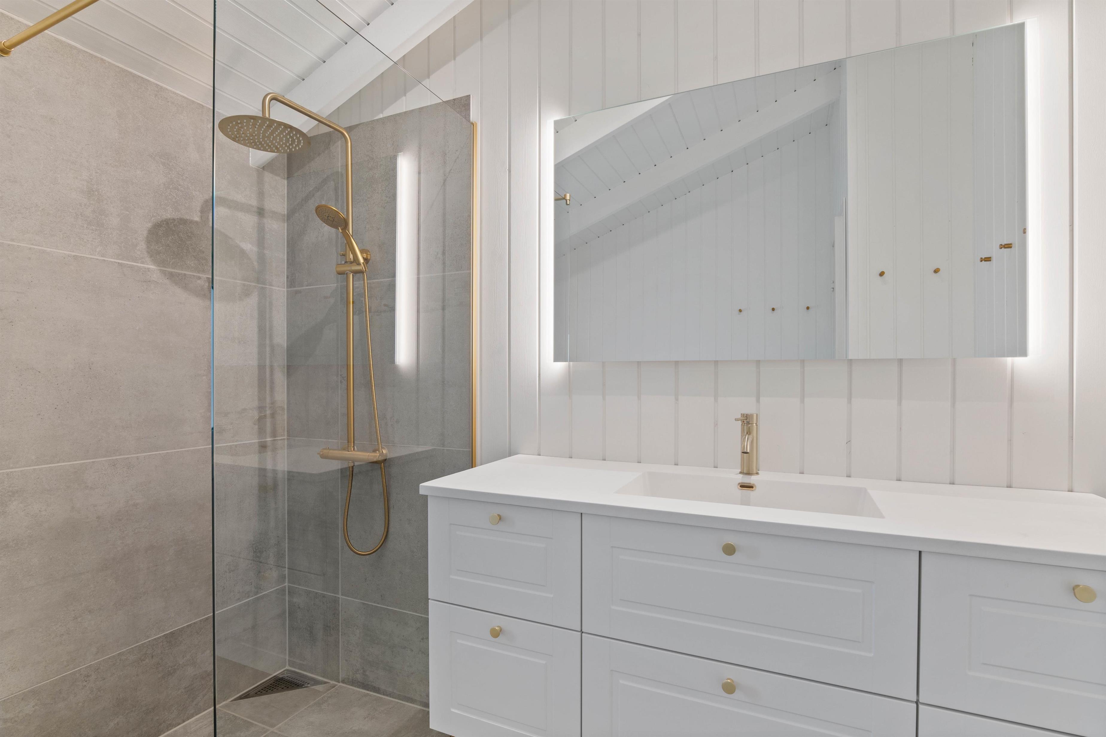 Når I efterhånden ikke har mere energi tilbage, kan I søge mod sommerhusets soveværelser. I det 191 kvadratmeter store sommerhus er der 5 soveværelser, der i alt er indrettet med 4 dobbeltsenge og 2 enkeltsenge, hvor I kan få jeres skønhedssøvn. I 2 af soveværelserne finder I desuden et lille skrivebord, hvor I blandt andet kan finde ro til at læse en god bog. Med hele 2 badeværelser slipper I for at stå i kø, når I står op næste morgen.