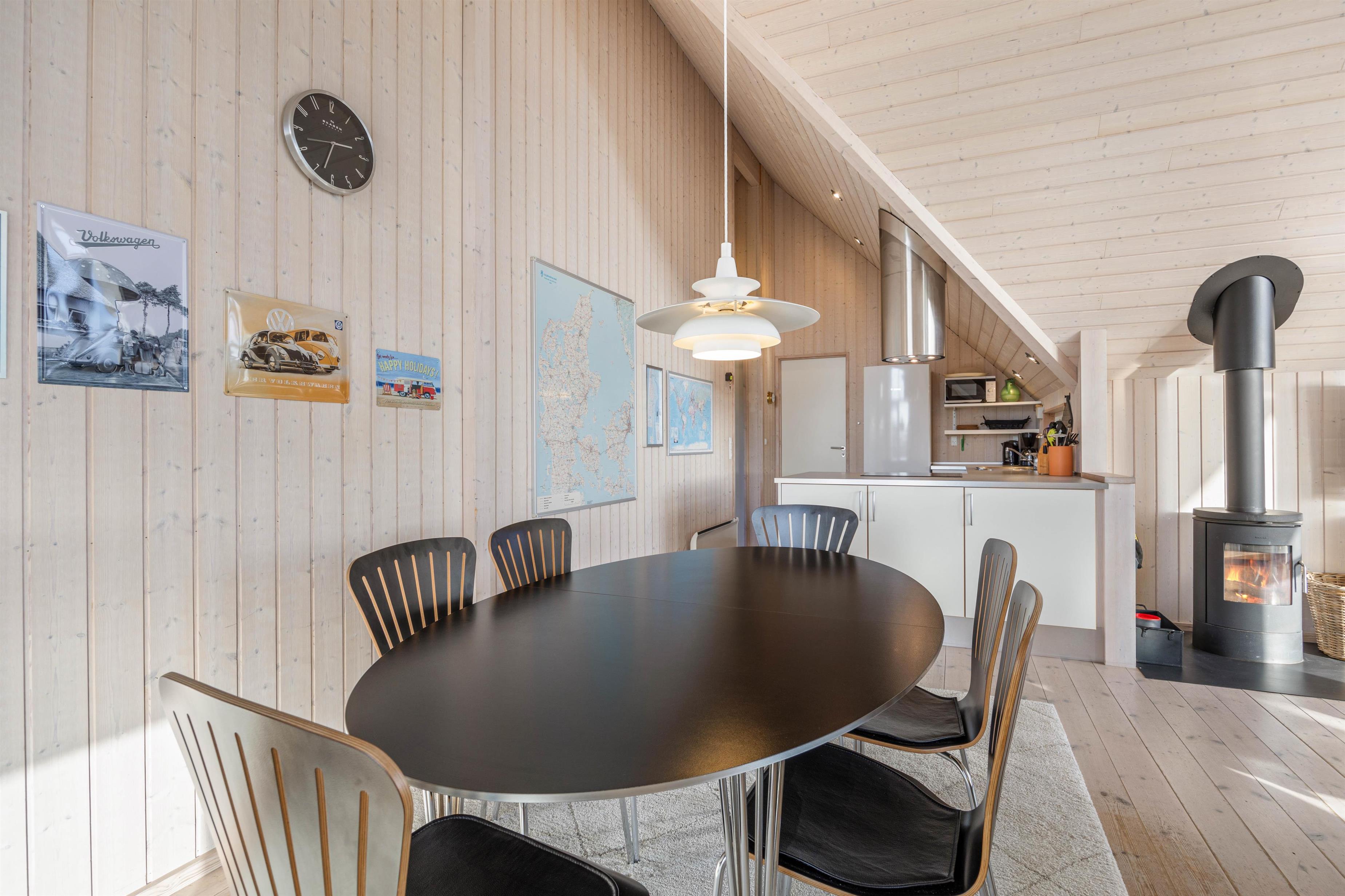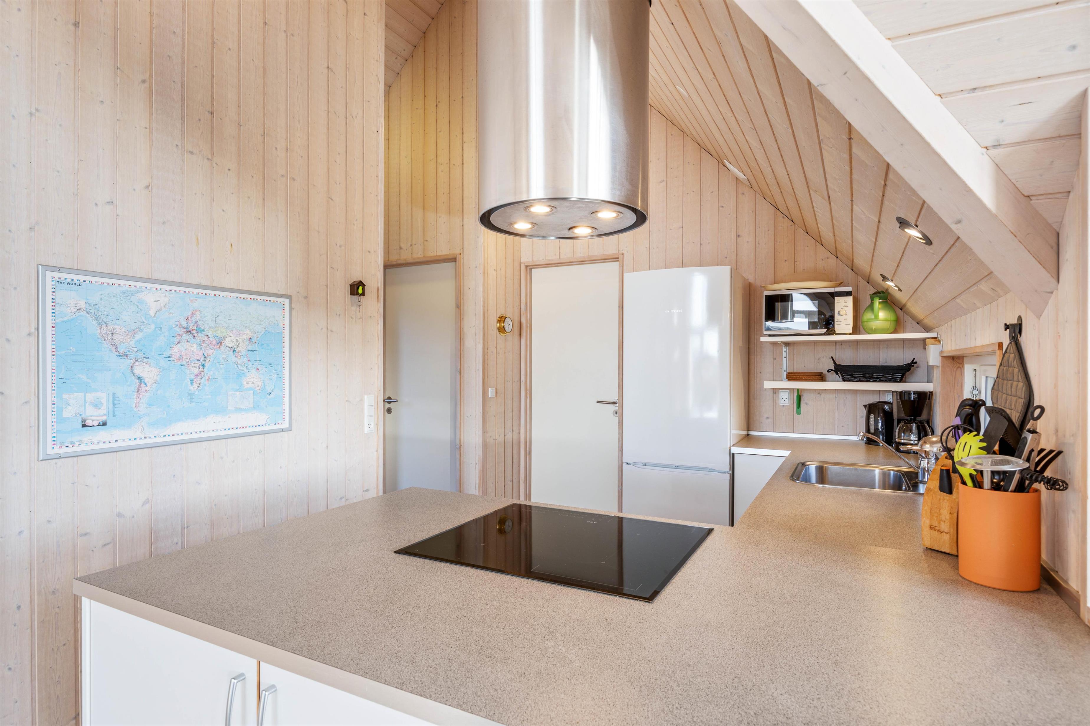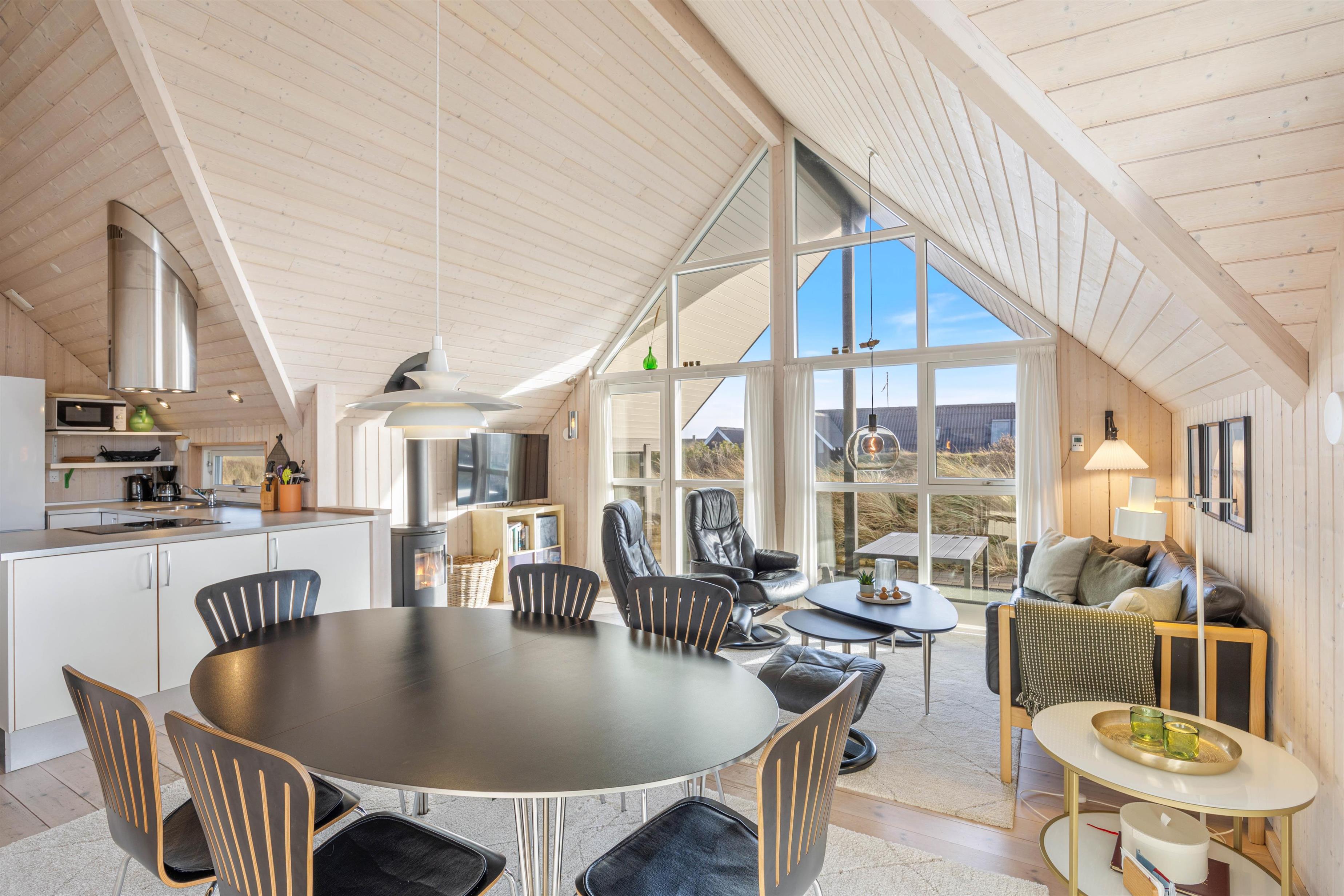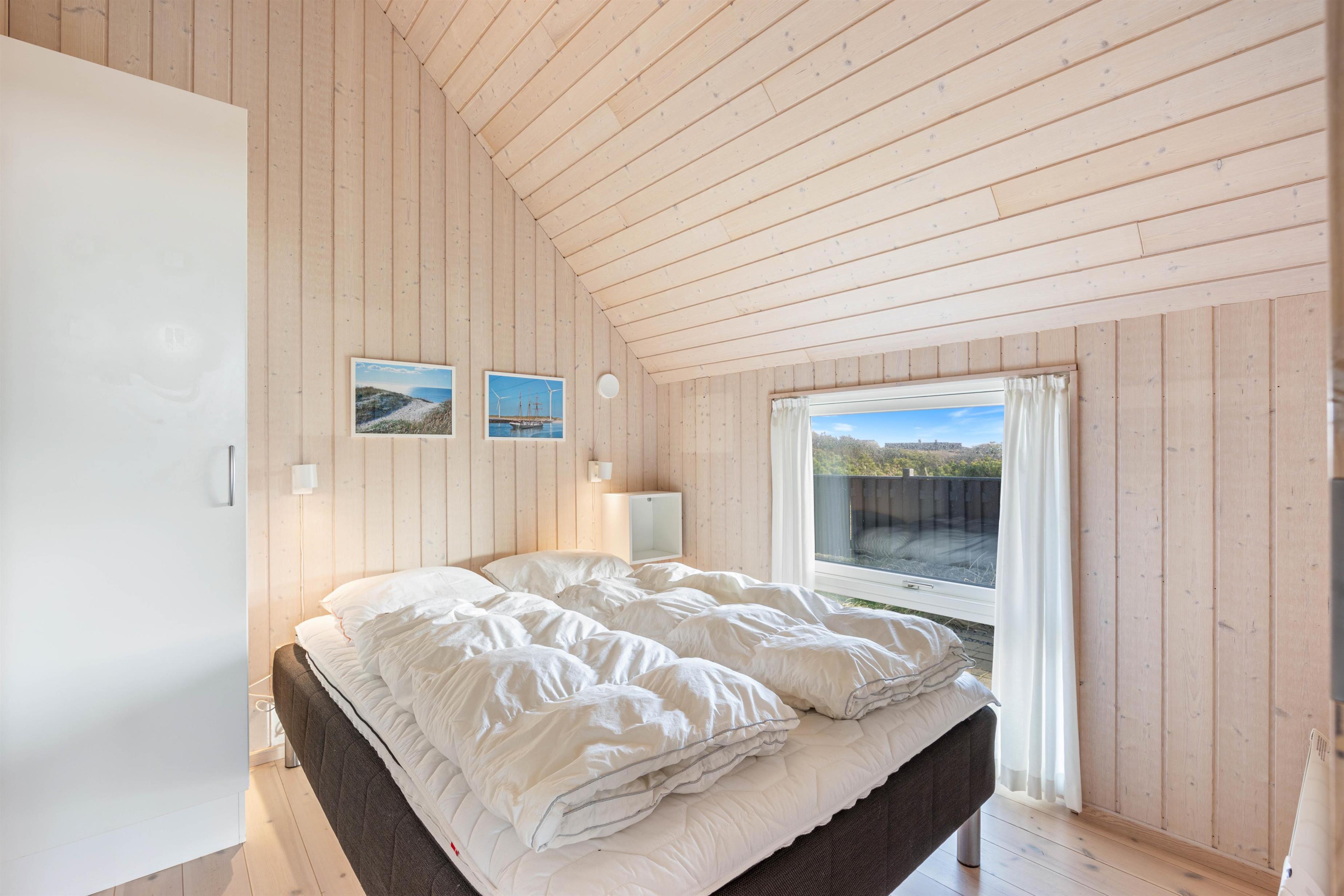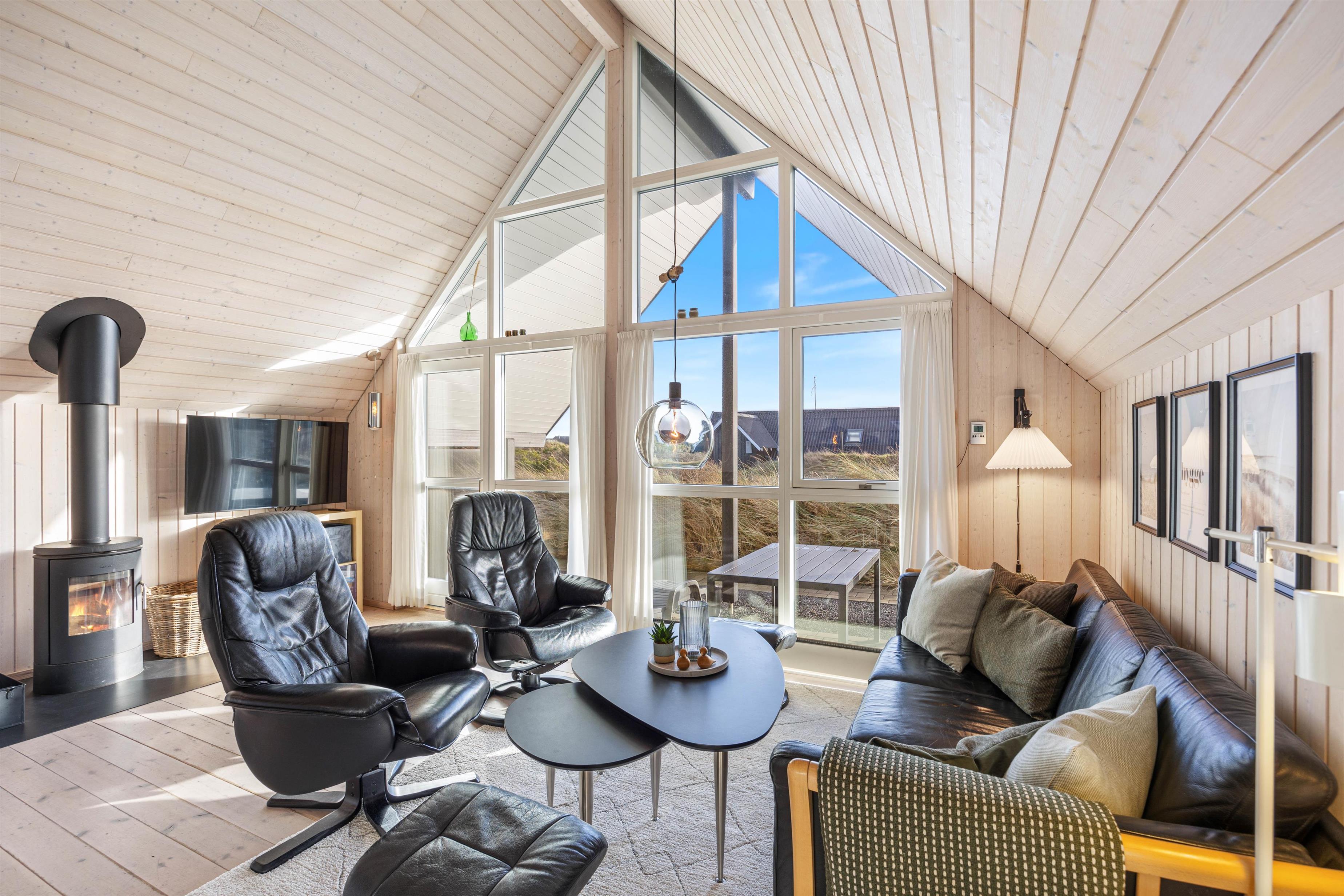 Dette dejlige sommerhus har 3 soveværelser, alle med dobbeltsenge. Badeværelset er med gulvvarme, en skøn bruseniche og en vaskemaskine. I køkkenet, der er placeret i forbindelse med stuen, finder du både opvaskemaskine, mikroovn og en fryser på 60 liter. I stuen er der store og flotte vinduespartier, både mod vest og mod syd, så man har dejligt udsyn over den smukke natur, hvor klitterne ses længst mod vest. I stuen er der en flot brændeovn med glaslåger, et fladskærms-TV, en radio m/CD-afspiller, parabol og gratis trådløst internet.