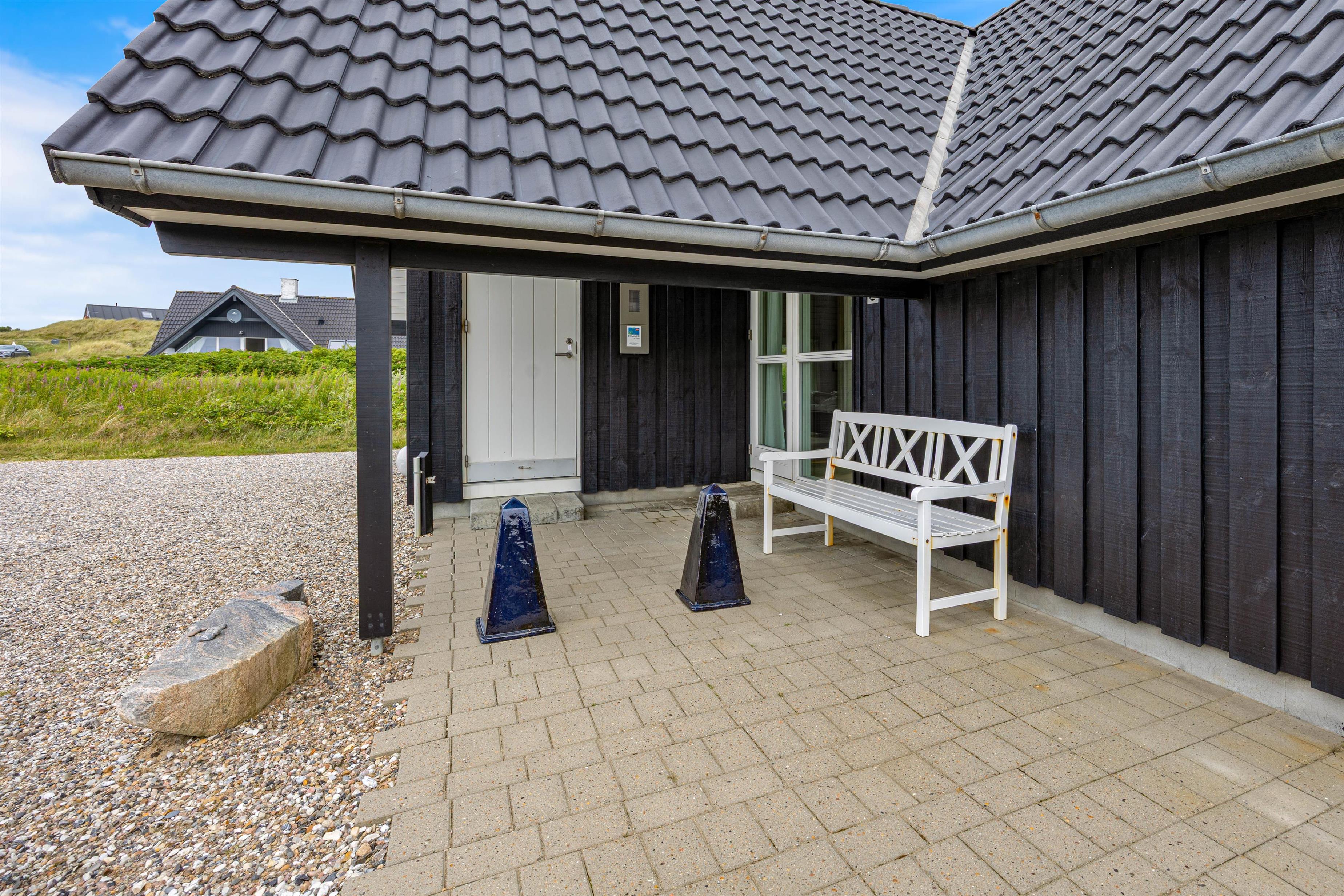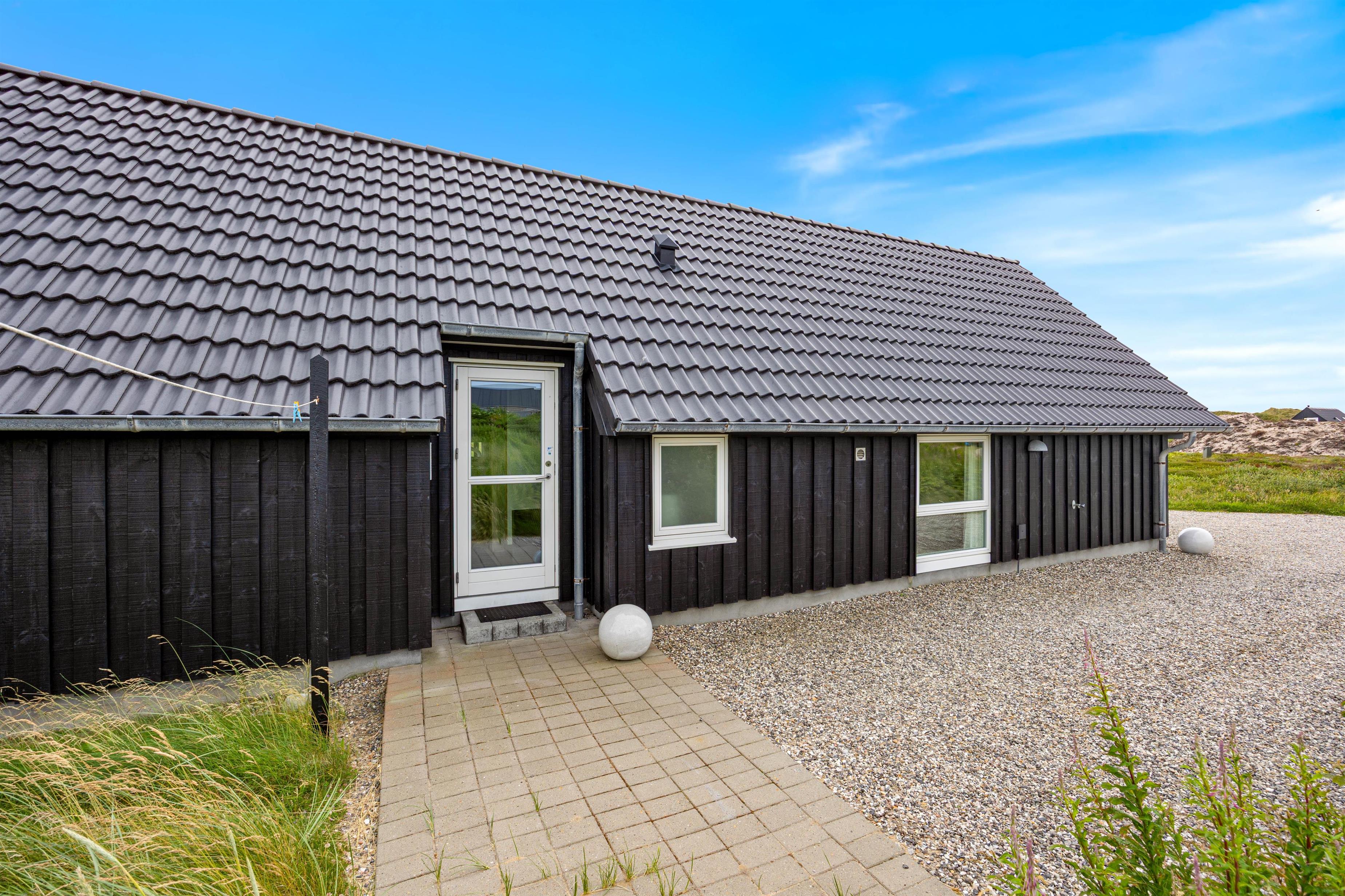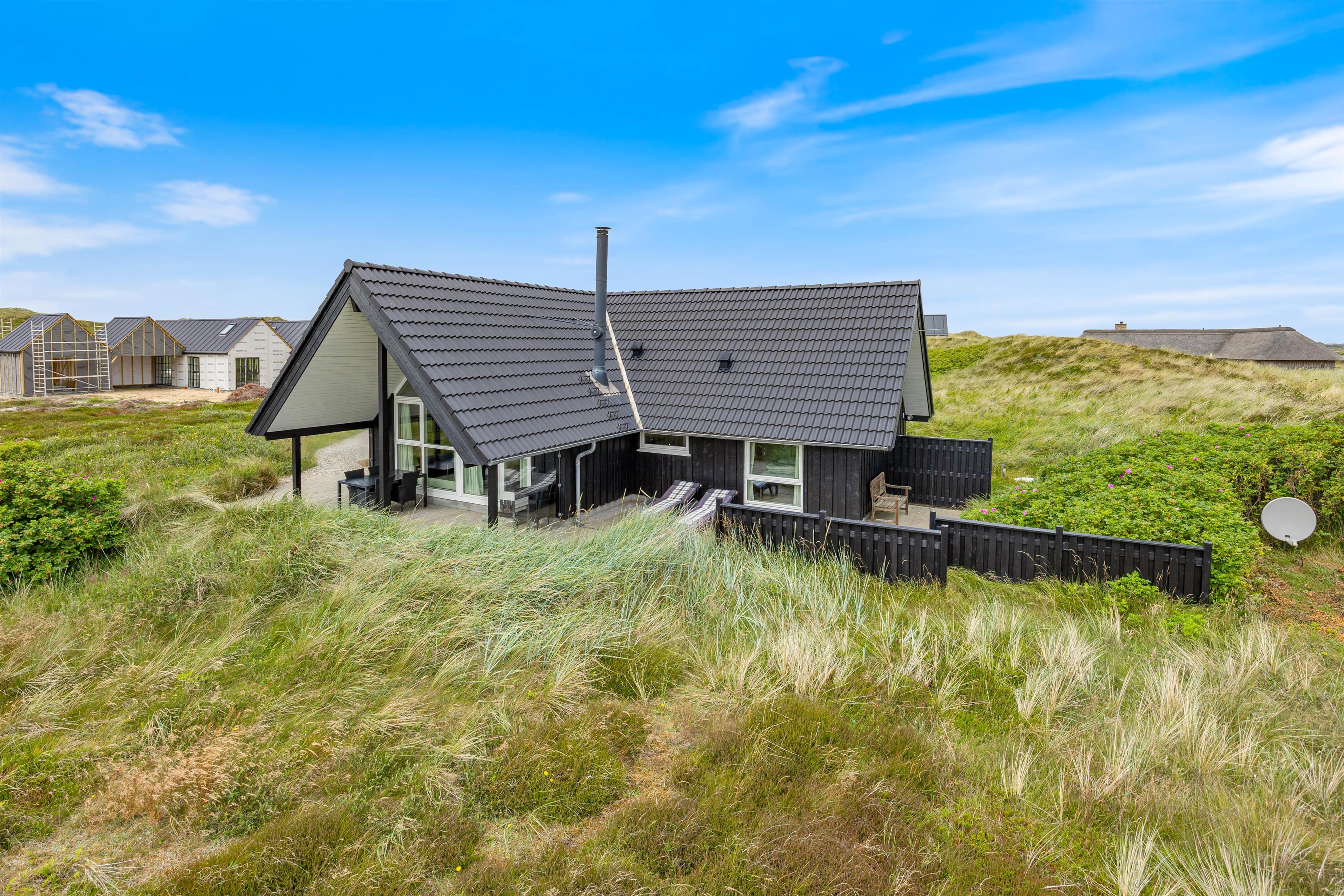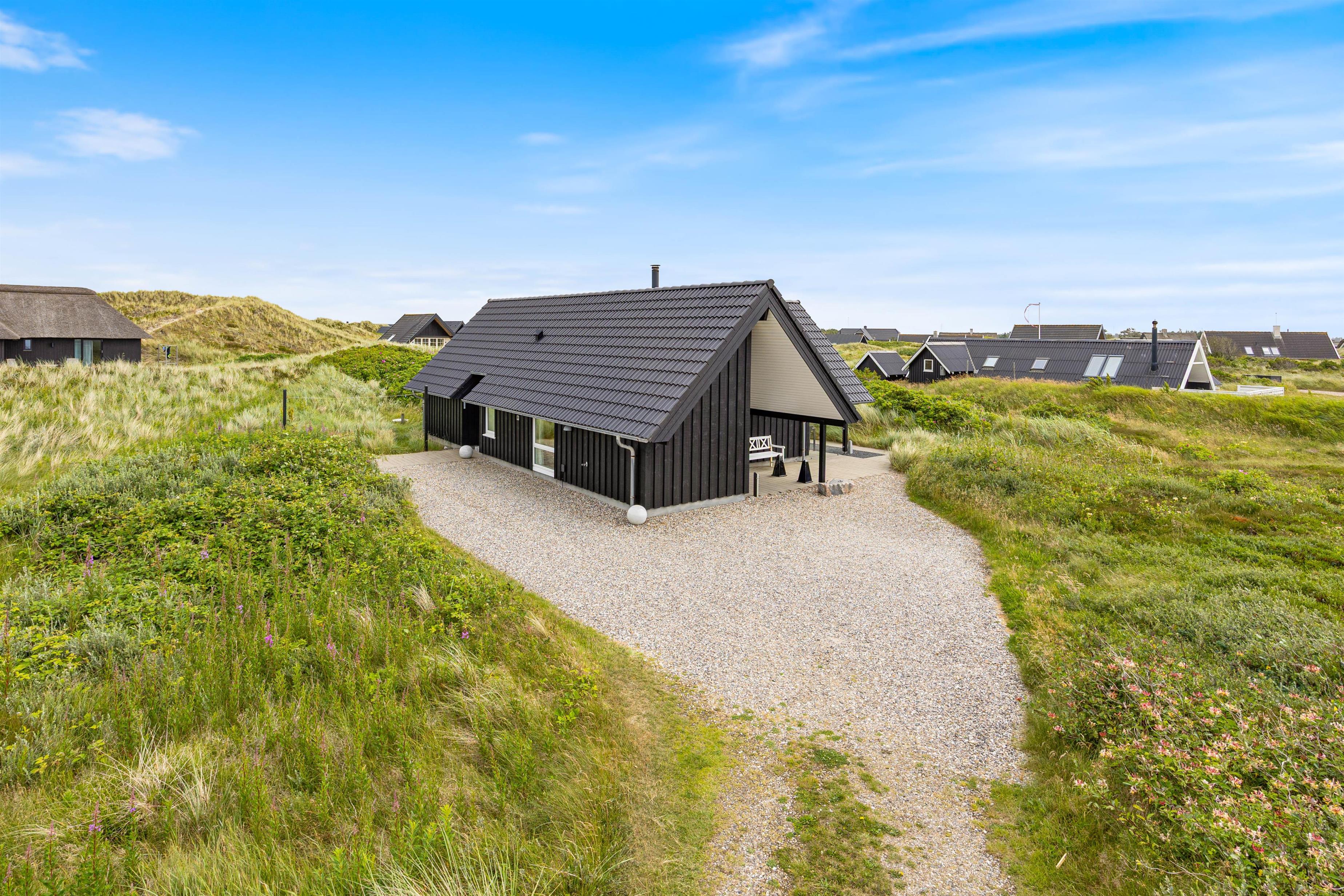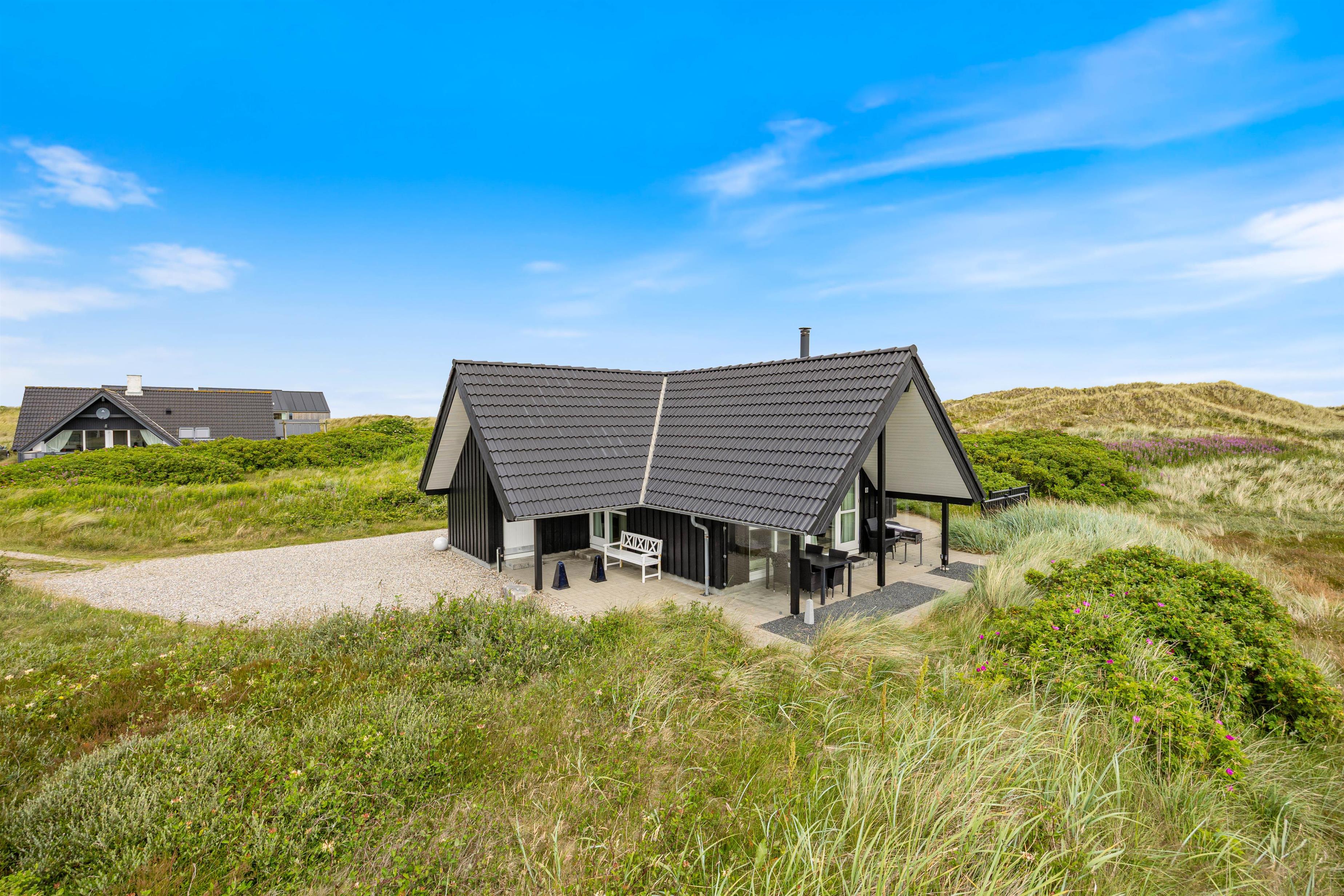 Et hyggeligt og flot kvalitetshus fra 2013 med god beliggenhed på en flot og lyngbeklædt naturgrund. Huset har en flot arkitektur med bl.a. træloft til kip i køkken og i stuen. Huset har terrasser på 3 sider og ligger kun 450 m fra Vesterhavet og ca. 8 km fra Hvide Sande. Gratis internet.