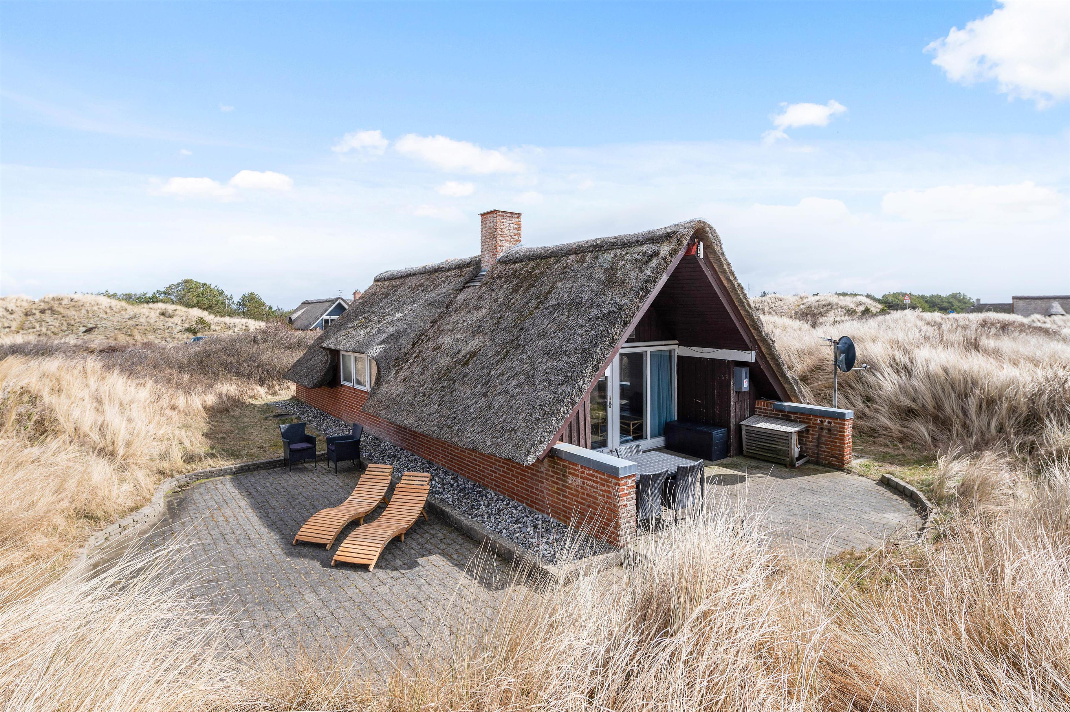Her er et charmerende sommerhus med stråtag, hvor der er plads til 4 personer. Jeres to hunde er også mere end velkommen, og med dette sommerhus har I kun 600 meter til stranden. Desuden har sommerhuset en sauna, som I frit kan benytte, og en hems, hvor 2 af sovepladserne er placeret.