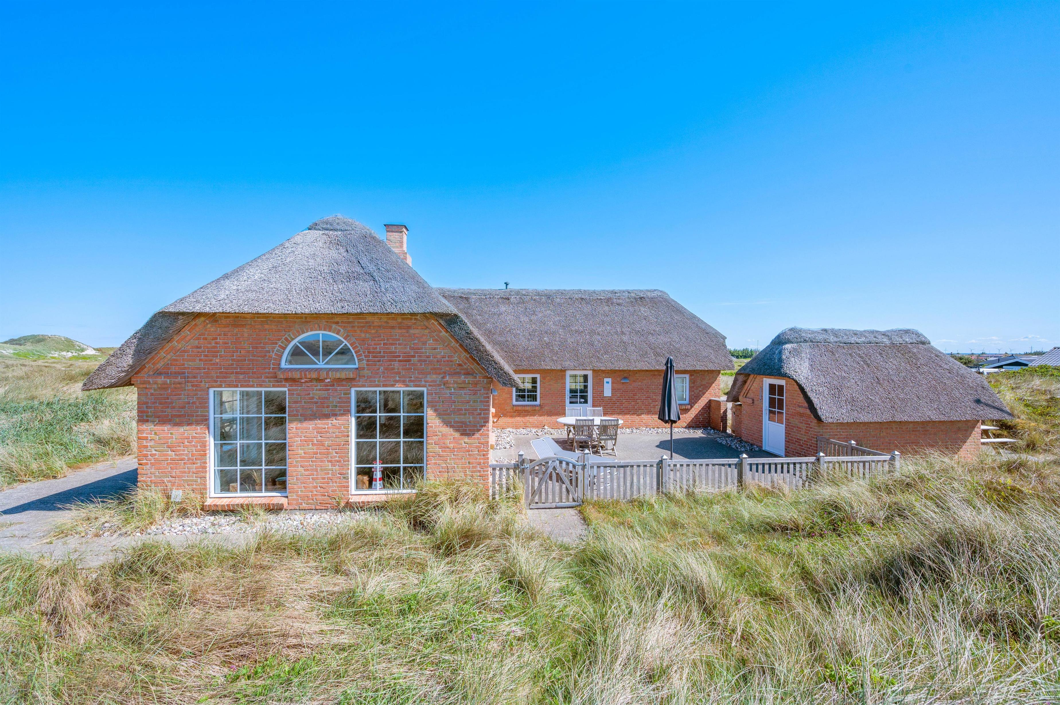 Nyd jeres feriedage i dette femstjernede stråtækte sommerhus med direkte udsigt til første klitrække. Faktisk er der kun 200 meter til stranden. Det er dog ikke kun udsigten, der er fantastisk. Feriehuset på Fladsbjergvej 71 i Klegod byder også på skønne faciliteter som spa og sauna samt en lækker syd-vestvendt terrasse, der kalder på solbadning og hyggelige sommerstunder.