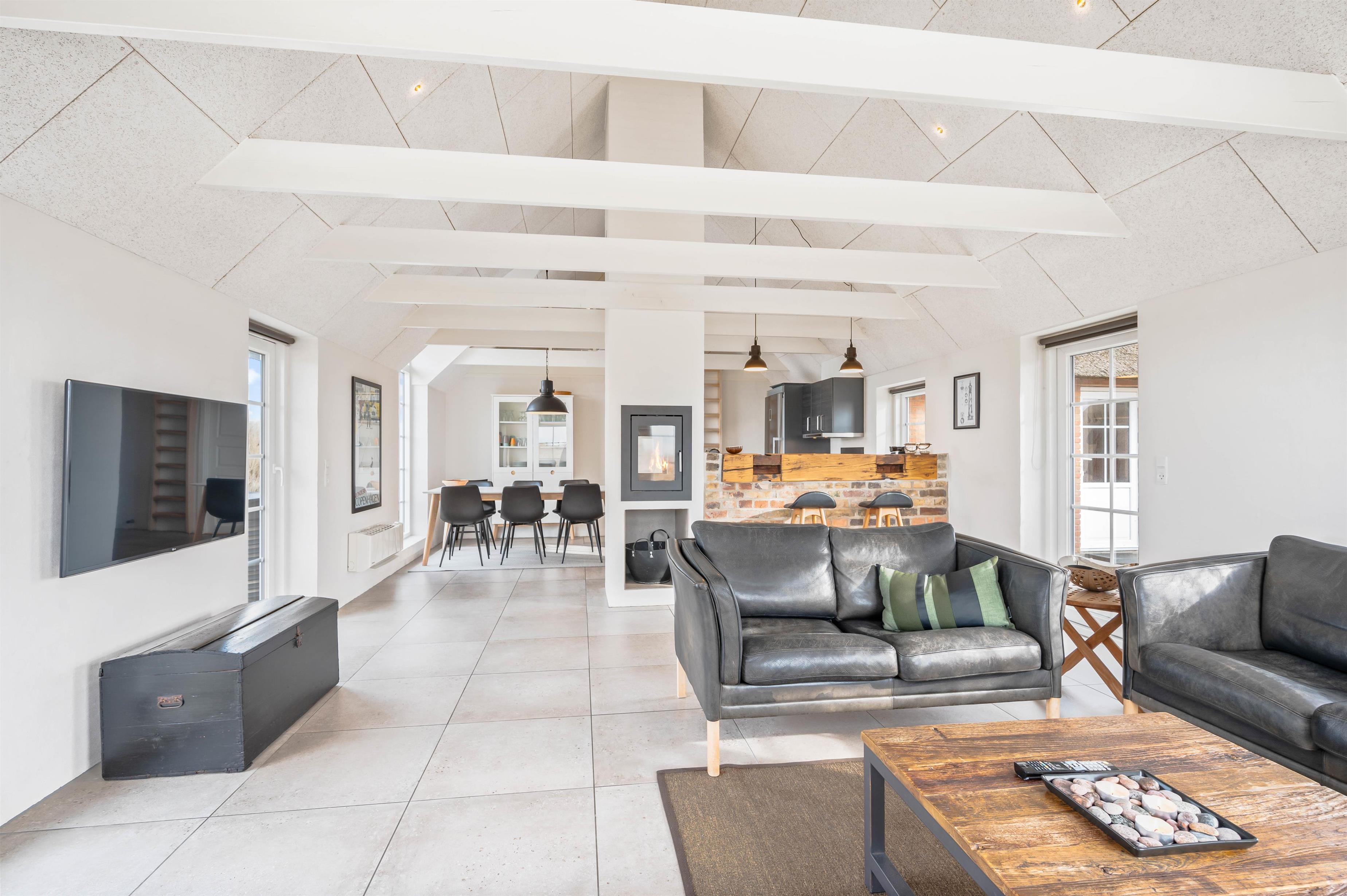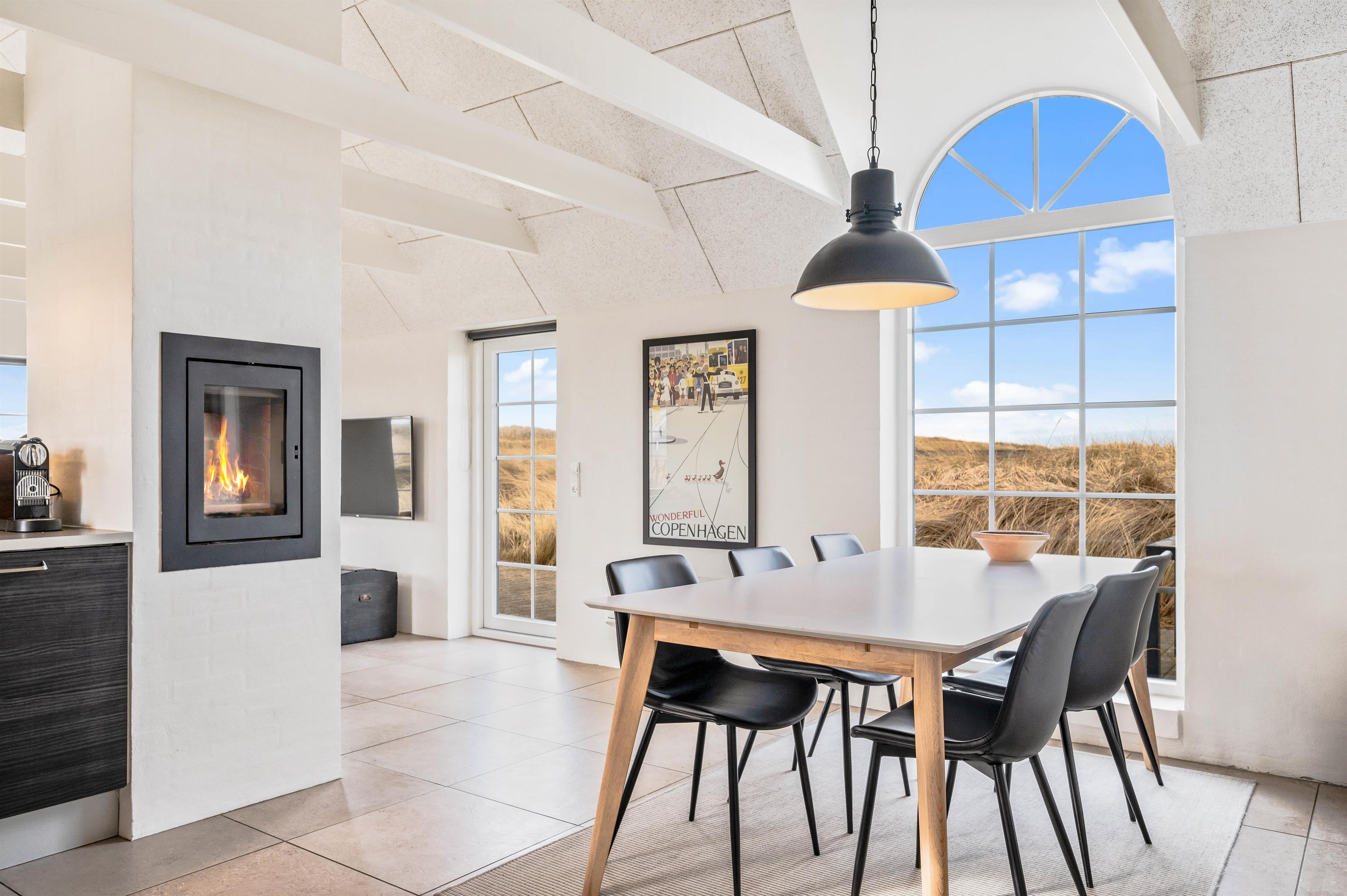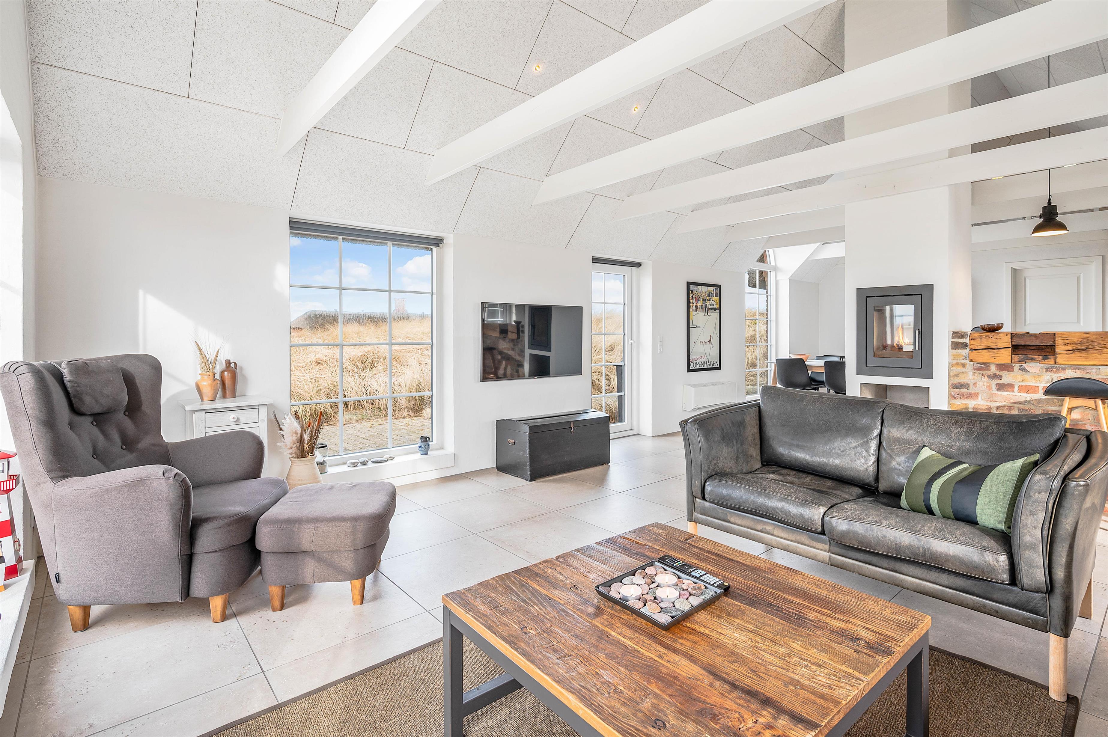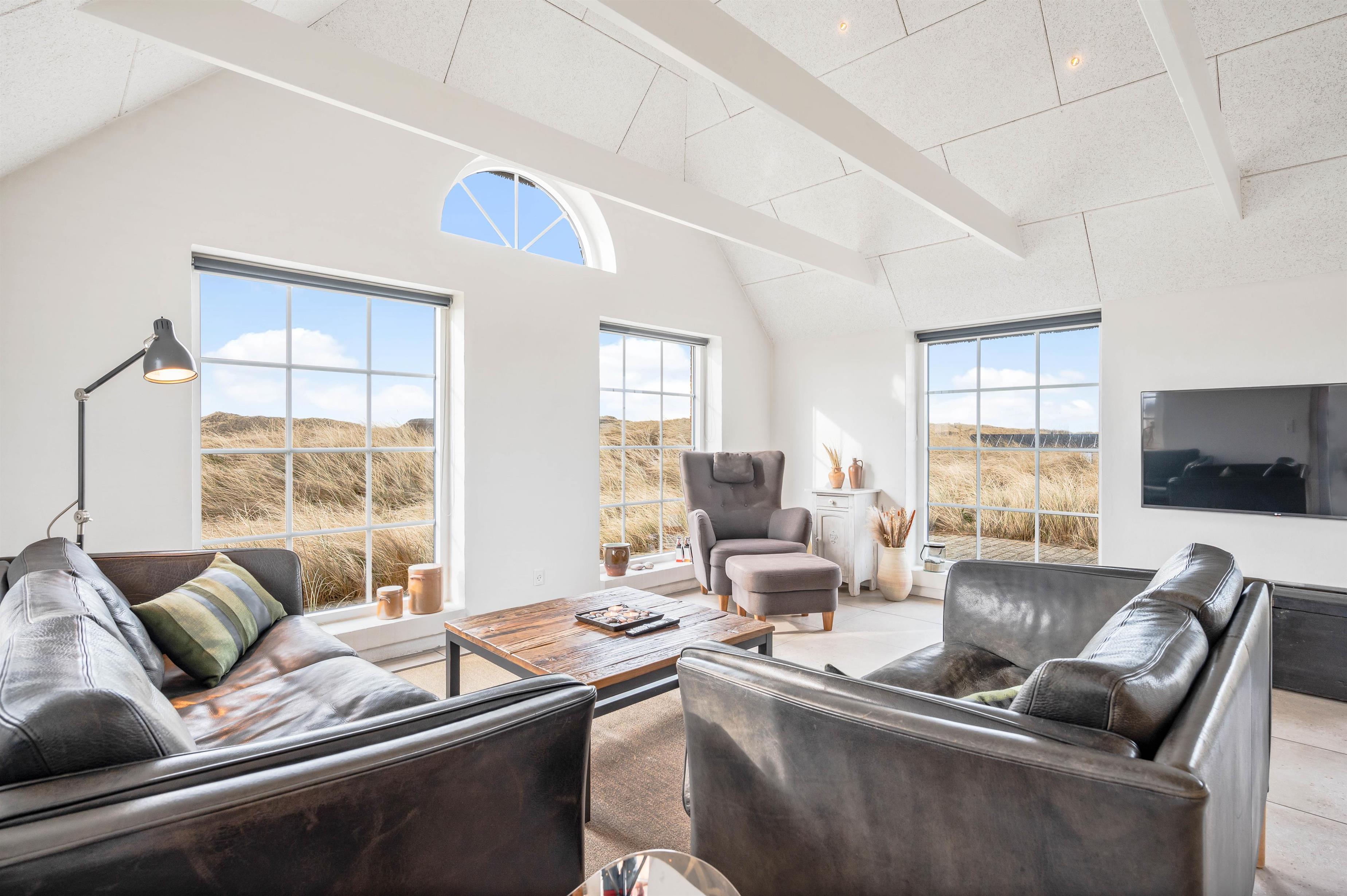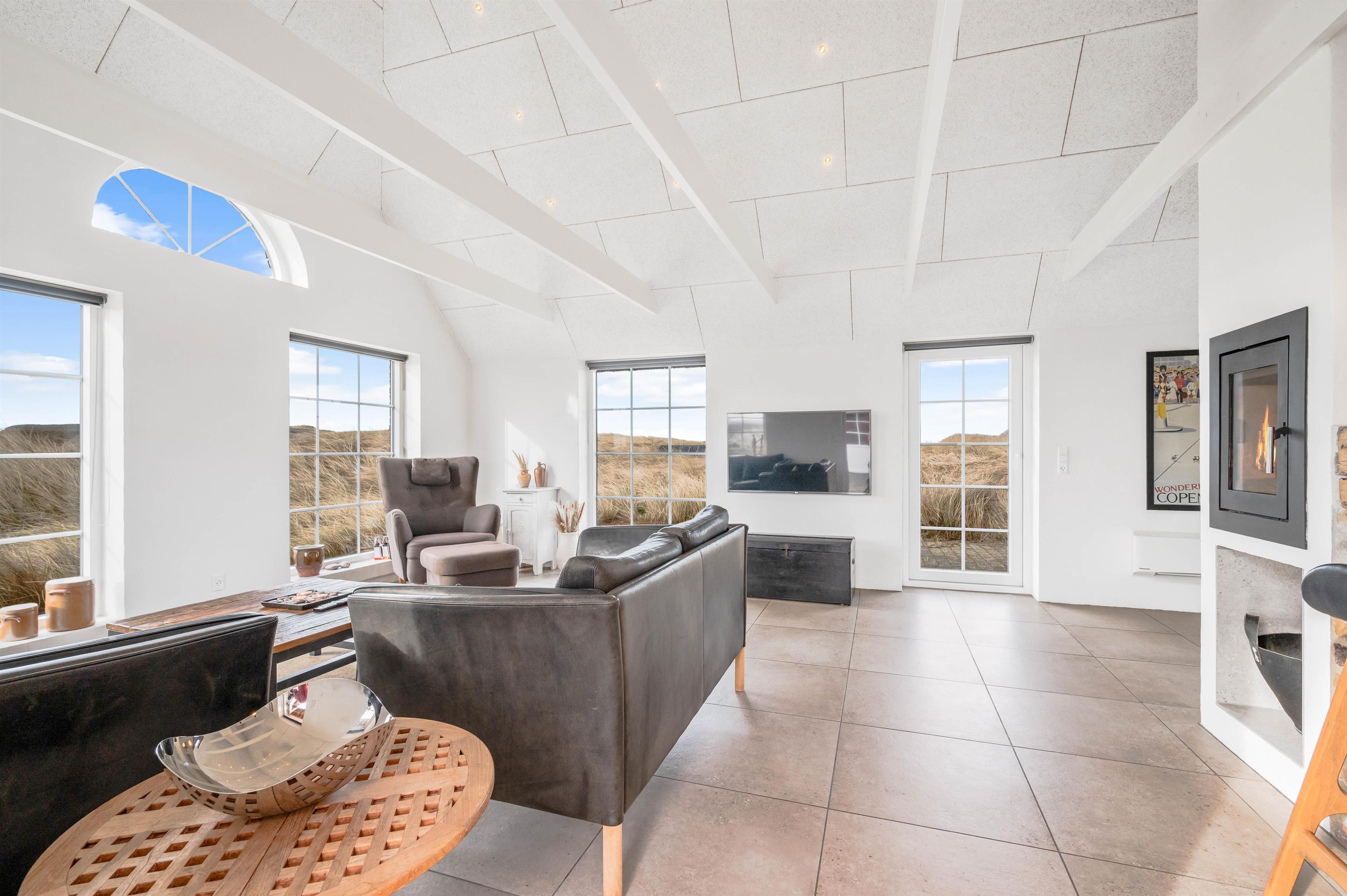 Lyset strømmer ind ad vinduerne i denne lille perle i Klegod. Det smukke lysindfald er med til at bringe følelsen af Vesterhavet helt ind i stuen, og blikket bliver naturligt draget mod de åbne vidder, man kan nyde synet af gennem vinduerne.