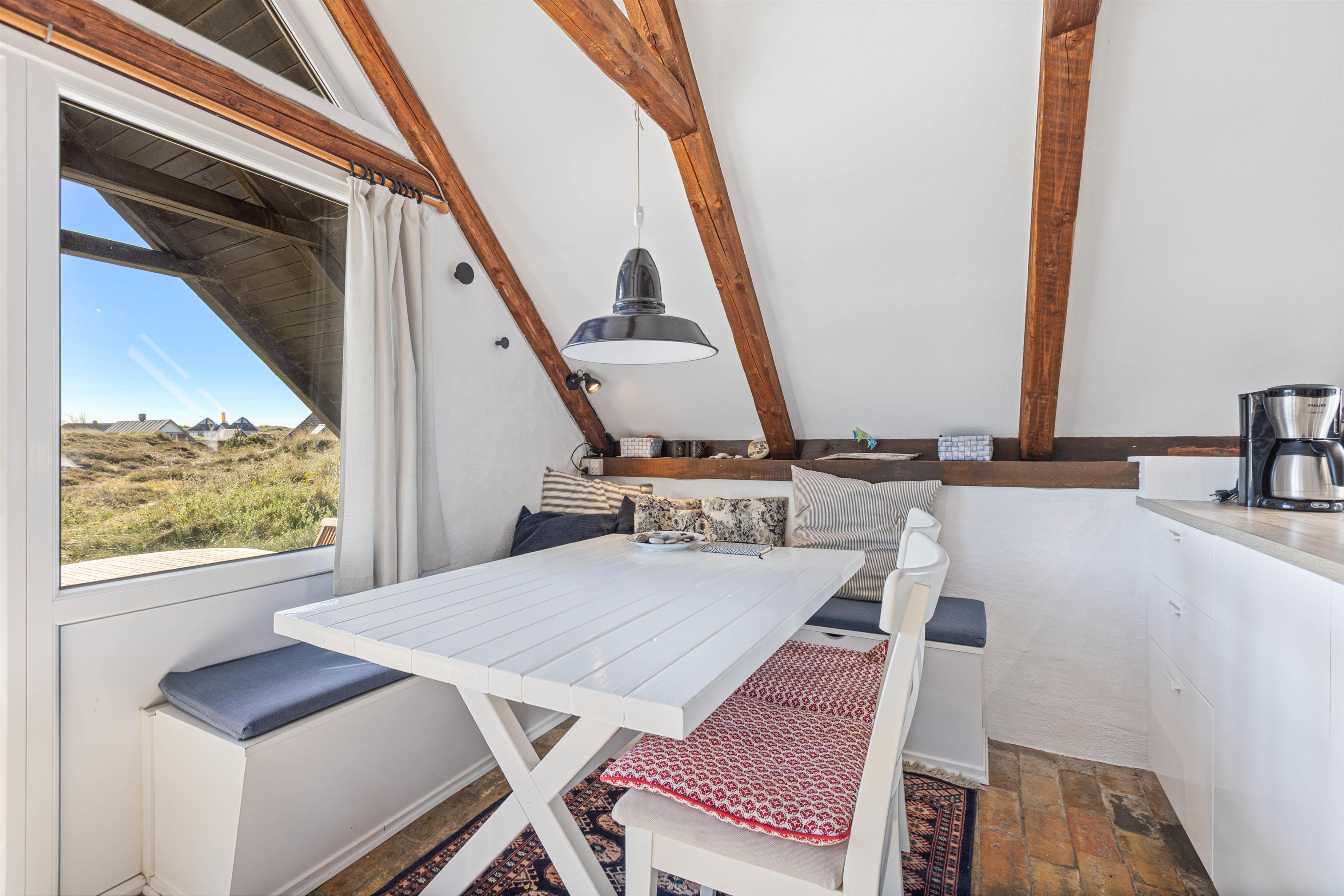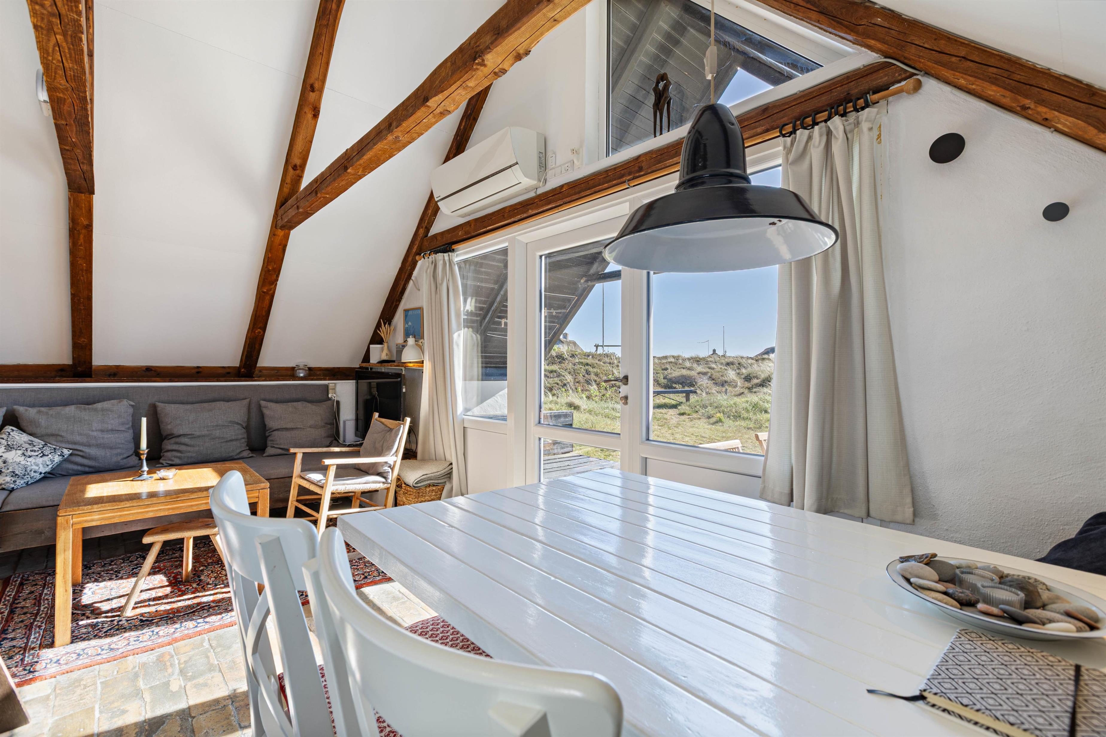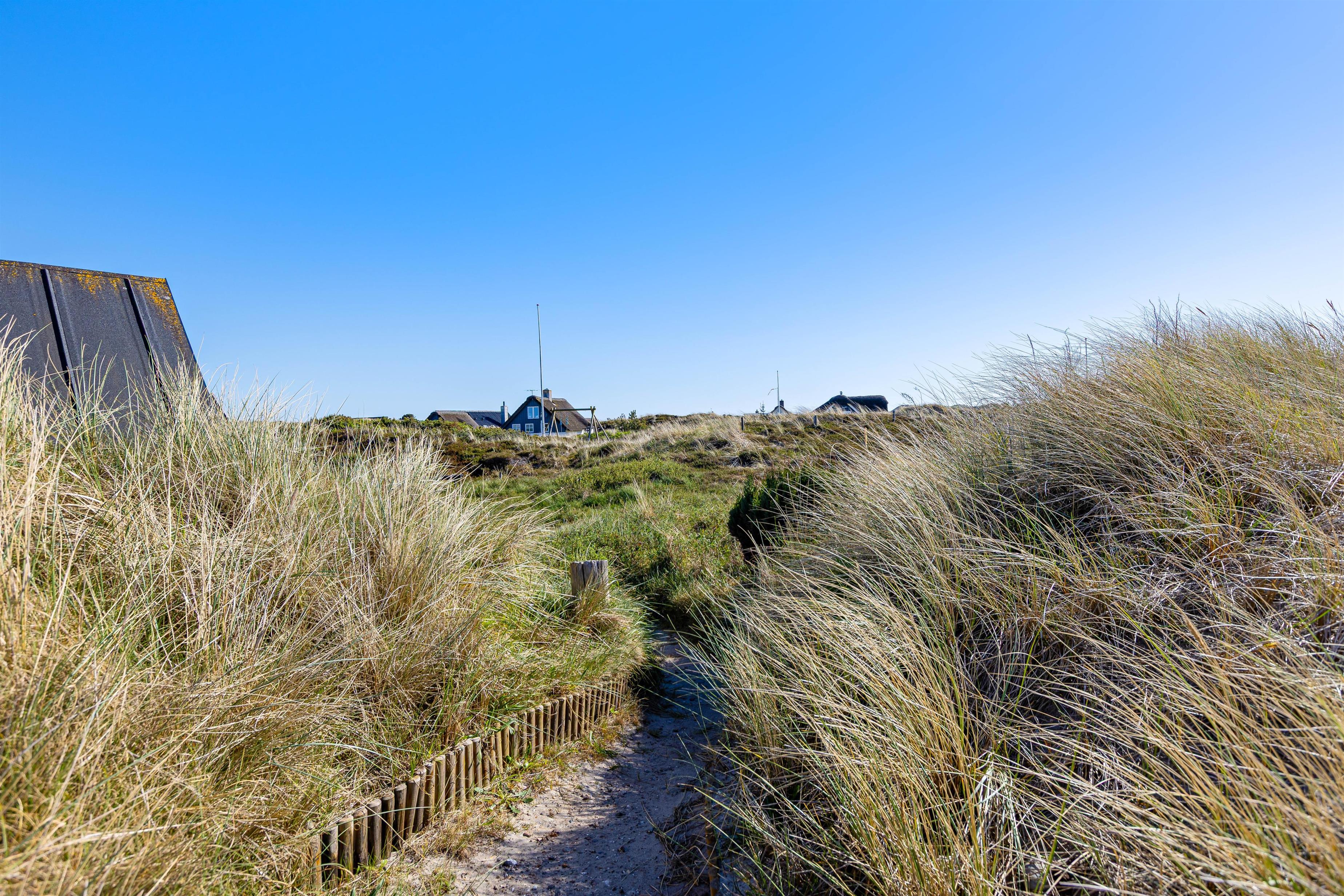 Husets beliggenhed er både rolig og naturskøn, og fra havemøblerne kan I nyde det omkringliggende klitlandskab og den friske havluft. Der er også sørget for en grill til de lune sommeraftener.