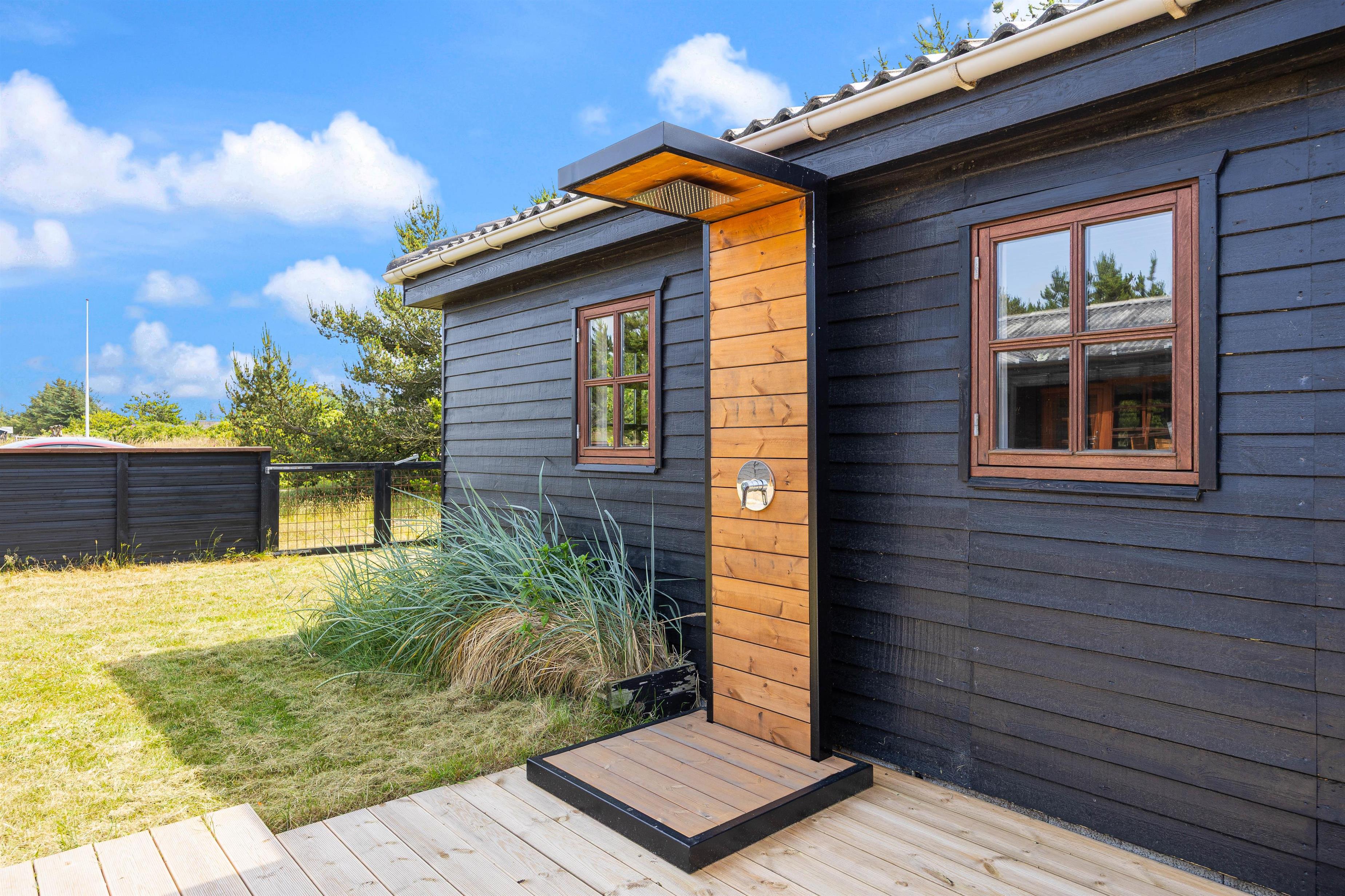 Efter en dejlig dag ved stranden kan I nemt skylle sand og salt af under udebruseren. I skal dog være opmærksomme på, at udebruseren kun er tilgængelig fra april til november.